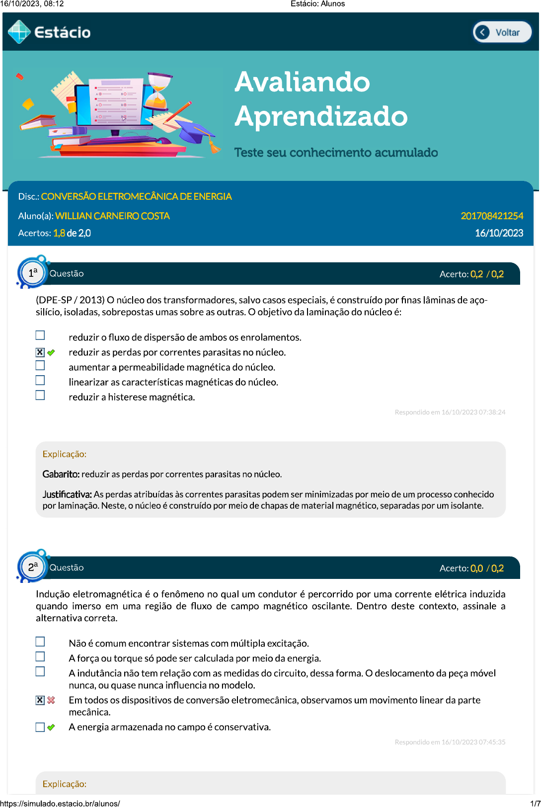 Avaliação Final (objetiva) - Conversão Eletromecânica de Energia
