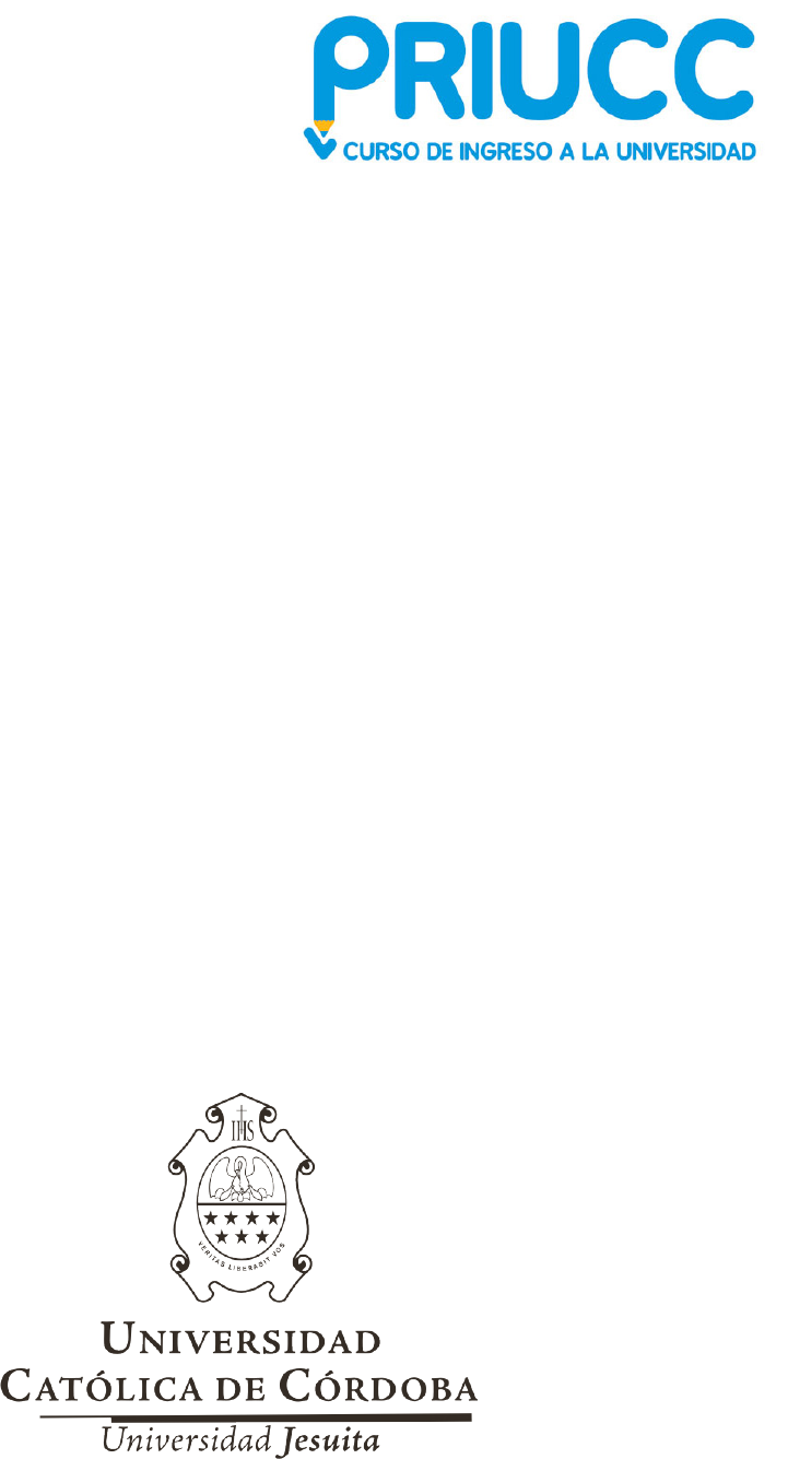 Introducción a la Matemática Carreras Contador Público Lic. en Administración de Empresas Ingeniería en Sistemas Ingeniería Mecánica Ingeniería Civil Ingeniería en Computación Ingeniería Industrial Ingeniería Electrónica Compilador Juan Lancioni Autores Juan Lancioni l Nilda Dumont Rector Dr. Alfonso José Gómez S.J. Vicerrector Académico Dr. Diego Osvaldo Fonti Vicerrector de Economía Dr. Jorge Orlando Pérez Vicerrector de Medio Universitario Esp. Arturo Eduardo Sandiano S.J. Coordinación y Asesoramiento pedagógico Gabriela Eugenia Giordanengo Mónica Binimelis Corrección de estilo Verónica Miriam Alvarez Diseño gráfico María Celeste Kulifay Estimados alumnos, bienvenidos a la Universidad Católica de Córdoba. Para comenzar esta nueva etapa de estudiantes universitarios, compartiremos estas clases donde vamos a recordar algunos conceptos de la matemática elemental para contar con herramientas que les permitan afrontar desafíos que se les presenten en el futuro. Pretendemos acompañarlos en la recuperación de estos conocimientos previos y que descubran el para qué y porqué de los mismos, y su aplicabilidad en las diferentes áreas del conocimiento de la carrera universitaria que los formará como futuros profesionales de “Ciencia, Conciencia y Compromiso”. Hemos elaborado estas clases comenzando desde un nivel elemental, el cual se irá complejizando a medida que avancemos. También hemos pensado en ayudarlos con algunos interrogantes para recordar conceptos y modos de trabajar, por lo que es fundamental que leamos con detenimiento y esmero cada una de las consignas y/o ejercicios. Estamos seguros que abordando este material con responsabilidad y esfuerzo, se pueden resolver por cuenta propia las actividades de cada clase y así autoevaluarse con las respuestas correspondientes y reconocer las propias capacidades. Lo importante es el trabajo individual para analizar y resolver los temas propuestos. Esto permitirá recuperar razonamiento lógico, hábitos de estudio, habilidad en el manejo de resolución de problemas y lenguaje apropiado. Puede suceder que la primera vez que se trate de resolver un ejercicio o problema, no se logre llegar al resultado correcto, no hay que desanimarse, sino comenzar de nuevo, y confiar en sí mismo. El camino lo haremos juntos, ¡estamos para acompañarlos! Les compartimos un lindo pensamiento para que reflexionemos: “Si das pescado a un hombre hambriento, lo alimentas por un día. Si le enseñas a pescar lo alimentarás para toda la vida”. Lao Tsé (s. IV a.c.) Todo el equipo de docentes que los acompañará en estos días está inspirado en ese pensamiento. Finalmente, queremos agradecer a todas aquellas personas que confiaron en nosotros para este desafío. En primer lugar a las autoridades de la Universidad y en particular a las autoridades de las Facultades correspondientes. Como conformamos un equipo de profesionales que nos guiaron y corrigieron este trabajo, para ellos también un merecido reconocimiento, como así para los docentes involucrados en esta labor por su apoyo incondicional. ¡¡¡Suerte chicos, y adelante que confiamos en sus capacidades!!! NILDA ELSA DUMONT - TITULOS - ∎ BIOQUÍMICA - 1975 Facultad de Ciencias Químicas. Universidad Nacional de Córdoba. ∎ MASTER BUSSINESS ADMINISTRATION - 2001 ESADE. España. - ACTIVIDADES ACADÉMICAS Y PUBLICACIONES - Docente de Matemática I y Matemática II, en la Facultad de Ciencias Químicas. U.N.C. 1973-1994. Docente de Análisis Matemático I y Análisis Matemático II, en la Facultad Regional Córdoba. U.T.N. 1985-1998. Docente de Análisis Matemático, en la Facultad de Ciencias Económicas y de Administración. U.C.C. 1975-Continuo. Docente de Matemática I, Matemática II y Bioestadística, en la Facultad de Ciencias Químicas. U.C.C. 1995-Continuo. Docente de Estadística en post grado, en la Maestría en Alimentos. Facultad de Ciencias Químicas. U.C.C. 1998-1999-2001. Miembro de la Comisión de Autoevaluación para CONEAU. Facultad de Ciencias Químicas. U.C.C. 2004-2008-2014. Coordinadora de Área Básica. Facultad de Ciencias Químicas. U.C.C.1998- hasta la actualidad. Coordinadora Área Matemática. Facultad de Ciencias Económicas y de Administración. U.C.C. 1986-2001. Miembro del consejo de Profesores. Facultad de Ciencias Económicas y de Administración. U.C.C. desde 2004- hasta la actualidad. Autora del libro “Introducción a la Matemática. Aprendiendo a pensar”. 1ª Ed. 2005. Córdoba. ISBN: 987-43-9591-5. Autora del libro “Introducción a la Matemática. Aprendiendo a pensar”. 2ª Ed. 2010. Córdoba. Editorial Universidad Católica de Córdoba, 2011.ISBN: 978-987-626-006-0. JUAN NOLBERTO LANCIONI - TITULOS - ∎ INGENIERO CIVIL - 1987 Facultad de Ingeniería. Universidad Católica de Córdoba. ∎ ESPECIALISTA EN DOCENCIA UNIVERSITARIA - 2000 Facultad Regional Córdoba. Escuela de Cuarto Nivel. Universidad Tecnológica Nacional. ∎ MAGISTER EN DOCENCIA UNIVERSITARIA - 2011 Facultad Regional Córdoba. Dirección de Posgrado de la Universidad Tecnológica Nacional. - ACTIVIDADES ACADÉMICAS Y PUBLICACIONES - Profesor universitario en el área de Física y Matemática, en la Universidad Católica de Córdoba. 1988-Continuo. Docente universitario de Física I, en la Universidad Tecnológica Nacional, Facultad Regional Córdoba. 2009-Continuo. Secretario Técnico de la Facultad de Ingeniería, en la Universidad Católica de Córdoba. 2002 – 2005. Secretario Académico de la Universidad, en la Universidad Católica de Córdoba. 2006 - 2007. Miembro de la Comisión de Evaluación Periódica del Personal Docente de Ingeniería, de la Universidad Católica de Córdoba. 2012. Miembro del Consejo de Profesores de la Facultad de Ingeniería de la Universidad Católica de Córdoba. 2002-2003 y 2010-2014. Miembro de la Comisión de Seguimiento y Revisión del Plan de Estudios de la carrera de Ingeniería en Computación, en la Universi
