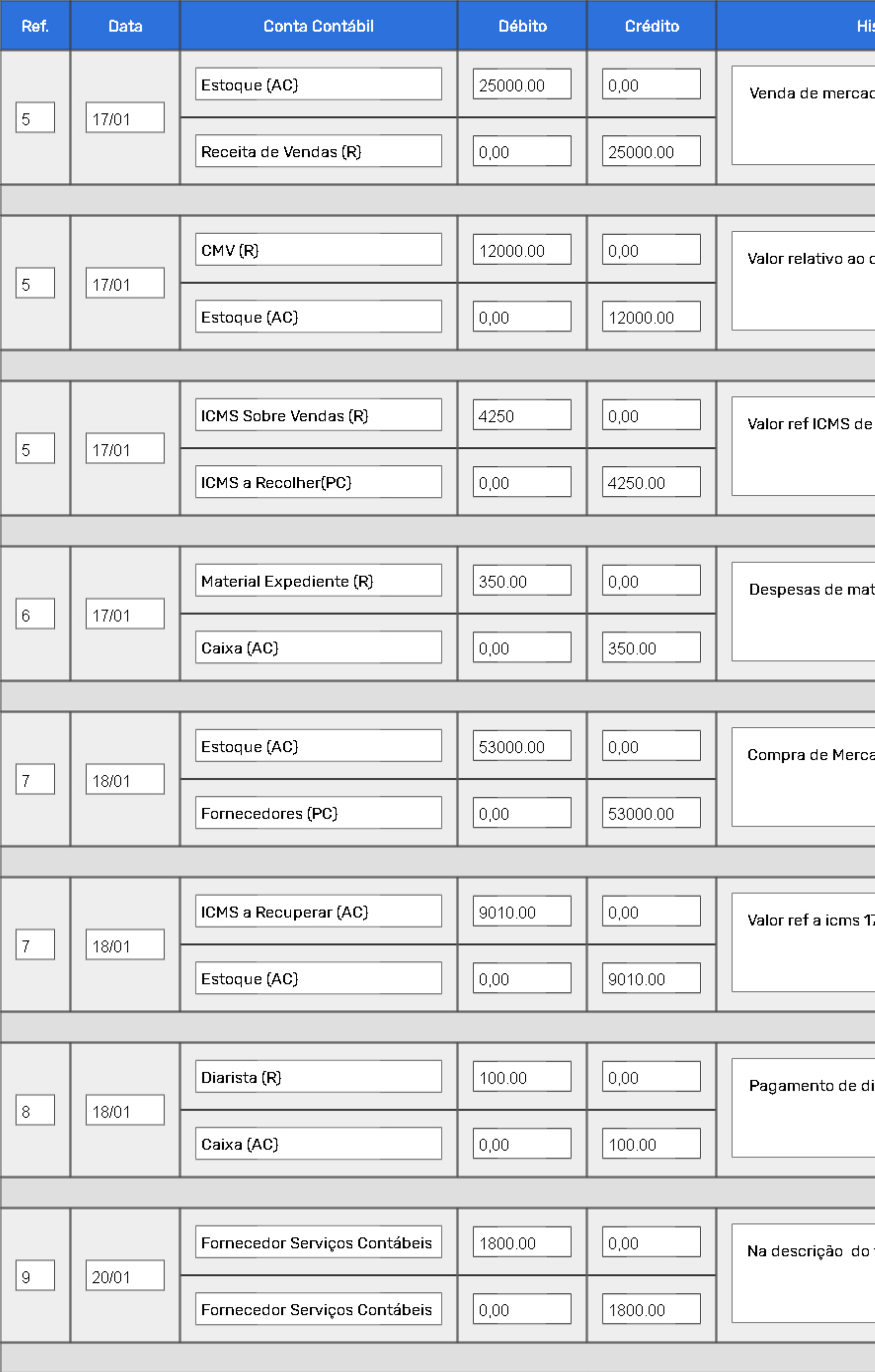 Template de Razonete, balancete e livro de diário