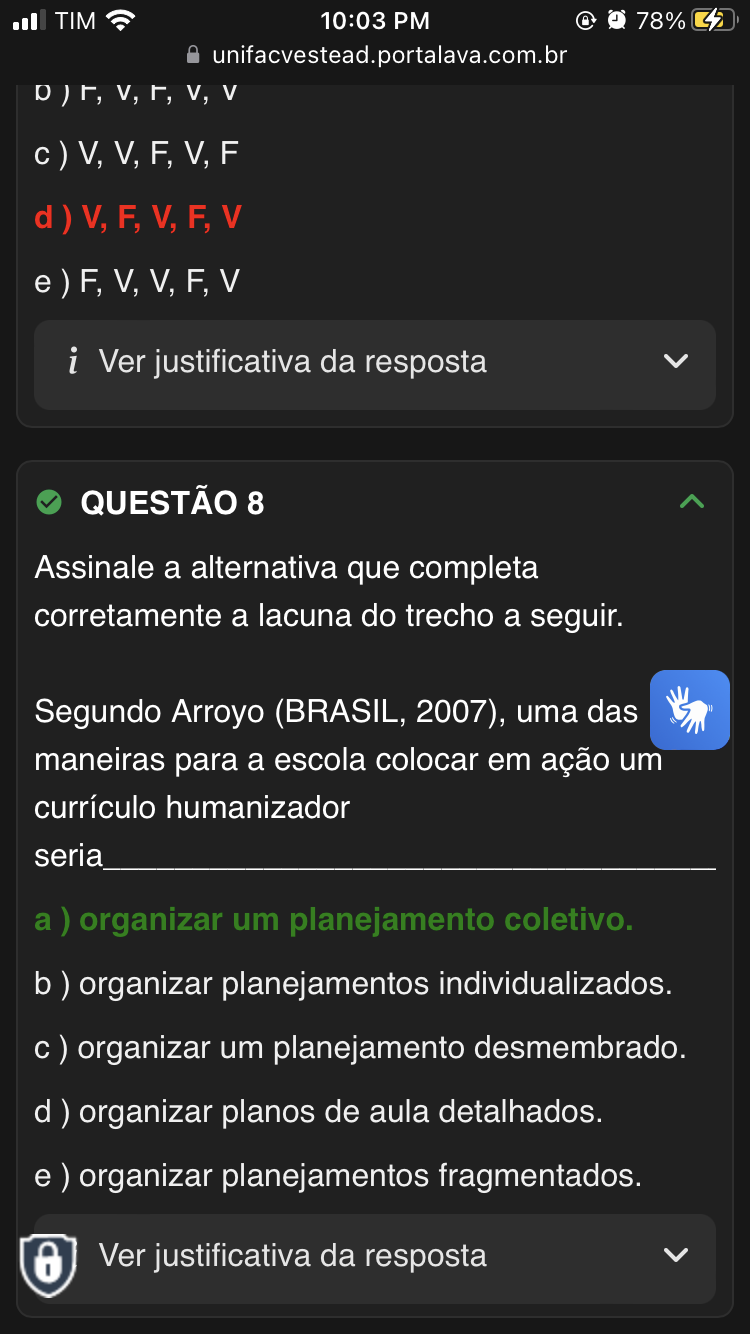 x unifacvestead.portalava.com.br x + no/prova-online/inicio Prova Online Confira as questões e, no final, clique em CONFIRMAR: Questão 9 o Manifest...