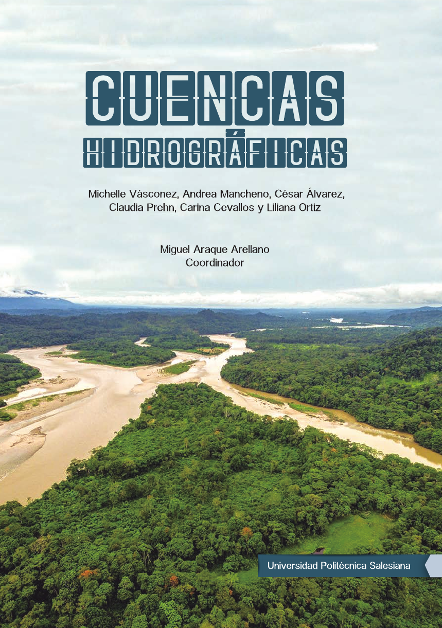 Cuencas Hidrográficas Michelle Vásconez, Andrea Mancheno, César Álvarez, Claudia Prehn, Carina Cevallos y Liliana Ortiz Miguel Araque Coordinador Cuencas Hidrográficas 2019 Cuencas Hidrográficas © Miguel Araque Arellano (Coordinador) Michelle Vásconez, Andrea Mancheno, César Álvarez, Claudia Prehn, Carina Cevallos y Liliana Ortiz 1era. Edición: Universidad Politécnica Salesiana Av. Turuhuayco 3-69 y Calle Vieja Ca si lla: 2074 P.B.X.: (+593 7) 2050000 Fax: (+593 7) 4088958 e-mail: rpublicas@ups.edu.ec www.ups.edu.ec Casilla: 2074 P.B.X.: (+593 7) 2050000 Cuenca-Ecuador CARRERA DE INGENIERÍA AMBIENTAL Derechos de autor: 056861 ISBN: 978-9978-10-380-7 Tiraje: 300 ejemplares Diseño, Diagramación e Impresión: Editorial Abya-Yala Quito-Ecuador Im pre so en Qui to-Ecua dor, julio 2019 Publicación arbitrada de la Universidad Politécnica Salesiana Índice Prefacio . . . . . . . . . . . . . . . . . . . . . . . . . . . . . . . . . . . . . . . . . . . . . . . . . . 13 Capítulo 1 1 . Introducción . . . . . . . . . . . . . . . . . . . . . . . . . . . . . . . . . . . . . . . . . . . . 15 1.1. Definiciones . . . . . . . . . . . . . . . . . . . . . . . . . . . . . . . . . . . . . . . . . . . . . . 15 1.2. Funciones de las cuencas hidrográficas . . . . . . . . . . . . . . . . . . . . . . . . . . 16 1.2.1. Función ambiental . . . . . . . . . . . . . . . . . . . . . . . . . . . . . . . . . . . . . 16 1.2.2. Función ecológica . . . . . . . . . . . . . . . . . . . . . . . . . . . . . . . . . . . . . . 16 1.2.3. Función hidrológica . . . . . . . . . . . . . . . . . . . . . . . . . . . . . . . . . . . . 17 1.2.4. Función socioeconómica . . . . . . . . . . . . . . . . . . . . . . . . . . . . . . . . . 17 1.3. Elementos . . . . . . . . . . . . . . . . . . . . . . . . . . . . . . . . . . . . . . . . . . . . . . . . 17 1.3.1. Divisorio de aguas . . . . . . . . . . . . . . . . . . . . . . . . . . . . . . . . . . . . . . 17 1.3.2. Río principal . . . . . . . . . . . . . . . . . . . . . . . . . . . . . . . . . . . . . . . . . . 18 1.3.3. Afluentes . . . . . . . . . . . . . . . . . . . . . . . . . . . . . . . . . . . . . . . . . . . . . 20 1.4. Características . . . . . . . . . . . . . . . . . . . . . . . . . . . . . . . . . . . . . . . . . . . . . 20 1.4.1. Área de drenaje . . . . . . . . . . . . . . . . . . . . . . . . . . . . . . . . . . . . . . . . 20 1.4.2. Forma . . . . . . . . . . . . . . . . . . . . . . . . . . . . . . . . . . . . . . . . . . . . . . . 22 1.4.3. Sistema de drenaje . . . . . . . . . . . . . . . . . . . . . . . . . . . . . . . . . . . . . 22 1.4.4. Relieve . . . . . . . . . . . . . . . . . . . . . . . . . . . . . . . . . . . . . . . . . . . . . . 23 1.4.5. Tipo y uso del suelo . . . . . . . . . . . . . . . . . . . . . . . . . . . . . . . . . . . . . 26 1.4.6. Vegetación . . . . . . . . . . . . . . . . . . . . . . . . . . . . . . . . . . . . . . . . . . . . 27 1.5. Clasificaciones . . . . . . . . . . . . . . . . . . . . . . . . . . . . . . . . . . . . . . . . . . . . . 27 1.5.1. Por su tamaño . . . . . . . . . . . . . . . . . . . . . . . . . . . . . . . . . . . . . . . . 27 1.5.3 Por su uso . . . . . . . . . . . . . . . . . . . . . . . . . . . . . . . . . . . . . . . . . . . . 30 1.6. Cuencas hidrográficas en el Ecuador . . . . . . . . . . . . . . . . . . . . . . . . . . . . . . . . 30 Capítulo 2 2 . El ciclo hidrológico . . . . . . . . . . . . . . . . . . . . . . . . . . . . . . . . . . . . . . . 35 2.1. Precipitación . . . . . . . . . . . . . . . . . . . . . . . . . . . . . . . . . . . . . . . . . . . . . . 37 2.2. Evaporación . . . . . . . . . . . . . . . . . . . . . . . . . . . . . . . . . . . . . . . . . . . . . . 43 2.3. Escurrimiento o escorrentía . . . . . . . . . . . . . . . . . . . . . . . . . . . . . . . . . . 44 2.3.1. Escorrentía superficial . . . . . . . . . . . . . . . . . . . . . . . . . . . . . . . . . . . 45 2.3.2. Escorrentía subsuperficial (Hipodérmica) . . . . . . . . . . . . . . . . . . . . 45 2.3.3 Escorrentía subterránea . . . . . . . . . . . . . . . . . . . . . . . . . . . . . . . . . . 45 2.4. Hidrogramas . . . . . . . . . . . . . . . . . . . . . . . . . . . . . . . . . . . . . . . . . . . . . . 45 2.4.1. Partes del hidrograma . . . . . . . . . . . . . . . . . . . . . . . . . . . . . . . . . . . 47 2.4.2. Hidrograma unitario . . . . . . . . . . . . . . . . . . . . . . . . . . . . . . . . . . . . 49 2.4.3. Hidrograma unitario sintético . . . . . . . . . . . . . . . . . . . . . . . . . . . . . 49 2.4.4. Hidrograma unitario triangular . . . . . . . . . . . . . . . . . . . . . . . . . . . 51 2.5. Infiltración . . . . . . . . . . . . . . . . . . . . . . . . . . . . . . . . . . . . . . . . . . . . . . . 55 Capítulo 3 3.1. Calidad del agua . . . . . . . . . . . . . . . . . . . . . . . . . . . . . . . . . . . . . . . . . . . 57 3.1.1. Turbidez . . . . . . . . . . . . . . . . . . . . . . . . . . . . . . . . . . . . . . . . . . . . . 57 3.1.2. Parámetros sensoriales (color, olor y sabor) . . . . . . . . . . . . . . . . . . . 58 3.1.3. Temperatura . . . . . . . . . . . . . . . . . . . . . . . . . . . . . . . . . . . . . . . . . . 60 3.1.4. Sólidos disueltos totales . . . . . . . . . . . . . . . . . . . . . . . . . . . . . . . . . . 60 3.1.5. Dureza . . . . . . . . . . . . . . . . . . . . . . . . . . . . . . . . . . . . . . . . . . . . . . 61 3.1.6. El pH . . . . . . . . . . . . . . . . . . . . . . . . . . . . . . . . . . . . . . . . . . . . . . . 62 3.1.7. Conductividad . . . . . . . . . . . . . . . . . . . . . . . . . . . . . . . . . . . . . . . . . 62 3.1.8. Corrosividad . . . . . . . . . . . . . . . . . . . . . . . . . . . . . . . . . . . . . . . . . . 63 3.1.9. Calidad microbiana del agua . . . . . . . . . . . . . . . . . . . . . . . . . . . . . . 63 3.2. Clima . . . . . . . . . . . . . . . . . . . . . . . . . . . . . . . . . . . . . . . . . . . . . . . . . . . 64 3.2.1. Elementos del clima . . . . . . . . . . . . . . . . . . . .