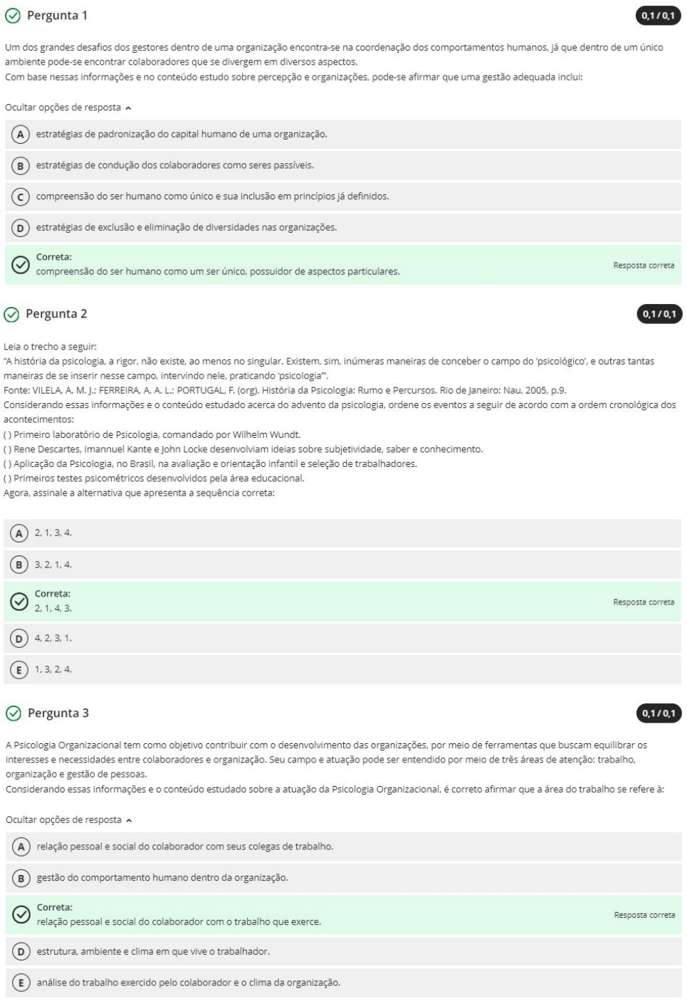 Ava - Psicologia Organizacional e do Trabalho Questionário I