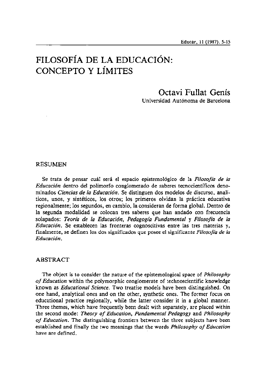 dades Útiles a la Filosofia de la Educacidn. He aquí un texto definitorio: