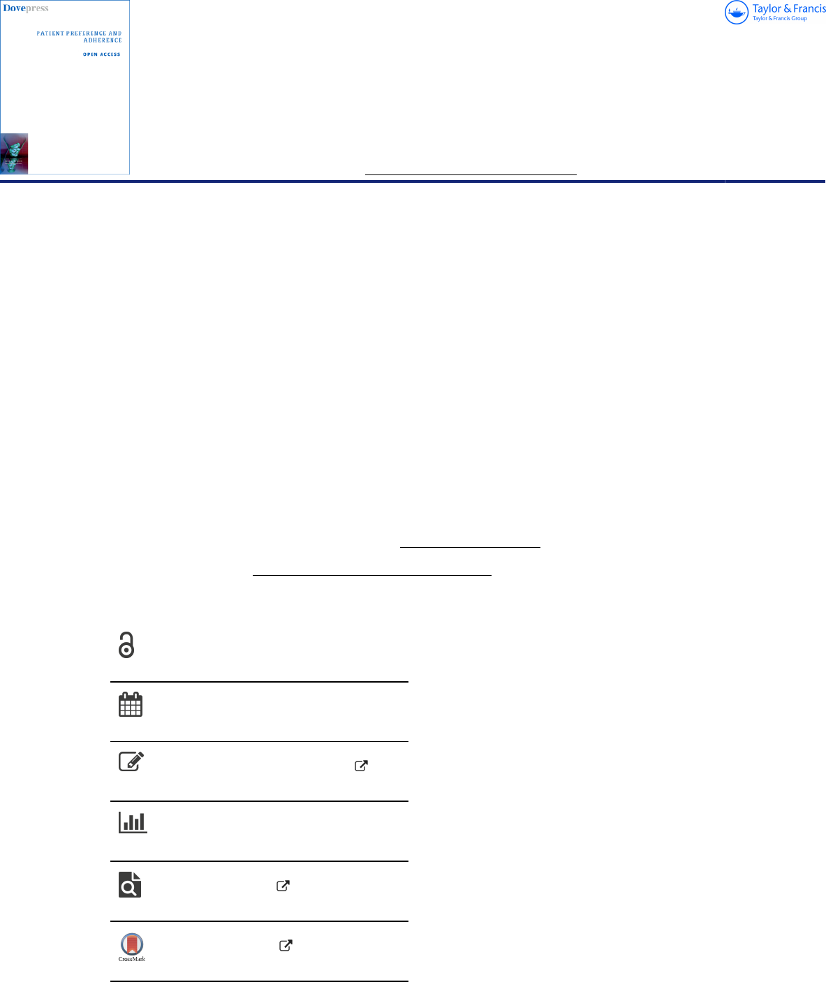 Full Terms & Conditions of access and use can be found at https://www.tandfonline.com/action/journalInformation?journalCode=dppa20 Patient Preference and Adherence ISSN: (Print) (Online) Journal homepage: www.tandfonline.com/journals/dppa20 Validation of the Identification of Medication Adherence Barriers Questionnaire (IMAB-Q); a Behavioural Science-Underpinned Tool for Identifying Non-Adherence and Diagnosing an Individual’s Barriers to Adherence Debi Bhattacharya, Tracey J Brown, Allan B Clark, Alexandra L Dima, Claire Easthall, Natalie Taylor & Zhicheng Li To cite this article: Debi Bhattacharya, Tracey J Brown, Allan B Clark, Alexandra L Dima, Claire Easthall, Natalie Taylor & Zhicheng Li (2023) Validation of the Identification of Medication Adherence Barriers Questionnaire (IMAB-Q); a Behavioural Science-Underpinned Tool for Identifying Non-Adherence and Diagnosing an Individual’s Barriers to Adherence, Patient Preference and Adherence, , 2991-3000, DOI: 10.2147/PPA.S427207 To link to this article: https://doi.org/10.2147/PPA.S427207 © 2023 Bhattacharya et al. Published online: 16 Nov 2023. Submit your article to this journal Article views: 153 View related articles View Crossmark data https://www.tandfonline.com/action/journalInformation?journalCode=dppa20 https://www.tandfonline.com/journals/dppa20?src=pdf https://www.tandfonline.com/action/showCitFormats?doi=10.2147/PPA.S427207 https://doi.org/10.2147/PPA.S427207 https://www.tandfonline.com/action/authorSubmission?journalCode=dppa20&show=instructions&src=pdf https://www.tandfonline.com/action/authorSubmission?journalCode=dppa20&show=instructions&src=pdf https://www.tandfonline.com/doi/mlt/10.2147/PPA.S427207?src=pdf https://www.tandfonline.com/doi/mlt/10.2147/PPA.S427207?src=pdf http://crossmark.crossref.org/dialog/?doi=10.2147/PPA.S427207&domain=pdf&date_stamp=16 Nov 2023 http://crossmark.crossref.org/dialog/?doi=10.2147/PPA.S427207&domain=pdf&date_stamp=16 Nov 2023 O R I G I N A L R E S E A R C H Validation of the Identification of Medication Adherence Barriers Questionnaire (IMAB-Q); a Behavioural Science-Underpinned Tool for Identifying Non-Adherence and Diagnosing an Individual’s Barriers to Adherence Debi Bhattacharya 1, Tracey J Brown2, Allan B Clark2, Alexandra L Dima 3, Claire Easthall4, Natalie Taylor5, Zhicheng Li6 1School of Healthcare, University of Leicester, Leicester, Leics, UK; 2Norwich Medical School, University of East Anglia, Norwich, Norf, UK; 3Research and Development Unit, Institut deRecerca Sant Joan de Déu, Sant Boi deLlobregat, BCN, Spain; 4School of Healthcare, University of Leeds, Leeds, West Yorks, UK; 5School of Population Health, University of New South Wales, Sydney, NSW, Australia; 6Susan Wakil School of Nursing and Midwifery, The University of Sydney, Sydney, NSW, Australia Correspondence: Debi Bhattacharya, School of Healthcare, College of Life Sciences, University of Leicester, University Road, Leicester, LE1 7RH, UK, Tel +44116 252 2833, Email d.bhattacharya@leicester.ac.uk Purpose: To validate the Identification of Medication Adherence Barriers Questionnaire (IMAB-Q) as a tool to guide practitioners to identify patients who require support to take their medicines as prescribed, their key barriers to adherence and select relevant behaviour change techniques. Patients and Methods: Adults prescribed medication for cardiovascular disease prevention were recruited from nine community pharmacies in England. Participants completed the IMAB-Q comprising 30 items representing potential barriers to adherence developed from our previous mixed methods study (scoping review and focus groups) underpinned by the Theoretical Domains Framework. Participants also self-reported their adherence on a visual analogue scale (VAS) ranging from perfect adherence (100) to non-adherence (1). A subgroup of 30 participants completed the IMAB-Q twice to investigate test-retest reliability using weighted Kappa. Mokken scaling was used to investigate IMAB-Q structure. Spearman correlation was used to investigate IMAB-Q criterion validity compared to the VAS score. Results: From 1407 invitations, 608 valid responses were received. Respondents had a mean (SD) age of 70.12 (9.9) years and were prescribed a median (IQ) 4 (3, 6) medicines. Worry about unwanted effects (n = 212, 34.5%) and negative emotions evoked by medicine taking (n = 99, 16.1%) were most frequently reported. Mokken scaling did not organise related IMAB-Q items according to the TDF domains (scalability coefficient H = 0.3 to 0.6). Lower VAS self-reported adherence correlated with greater IMAB-Q reported barriers (rho = −0.14, p = 0.001). Test-retest reliability of IMAB-Q items ranged from kappa co-efficient 0.9 to 0.3 (p < 0.05). Conclusion: The IMAB-Q is valid and reliable for identifying people not adhering and their barriers to adherence. Each IMAB-Q item is linked to a TDF domain which in turn is linked to relevant behaviour change techniques. The IMAB-Q can therefore guide patients and practitioners to select strategies tailored to a patient’s identified barriers. Keywords: theoretical domains framework, psychometrics, questionnaire, behaviour change, determinant, compliance Introduction Lifestyle changes and medication are the primary interventions for chronic disease management. Poor uptake of recommended lifestyle changes such as weight loss and increased physical activity have led to significant research endeavor to develop behaviour change interventions. Applying theory and evidence to develop such interventions is an accepted and widely adopted approach.1 Not adhering to prescribed medication regimens can have a profound negative Patient Preference and Adherence 2023:17 2991–3000 2991 © 2023 Bhattacharya et al. This work is published and licensed by Dove Medical Press Limited. The full terms of this license are available at https://www.dovepress.com/ terms.php and incorporate the Creative Commons Attribution – Non Commercial (unpor