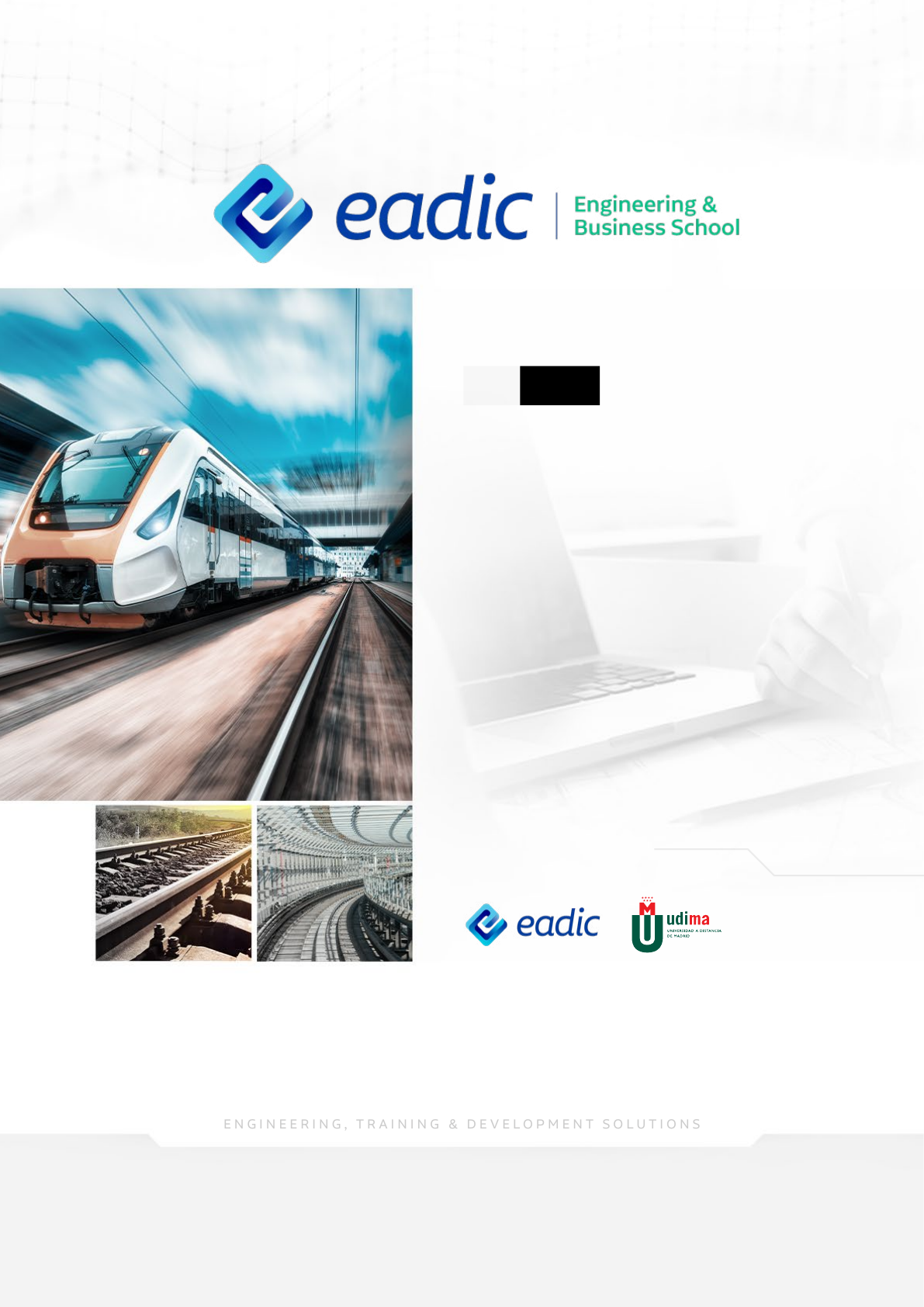 PROGRAMA DE ACELERACIÓN DIRECTIVA MÁSTER EN INFRAESTRUCTURAS FERROVIARIAS Máster en Infraestructuras Ferroviarias Alcanza un nivel superior en Infraestructuras Ferroviarias y destaca con profesionalismo en la planificación, construcción y mantenimiento de líneas ferroviarias. Programa de Aceleración Directiva TITULACIONES INTERNACIONALES E N G I N E E R I N G , T R A I N I N G & D E V E L O P M E N T S O L U T I O N S FERROPADPAD PROGRAMA DE ACELERACIÓN DIRECTIVA MÁSTER EN INFRAESTRUCTURAS FERROVIARIAS CONTENIDO EADIC una Red Global Nuestros Docentes Información General Alianzas Internacionales Partners Transferencia del conocimiento Perfil Demográfico Nuestro Método Único Programas de Ayuda Plan de Estudios Másteres Relacionados Titulaciones 02 20 04 21 05 22 06 23 07 24 09 25 11 14 PG PGPG PG PG PG PG PG PG PG PG PG PG PG PG ¿Qué conseguirás con este máster? Salidas Profesionales Proceso de Admisión 17 PROGRAMA DE ACELERACIÓN DIRECTIVA MÁSTER EN INFRAESTRUCTURAS FERROVIARIAS Nuestra red global impulsa a los profesionales de alto rendimiento que trabajan en el sector de la ingeniería y la arquitectura, brindándoles herramientas que les permitan crear soluciones innovadoras y ajustadas a las nuevas tendencias en su ámbito de actuación. NACIONALIDADES DIFERENTES PIONEROS EN ENFOQUE PROGRAMAS FORMATIVOS EN ESPAÑOL E INGLÉS +48 MULTICULTURAL +605 P L A T A F O R M A N A T I V A D I G I T A L Califican entre un 8-10 la calidad y el contenido de nuestros programas97% 98% FORMACIÓN BIM Nuestros alumnos recomiendan a EADIC EN EADIC SOMOS UNA RED GLOBAL PAÍSES8 Presentes en R E P Ú B L I C A D O M I N I C A N A C O L O M B I AE S P A Ñ A M É X I C O P E R Ú E C U A D O R I N D I A E A U - D U B Á I Califican entre un 8-10 la calidad y el contenido de nuestros programas97% 98% Nuestros alumnos recomiendan a EADIC PROGRAMA DE ACELERACIÓN DIRECTIVA MÁSTER EN INFRAESTRUCTURAS FERROVIARIAS EADIC me formó como profesional y ha representado una etapa muy importante en mi vida Ingeniero Civil - Project Manager Egresado Máster en Energías Renovables y Eficiencia Energética en EADIC EDICIÓN JULIO 2020 Erick Alberto Adolfo Espaillat R E P Ú B L I C A D O M I N I C A N A De los conocimientos adquiridos en el máster EADIC, he podido aplicar esta fase de energía limpia en mi compañía constructora para ofrecer estos servicios 3 PROGRAMA DE ACELERACIÓN DIRECTIVA MÁSTER EN INFRAESTRUCTURAS FERROVIARIAS PROGRAMA DE ACELERACIÓN DIRECTIVA MÁSTER EN INFRAESTRUCTURAS FERROVIARIAS INFORMACIÓN GENERAL TITULACIONES INTERNACIONALES: El estudiante podrá solicitar la Apostilla de La Haya, que es una certificación que avala la autenticidad del documento, en este caso del título, y permite su uso y validez en el extranjero. Máster en Infraestructuras Ferroviarias PROGRAMA DE ACELERACIÓN DIRECTIVA APOSTILLA DE LA HAYA DURACIÓN: 12 Meses CRÉDITOS ECTS: 60 ECTS O N L I N E M I X TOP R E S E N C I A LM O DA L I DA D : 4 PAD FERROPAD El Máster en Infraestructuras Ferroviarias permitirá al estudiante adquirir una alta cualificación en ingeniería ferroviaria, basada en conocimientos que lo capacitarán para afrontar niveles de exigencia elevados en el marco laboral, logrando una formación avanzada en diferentes disciplinas que conforman el proceso de planificación y construcción de líneas ferroviarias y sus procesos de mantenimiento. El programa combina una sólida base teórica con una metodología práctica que permite al estudiante desarrollar competencias esenciales para el diseño, la construcción y la gestión de estructuras ferroviarias, tanto civiles como mecánicas, eléctricas y de señalización. Máster en Infraestructuras Ferroviarias E L F E R R O C A R R I L SIEMPRE SE HA SITUADO dentro de los medios de transporte más importantes y competitivos. Los conocimientos técnicos actuales de cada país nos permiten aprender nuevos métodos en poco tiempo y conocer las nuevas tecnologías aplicadas al sector. ¿Estás preparado? Encontrarás nociones iniciales sobre el sector del transporte, tanto de personas como de mercancía, haciendo especial hincapié en el sector del ferrocarril. Adquirirás los conocimientos necesarios para el diseño, ejecución y mantenimiento de líneas ferroviarias. Ampliarás tus conocimientos en materia de infraestructura, contemplando la influencia del diseño, la tipología y los parámetros básicos especificados para el diseño de un material rodante, así como sus partes fundamentales. Analizarás los sistemas de señalización, especialmente los sistemas modernos. Obtendrás los conocimientos referentes a las distintas instalaciones necesarias para electrificar una línea ferroviaria y suministrar energía a los sistemas de tracción, así como a los aparatos de seguridad y control ferroviarios. Alcanzarás conocimientos fundamentales sobre la definición y el desarrollo de una red de telecomunicaciones en líneas ferroviarias de alta velocidad. Conocerás estrategias y procesos para familiarizarte con las técnicas de ingeniería y el mantenimiento de los actuales sistemas de electrificación ferroviaria. Aprenderás sobre explotación ferroviaria y la normativa aplicable en seguridad ferroviaria y protección civil. PROGRAMA DE ACELERACIÓN DIRECTIVA PAD FERROPAD 1 3 4 5 7 2 6 8 ¿Qué conseguirás con este máster? I N S C R í B E T E A Q U Í https://eadic.org/portal-admisiones/public/login El objetivo del programa es preparar a profesionales, tanto recién titulados como en activo, para afrontar los nuevos retos del sector y mundo profesional. Dirigido a los Perfiles más Demandados SALIDAS PROFESIONALES El Máster en Infraestructuras Ferroviarias prepara profesionales especializados en el sector, para que puedan desempeñarse como: Las empresas en el sector ferroviario están demandando profesionales que cuenten con gran capacidad de análisis y dominio del marco internacional. Amplía tu proyección laboral dentro 