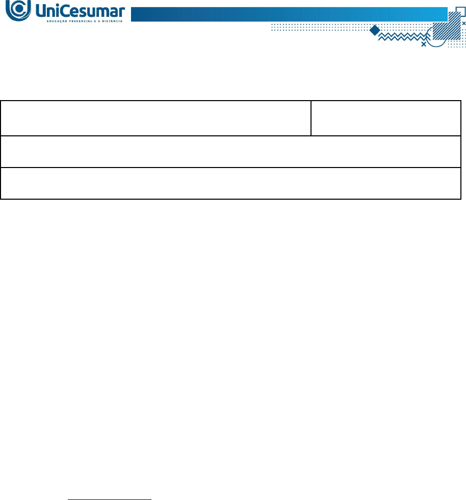MAPA - Material de Avaliação Prática da Aprendizagem Acadêmico: Monique da Silva Sousa R.A. 23114892-5 Curso: Enfermagem Disciplina: GO Projeto de Vida Instruções para Realização da Atividade 1. Todos os campos acima deverão ser devidamente preenchidos; 2. É obrigatória a utilização deste formulário para a realização do MAPA; 3. Esta é uma atividade individual. Caso identificado cópia de colegas, o trabalho de ambos sofrerá decréscimo de nota; 4. Utilizando este formulário, realize sua atividade, salve em seu computador, renomeie e envie em forma de anexo; 5. Formatação exigida para esta atividade: documento Word, Fonte Arial ou Times New Roman tamanho 12, Espaçamento entre linhas 1,5, texto justificado; 6. Ao utilizar quaisquer materiais de pesquisa referencie conforme as normas da ABNT; 7. Na Sala do Café do ambiente virtual da disciplina você encontrará orientações importantes para elaboração desta atividade. Confira! 8. Critérios de avaliação: Utilização do template; Atendimento ao Tema; Constituição dos argumentos e organização das Ideias; Correção Gramatical e atendimento às normas ABNT. 9. Procure argumentar de forma clara e objetiva, de acordo com o conteúdo da disciplina. Em caso de dúvidas, entre em contato com seu Professor Mediador. Bons estudos! ATIVIDADE MAPA Etapa 1 - Definir e pesquisar a profissão almejada, de acordo com seus objetivos pessoais e de carreira. Nessa etapa você deve definir uma profissão que deseja atuar futuramente, realizar uma pesquisa sobre a profissão e em seguida responda às questões preenchendo o quadro: Itens Respostas Qual a profissão que deseja atuar? Enfermeira neonatal e pediatrica. Qual ano você planeja iniciar na profissão escolhida? Em 2027 Qual é o mercado de trabalho para esta profissão escolhida? Hospitais regionais, estaduais e federais. Quais requisitos técnicos (hardskills) para a profissão selecionada? Curso superior em enfermagem, pós graduação em uti neonatal e pediatrica. . Quais requisitos comportamentais (softskills) para a profissão selecionada? Ser pro ativa, organizada, raciocínio clínico, trabalhar bem em equipe, compromisso. Etapa 2 - Realizar a análise de SWOT de acordo com seu estado atual. Considerando os itens da profissão escolhida, realize a sua análise de SWOT, preenchendo os campos informados no quadro disponível, lembrando que esta análise deverá estar em consonância com a profissão que você deseja prosseguir. Em relação à profissão escolhida, realize sua análise: Análise de SWOT Pessoal Forças Quais são seus pontos fortes, qualidades e potencialidades comparados ao perfil da profissão que escolheu? Facilidade em tomada de decisão, habilidade técnicas desenvolvidas, disponibilidade para aprender coisas novas e rotinas. Fraquezas Quais são seus pontos a serem melhorados, dificuldades ou fraquezas com relação à profissão que escolheu? Aprimorar raciocínio clínico, curso de atualização, posicionamento como líder assistencial. Oportunidad es Quais são as possíveis oportunidades percebidas no mercado de trabalho que podem potencializar sua carreira junto a profissão que escolheu? Hospitais, clínicas pediátricas, unidades de saúde. Uti, Uci, sala de parto e emergências. Ameaças Quais são as possíveis ameaças oferecidas pelo mercado de trabalho que podem impedir o atingimento de sucesso na profissão que escolheu? Concorrência acirrada com profissionais cada vez mais capacitados. Mudanças no mercado de trabalho, crise económica, falta de oportunidades para crescimento, comodismo, falta de networking. Etapa 3 - Preencher o Plano de ação 5W2H com informações necessárias para concretizar o seu Planejamento. Com base nos aspectos discutidos nas etapas anteriores, elabore o seu plano de ação para a concretização deste projeto profissional, preenchendo a ferramenta 5W2H. Liste pelo menos cinco ações para o seu projeto. As ações a serem relacionadas em seu planejamento, podem ser organizadas em diferentes perspectivas de tempo, sendo: Curto prazo (até 2 anos); Médio prazo (até 5 anos); Longo prazo (10 anos ou mais). PLANO DE AÇÃO O QUÊ? (Qual é a meta?) COMO? (Que ações pretende tomar?) QUANDO? (Qual o prazo pra acontecer? ) QUANTO? (Que recursos vai precisar?) CHECK? Como vai saber se alcançou? Enfermeira neonatal e pediátrica Terminar a faculdade e fazer pós graduação, estágios. 4 anos Financeiro e networking Quando conseguir o primeiro emprego na área. Etapa 4 - Considerações finais Relate sobre sua percepção e experiência ao realizar essa atividade, quais insights aprendizados obtidos e que decisões você passa a ter condições de tomar a partir de agora. Considerações Finais Muito agradável colocar em prática um plano de ação que até então só era existente nos meus pensamento e sonhos mais profundos, realização e reconhecimento profissional é o que venho pensado durante muito tempo. Venho com esse trabalho ( Mapa ) a acreditar que estou mais perto do que nunca estive e , vou conseguir. Absorvendo o máximo de conhecimento e fazendo networking.