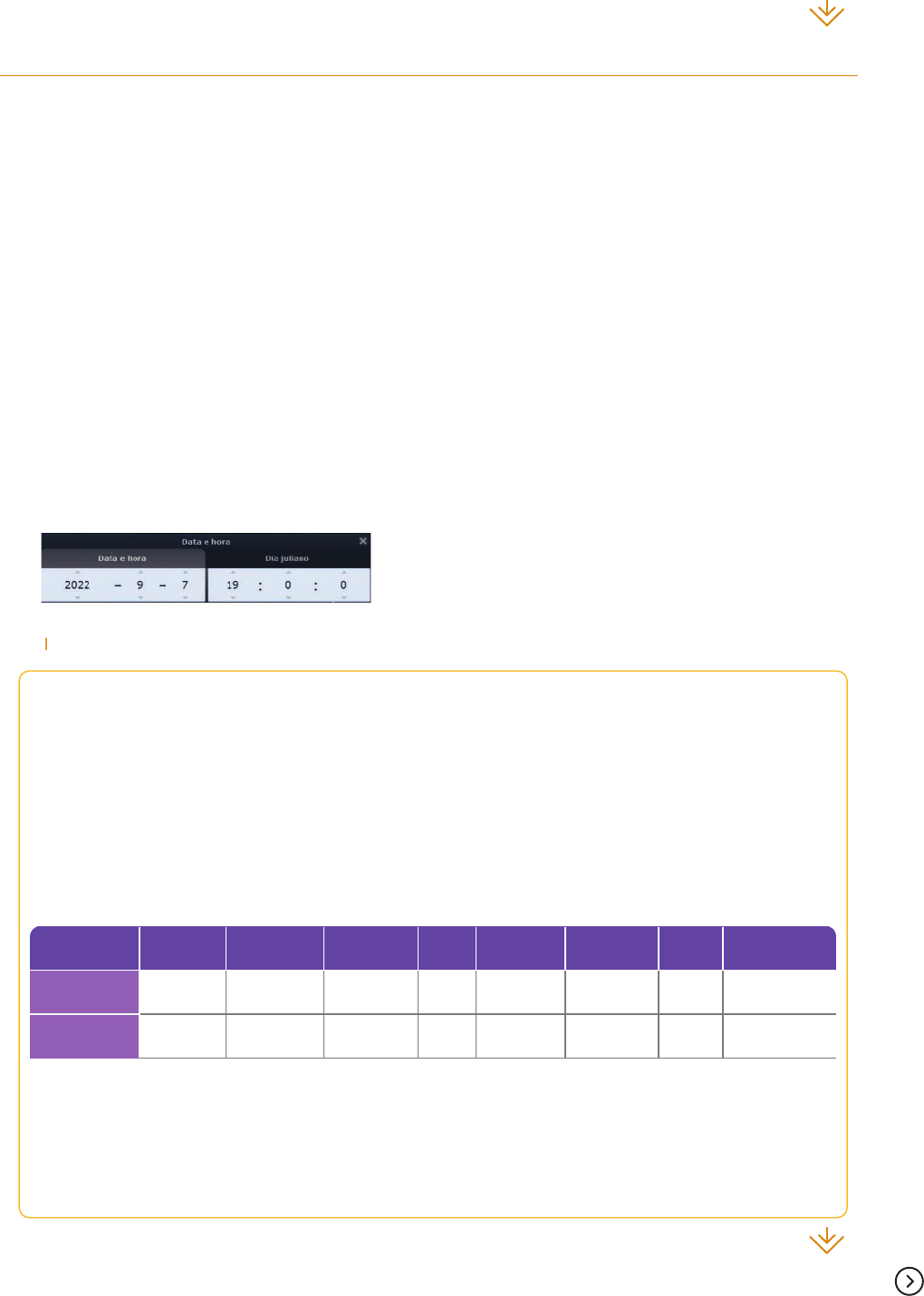 PARTE A – Estrelas e constelações 1. Com o programa em execução, selecione a loca- lização de Brasília. Para isso, acesse a aba lateral e clique sobre o ícone “Janela de localização” (fi- gura 1.11). Na janela que se abrir, digite o nome dessa cidade ao lado da lupa e feche a janela. 2. No menu “Janela de opções do céu e de visuali- zação”, na mesma aba lateral (figura 1.11), sele- cione o método de visualização “paisagem”, na parte superior da janela, e escolha a opção “Ho- rizonte zero”, na parte lateral. Esses parâmetros vão facilitar a visualização dos corpos celestes pró- ximos do horizonte sem os acidentes geográficos. 3. Clique sobre o ícone “Data e hora” na aba late- ral e coloque-o no canto inferior direito da tela. Nessa janela, aparece o ano-mês-dia e hora:mi- nuto:segundo. Altere a data para 7 de setembro de 2022 às 19 h (figura 1.12). Repare que, à medida que você realiza ações nesse programa, os segundos passam gradativamente. # Figura 1.12 – Captura de tela do software Stellarium. Em destaque, a janela de data e hora. R e p ro d u ç ã o / h tt p s :/ /s te lla ri u m . o rg /p t 4. Acione a primeira ferramenta da esquerda na aba inferior, clicando no ícone “Linhas das constelações”, e depois a ferramenta ao lado, no ícone “Rótulos das constelações” (para que apareçam seus nomes). Observe que, no hori- zonte sul (S), está a constelação do Camaleão e, um pouco à direita, mais acima, o Cruzei- ro do Sul já “deitado” (com sua haste maior na horizontal). Agora, você vai “deslocar o céu” para ver o horizonte oeste (O) seguran- do o mouse e arrastando a tela. Você verá a constelação de Virgem com sua estrela Spica e o planeta Mercúrio um pouco mais abaixo. Desloque a tela para o horizonte norte (N) e aparecerá a constelação do Dragão. Desloque o horizonte até o lado leste (L) e veja que par- te de uma constelação aparece (cinco estrelas formando um pentágono). Clique na estrela que se encontra no vértice do pentágono aci- ma do leste e à esquerda e logo aparecerão, no canto superior esquerdo, diversas informações sobre ela: gama (g Psc) da constelação de Pei- xes, magnitude 3,70, distância 137,9 anos-luz. Clicando com o botão direito, as informações sobre a estrela desaparecem. Esclarecimentos Dois conceitos apareceram nas características das estrelas: magnitude e distância em ano-luz. Magnitude aparente de uma estrela é um número que representa seu brilho. Quanto menor o número, maior será o brilho. A estrela mais brilhante do céu noturno é Sirius, da constelação do Cão Maior, e sua magnitude é 21,45 (um valor negativo). A olho nu, só conseguimos ver, mesmo em uma noite clara sem Lua, estrelas com magnitude aparente um pouco menor que 6. Nas cidades, a iluminação artificial prejudica um pouco a observação e, nesse caso, percebemos estrelas até a magnitude aparente 4. Para fazer referência às estrelas mais brilhantes de uma constelação, são utilizadas as letras gregas na ordem alfa- bética. A estrela alfa é a mais brilhante, a beta é a segunda mais brilhante, a gama é a terceira, e assim por diante. O quadro 1.1 a seguir mostra as oito estrelas mais brilhantes do céu e sua magnitude aparente. Estrela Sirius Canopus Rigil Vega Capella Arcturus Rigel Procyon Constelação Cão Maior Carina Centauro Lira Cocheiro Boieiro Orion Cão Menor Magnitude 21,46 20,74 0,01 0,03 0,08 20,05 0,13 0,37 # Quadro 1.1 – Estrelas mais brilhantes do céu. Ano-luz é uma unidade usada em Astronomia para medir distâncias muito grandes e corresponde à distância que a luz percorre em um ano. Como a velocidade da luz é de aproximadamente 300 000 km/s (3 3 108 m/s), isso significa que a cada segundo a luz percorre a distância de 300 000 km (o que corresponde a dar 7,5 voltas e meia em torno da Terra ao longo da linha do equador). Como um ano tem aproximadamente 31 536 000 s (365 3 24 3 60 3 60), um ano-luz será aproximadamente igual a 9,46 trilhões de km (9,46 3 1015 m). Dados obtidos pelo software Stellarium. Disponível em: https://stellarium.org/pt/. Acesso em: 26 ago. 2020. 19Cosmologia: dos primórdios da Astronomia à lei da gravitação universal 010a061_V1_CIE_NAT_Mortimer_g21Sc_U1_Cap1_LA.indd 19010a061_V1_CIE_NAT_Mortimer_g21Sc_U1_Cap1_LA.indd 19 9/3/20 7:42 PM9/3/20 7:42 PM 5. Na janela “Data e hora”, clique na setinha aci- ma dos minutos e aumente-os para 1, 2, 3, 4... Observe que a constelação de Peixes vai subindo e, quando se chega às 19 h 28 min, aparece o planeta Júpiter. Continuando a aumentar os mi- nutos, às 21 h 10 min a constelação de Peixes aparece totalmente. 6. Volte para as 19 h e mude o horizonte para o sul. Acione a “Grade equatorial”, clicando no quarto ícone da aba inferior. As linhas que apa- recem são as latitudes e longitudes celestes, equivalentes às terrestres. Observe o Cruzeiro do Sul. Aumente gradativamente os minutos e verifique que essa constelação e outras pare- cem girar em torno do polo sul celeste. Note que, às 21 h 11 min, o Cruzeiro do Sul começa a desaparecer no horizonte. Desloque a tela para o norte e verifique que o polo norte celes- te não é visível, pois fica abaixo da linha do ho- rizonte. Ao acionar os minutos da janela “Data e hora”, você constatou que as constelações movimentam-se no céu. Como você justifica esse movimento? 7. Retire a grade equatorial e observe as conste- lações que estão acima do horizonte leste em 7 de setembro de 2022, às 19 h. Na jane- la “Data e hora”, clique na setinha acima do mês passando para o mês seguinte (outubro). Que constelações estão acima do horizonte les- te? Onde estão as constelações que você viu no mês passado? Faça o mesmo para os meses sub- sequentes, novembro, dezembro e janeiro, até voltar ao mês inicial de setembro, mas do ano seguinte. Como você justifica as mudanças nas constelações a cada mês? 8.