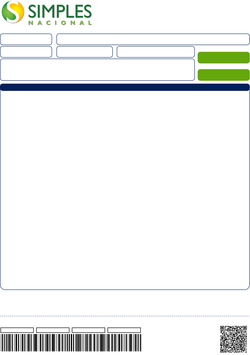 <p>Documento de Arrecadação</p><p>do Simples Nacional</p><p>56.143.272/0001-03 56.143.272 LEONARDO SANTOS DE OLIVEIRA</p><p>Período de Apuração Data de Vencimento Número do Documento</p><p>07.08.24233.6591410-0</p><p>Pagar este documento até</p><p>20/08/2024</p><p>Observações</p><p>CPF: 089.800.414-46</p><p>Tributos (R$): INSS 70,60 ICMS 0,00 ISS 5,00</p><p>PGMEI(Versao:3.14.1)</p><p>Valor Total do Documento</p><p>75,60</p><p>CNPJ Razão Social</p><p>Julho/2024 20/08/2024</p><p>Código PrincipalDenominação TotalMulta Juros</p><p>Composição do Documento de Arrecadação</p><p>0151 INSS - SIMPLES NACIONAL - MEI 70,60 70,60</p><p>07/2024</p><p>0125 ISS - SIMPLES NACIONAL - MEI 5,00 5,00</p><p>CAMPINA GRANDE (PB) - 07/2024</p><p>Totais 75,60 75,60</p><p>SENDA (Versão:5.2.0) 20/08/2024 12:38:241 1Página: /</p><p>85800000000 3 75600328242 2 33070824233 3 65914100847 2 AUTENTICAÇÃO MECÂNICA</p><p>Documento de Arrecadação do Simples Nacional</p><p>85800000000 3 75600328242 2 33070824233 3 56.143.272/0001-03</p><p>Número: 07.08.24233.6591410-0</p><p>Pagar até: 20/08/2024</p><p>Valor: 75,60</p><p>65914100847 2 CNPJ:</p><p>Pague com o PIX</p>