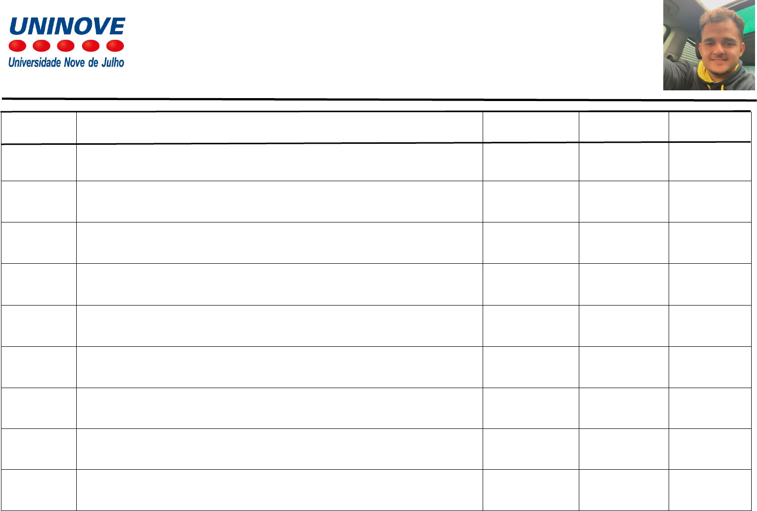 <p>Data Procedimento Nota Assinatura</p><p>professor</p><p>Assinatura</p><p>aluno</p><p>Nome (impresso): ___________________________________________________RA: ___________ Turma: ______</p><p>Professores: ______________________________________________________________________ Grupo: ______</p><p>Foto</p><p>impressa</p><p>Integração Periodontia-Dentística - Módulo Laboratorial</p><p>Data Procedimento Nota Assinatura</p><p>professor</p><p>Assinatura</p><p>aluno</p>