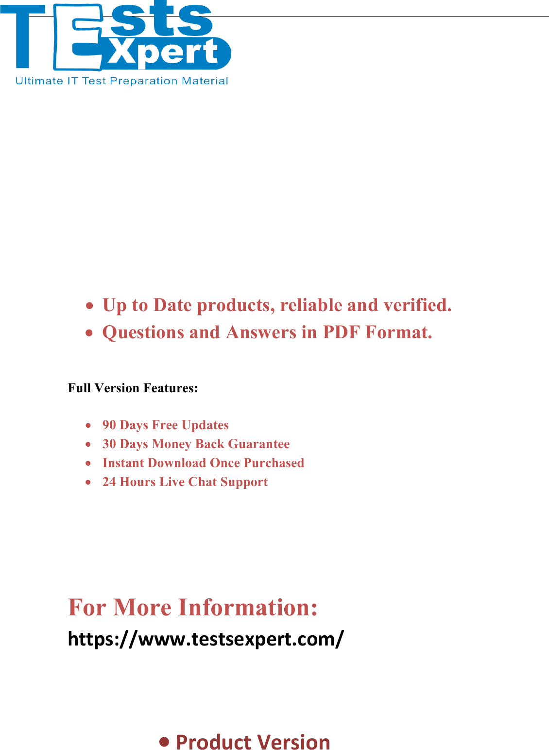 • Up to Date products, reliable and verified. • Questions and Answers in PDF Format. Full Version Features: • 90 Days Free Updates • 30 Days Money Back Guarantee • Instant Download Once Purchased • 24 Hours Live Chat Support For More Information: https://www.testsexpert.com/ • Product Version College Admission Introduction-to-World-Religions DSST Introduction to World Religions Exam (Dantes Subject Standardized Tests) Visit us at Latest Version: 6.0 Question: 1 In the Bhagavad Gait (Song of the Blessed Lord), one of the greatest classics of religious literature, Lord Krishna emphasizes the importance of bhakti, which may be defined as: A. The cycle of rebirth and death that afflicts every living being until moksha B. The illusion-creating power of the cosmic mind C. Ardent devotion to a deity in grateful recognition of aid received or promised D. A system that sees the universe as a dualism of the forces of spirit and matter Answer: C Explanation: Bhakti is ardent devotion to a deity in grateful recognition of aid received or promised. A— Samara is the cycle of rebirth and death that afflicts every living being until they reach moksha. B—Maya is the illusion-creating power of the cosmic mind. D—The system that sees the universe as a dualism of the forces of spirit and matter is known as Sankhya. Question: 2 The Law of Manu provides the outline for: A. India's caste system B. Proper rites for sacrifice C. Soft secularism D. Hard secularism Answer: A Explanation: The Law of Manu is a piece of traditional Indian literature that outlines India's caste system. B—Although Hindus do carry out sacrificial rites, the Law of Manu does not contain guidelines for doing so. C—Soft secularism, the acceptance of a common religious basis for personal and social identity, is not part of the text. D—Hard secularism, which is the rejection of religion, is not mentioned in the Law of Manu. Question: 3 Hinduism has been the source of what three religions? A. Judaism, Baha'i, and Christianity Visit us at B. Jainism, Sikhism, and Buddhism C. Buddhism, Taoism, and Confucianism D. Zoroastrianism, Baha'i, and Sikhism Answer: B Explanation: Hinduism has been the source of three other religions: Jainism, Buddhism, and Sikhism. Question: 4 Upanishads are: A. Practices of self-denial for the attainment of spiritual enlightenment B. The three major gods of modern Hinduism C. Philosophical writings from the classical teachers of Hinduism D. Evil spirits believed to cause sickness Answer: C Explanation: Upanishads are philosophical writings from the classical teachers of Hinduism. A— Upanishads are not practices of self-denial for the attainment of spiritual enlightenment. B—The three major gods of modern Hinduism are Brahma, Vishnu, and Shiva. D—Upanishads are not evil spirits believed to cause sickness. Question: 5 Vishnu appears in Hinduism in many forms known as: A. Gopis B. Sati C. Bhakti D. Avatars Answer: D Explanation: In Hindu sacred literature and stories, Vishnu is a major god who appeared in many forms known as avatars, or alternate forms or incarnations of a deity. A—Gopis are milkmaids or young wives who had love trysts with Krishna. B—A sati is a virtuous Hindu widow who is cremated in order to join her dead husband. C—Bhakti is devotion to the gods of Hinduism. Question: 6 Visit us at Dharma can best be described as A. Spirit B. Duty C. Fertility D. Soul Answer: B Explanation: Dharma refers to duty and moral law incumbent on a person in traditional Hindu life, based on caste and situation in life. Question: 7 Shiva is the Hindu god of: A. Creation B. Good fortune and prosperity C. Death, disease, and destruction D. Love, benevolence, and forgiveness Answer: C Explanation: Shiva, the most popular god in postclassical Hinduism, is the god of death, disease, and destruction. A—The Hindu god of creation is Brahma. B—L.akshmi is the goddess of good fortune and prosperity. D—The god of love, benevolence, and forgiveness is Vishnu. Question: 8 Linked with the Law of Karma, India's caste system acquired a kind of moral justification. Which statement best illustrates this line of thinking? I. If a man was born a Shudra, it was because he had sinned in a previous life II. A Brahmin had every right to exalt his social position; his good deeds in a previous life earned him the privileges he enjoyed in his present life III. The class with the best record of spiritual attainment should be the one at the top of the caste system IV. Anyone who did not attempt to address the inequalities of society was considered impious and morally reprehensible A. I and II only B. II, III, and IV only C. I and III only D. I, II, and III only Visit us at Answer: D Explanation: India's caste system was inexorably linked with Hinduism. Statements I, II, and III best illustrate the belief that castes were morally and religiously justified. Statement IV contradicts the Hindu belief that any attempt to address the inequalities of society is impious and morally reprehensible. Question: 9 Which of the following is NOT true about Buddhism? A. It was the world's first missionary religion B. Its place as a major world religion was secured by Asoka, the emperor of India from 268 to 232 B.C. C. It was founded by Siddhartha Gautama according to the principles of the caste system D. Its most basic teachings are those of the Four Noble Truths Answer: C Explanation: Although it is true that Buddhism was founded by Siddhartha Gautama, Buddhism rejected the authority of the Hindu Vedas and the caste system. All of the other answer choices are true concerning Buddhism. Question: 10 Before his enlightenment, the Buddha lived as a_____________. A. Prince B. Shiva C. Mahavira D. Monk Answer: A Explanation: Before his enlightenment, Buddha lived as Siddhartha Gautama, a prince surrounded by beauty and luxury. Visit us at For More Information – Visit link below: https://www.testsexpert.com/ 16$ Discount Coupon: 9M2