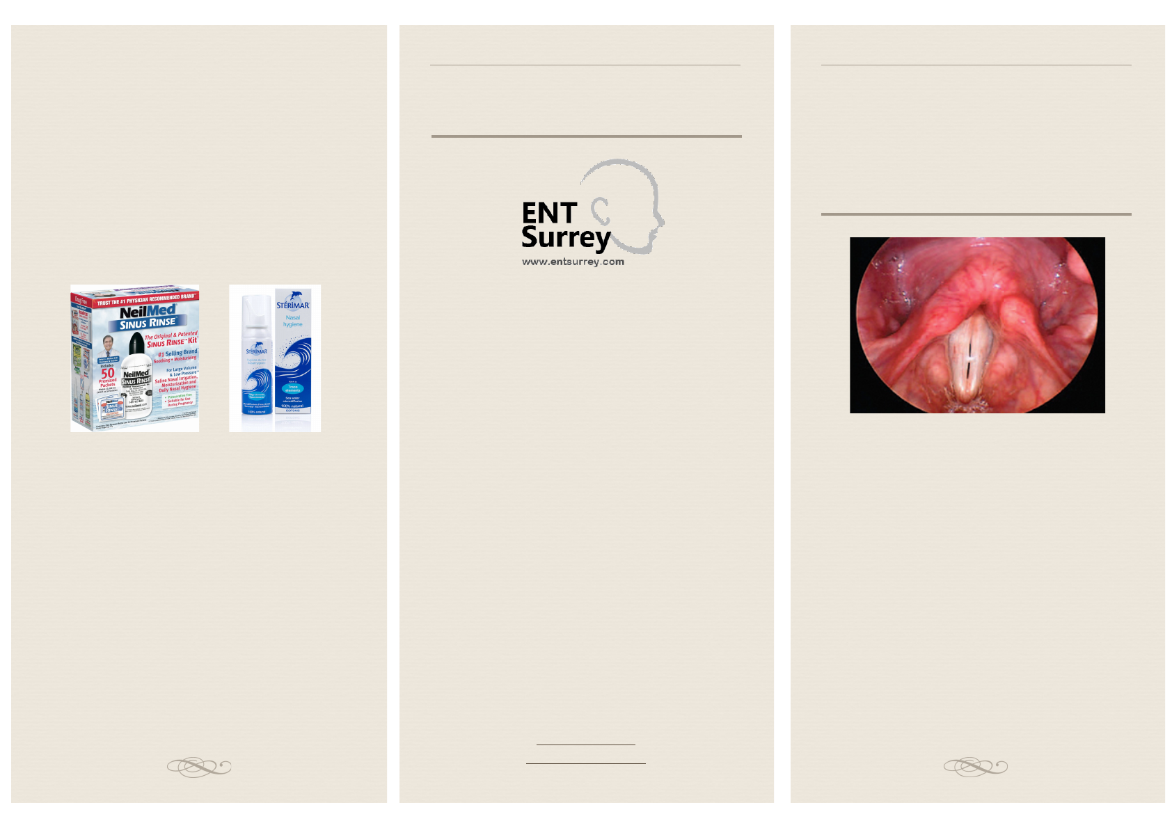 <p>E N T S U R R E Y</p><p>Tel: 01444 416225!</p><p>Email: jane.sayer63@gmail.com!</p><p>For Appointments ring!</p><p>Spire Gatwick Park Hospital:!</p><p>01293 778919!</p><p>North Downs Hospital:!</p><p>01883 337440!</p><p>www.entsurrey.com</p><p>www.tonsillotomy.co.uk</p><p>Follow us on twitter: @ENTSurrey</p><p>This leaflet was produced by Mr</p><p>Sameer Khemani , a pr i va te</p><p>Consultant Surgeon specialising in</p><p>Ear, Nose & Throat Surgery and</p><p>Director of ENT Surrey.!!</p><p>ENT Surrey provides the very best</p><p>care to patients with a wide variety</p><p>of problems of the Ear, Nose and</p><p>Throat. We provide services to</p><p>areas in Surrey and West Sussex.</p><p>E N T S U R R E Y</p><p>This leaf let i s des igned to provide</p><p>patients with background information</p><p>about Laryngo-pharyngeal Reflux (LPR),</p><p>sometimes known as EOR or Silent</p><p>Ref lux . It i s not in tended a s a</p><p>replacement for the detailed discussion</p><p>between you and your surgeon.</p><p>LARYNGO-</p><p>PHARYNGEAL</p><p>REFLUX (LPR)</p><p>What other medications may be used?</p><p>If Acid reflux is also thought to also be occurring, then you may</p><p>also be started on a drug called a proton pump inhibitor or PPI.</p><p>Examples include lansoprazole or omeprazole.!!</p><p>Sometimes nasal problems are occasionally implicated in the set of</p><p>symptoms people describe. Occasionally it may be recommended</p><p>that you use a salt water nasal rinse such as NEALMED</p><p>SINUSRINSE® or STERIMAR®.!</p><p>!!!!!!!!!!!</p><p>How long will I need treatment for?</p><p>Most people with LPR report improvement within 2-3 months of</p><p>treatment but occasionally it may take 6 months or more for all of</p><p>the voice problems or throat symptoms to get better. As the</p><p>symptoms get better, the frequency of treatment doses can be</p><p>reduced. For some people the symptoms get completely better and</p><p>no further treatment is required, but for others ongoing treatment</p><p>may be required. If symptoms fail to respond then further</p><p>investigations may be necessary and very occasionally a referral to</p><p>a general surgeon may be recommended to consider a surgical</p><p>procedure to tighten the valve between the stomach and the food</p><p>pipe.</p><p>http://www.entsurrey.com</p><p>http://www.tonsillotomy.co.uk</p><p>http://www.entsurrey.com</p><p>http://www.tonsillotomy.co.uk</p><p>What medications are useful?</p><p>You may be recommended to use Gaviscon Advance® in</p><p>liquid form. Gaviscon Advance ® is an alginate (derived from</p><p>seaweed) and is an extremely safe and natural treatment. This</p><p>treatment forms a physical barrier on the surface of the</p><p>stomach which stops digestive justices from penetrating</p><p>through it. The barrier works for approximately 4-6 hours.!</p><p>!</p><p>Gaviscon forms a “raft” on the surface of the stomach!</p><p>What dose should I use?</p><p>The recommended dose is 10mls (the equivalent of one</p><p>dessert spoon full) after every meal and before</p><p>bedtime. If you are taking a tablet such as omeprazole or</p><p>lansoprazole for acid reflux, this hold be taken before eating.</p><p>The normal course of treatment is 6 weeks. A follow up</p><p>appointment will be normally made for you at that point.!</p><p>How is LPR diagnosed:</p><p>The symptoms of LPR often help to suggest the diagnosis.</p><p>However, the best way to formally confirm the diagnosis is by</p><p>undergoing an examination of your throat and voice box by</p><p>an ENT Surgeon. This examination (called a flexible nasal</p><p>endoscopy) is performed with or without local anaesthetic in</p><p>an outpatient setting. A questionnaire rating how often and</p><p>how badly your symptoms are may also be used.!</p><p>What are the clinical findings that suggest the</p><p>diagnosis?</p><p>The ENT surgeon may note swelling (oedema) or redness</p><p>(erythema) in the back of the voice box in an area called the</p><p>inter-arytenoid region. This is quite predictive of the</p><p>diagnosis of LPR. !</p><p>What are the general principles of treatment?</p><p>The main methods of treatment are through simple dietary</p><p>and lifestyle changes and simple medications. In very severe</p><p>cases, surgery can sometimes be considered.!</p><p>What lifestyle changes are useful?</p><p>• Eat small, regular meals!</p><p>• Avoid fatty foods and try to lose weight!</p><p>• Reduce the amount of alcohol you drink!</p><p>• Reduce caffeine intake!</p><p>• Avoid fruit juices and fizzy drinks!</p><p>• Give up smoking!</p><p>• Chew gum congaing bicarbonate of soda (tooth whitening</p><p>gum)</p><p>What are the Symptoms of LPR?</p><p>Common symptoms encountered include:!</p><p>• A tickly cough!</p><p>• A sore or dry throat!</p><p>• Excess catarrh and mucus in your throat!</p><p>• A sensation of something stuck in your throat (often</p><p>referred to as a globus sensation). This sensation is often</p><p>worse when dry swallowing rather than when eating food!</p><p>• A change in the quality of one’s voice / hoarseness!</p><p>• Difficulty in swallowing, especially tablets!</p><p>• Excessive throat clearing!</p><p>• Choking episodes at night!</p><p>Some individuals (approximately 20-25%) also experience</p><p>heartburn or indigestion on a regular basis. Symptoms are</p><p>often worse in the morning or at night after laying horizontal</p><p>for a period of time.!</p><p>!</p><p>What causes my problems?</p><p>The diagnosis of LPR is fairly common. We all produce</p><p>stomach juices comprised of powerful digestive acids and</p><p>enzymes. When acid refluxes from the stomach into the food</p><p>pipe (oesophagus) it can cause heartburn or indigestion.</p><p>However, most of the symptoms of LPR are thought to be due</p><p>to reflux of the digestive enzymes in the stomach up to the</p><p>throat (pharynx) or voice box (larynx).</p>