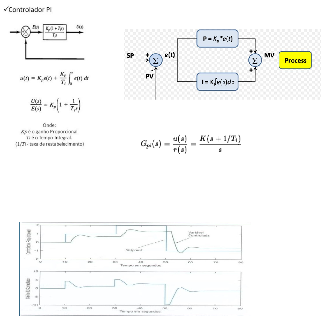 <p>1. OBTENHA O ALGORITMO D(Z) DO PID E DESCREVA UMA APLICAÇÃO DE CONTROLE AUTOMÁTICO DESTE ALGORITMO.</p><p>Aplicando-se a transformada de Laplace tem-se a seguinte função de transferência para o controlador PI:</p><p>2. UTILIZANDO O MÉTODO ZIEGLER NICHOLS OU RESPOSTA AO DEGRAU, CONVERTA DO PID PARALELO PARA SÉRIE.</p><p>3. CONSIDERE AS OBSERVAÇÕES E JUSTIFIQUE. A figura abaixo mostra o desempenho do controlador Proporcional (K = 4) para uma mudança no setpoint.</p><p>· Este tipo de controlador não consegue eliminar o erro.</p><p>Este sistema possui atraso no transporte, pois ao mudar o degrau de patamar, terá um delay. Então levará um determinado tempo para acessar um novo patamar. Desta forma esse controlador não consegue eliminar o erro. </p><p>· Quanto maior for o ganho, menor será o desvio em regime permanente, entretanto a malha tenderá a instabilizar. </p><p>· A saída do controlador proporcional (P) e o erro entre o setpoint e a variável controlada permanecem constante. </p><p>Com ou sem o controlador proporcional a saída e o erro entre o setpoint e a variável não mudará, pois o PID não consegue alterar o tempo.</p><p>· Se o processo fosse integrador (tivesse um polo na origem), então, o controlador P não iria apresentar este erro em regime permanente, e seria o algoritmo ideal.</p><p>Não apresentaria o erro porque se tivesse um polo na origem ele conseguiria eliminar o erro já que não haveria diferença entre a entrada e a saída.</p><p>4. SIMULAR NO MATLAB A PLANTA</p><p>COM O PID PARALELO SENDO:</p><p>Kp = 3, TI = 5 s, TD = 2 s, fator “α” = 0,1</p><p>5. CONSIDERANDO O CONTROLADOR PI, IMPLEMENTE O MESMO NO ATOS 1.0</p><p>6. DESCREVA E APRESENTE AS FUNÇÕES DE TRANSFERÊNCIA DOS EXTRAPOLADORES DE ORDEM 1 E 2.</p><p>É qualquer processo de obtenção dos valores de uma função fora de um intervalo, mediante o conhecimento de seu comportamento dentro desse intervalo.</p><p>REGRA UM (Tredinnick-Souza, 1999 e 2002) - As limitações dos métodos clássicos no que se refere à preservação da estabilidade na presença de ganhos de controle elevados e de altos valores em períodos de amostragem levaram ao desenvolvimento de um método de mapeamento alternativo que chamamos de “nova-regra um” o qual é descrito pela seguinte equação à diferenças-finitas:</p><p>Aplicando a transformada Z teremos,</p><p>A qual desloca um polo de z = -1 da regra de Tustin para z' = -ξ, 0 ≤ ξ ≤ 1. Isto evita ou retarda a instabilidade em sistemas amostrados em malha-fechada e o ξ é um novo parâmetro de projeto (além dos ganhos de controle e do período de amostragem). A nova regra 1 pode ser reduzida à regra de Tustin ou ao “backward”: ao Tustin se ξ =1; e ao backward se ξ = 0. A nova-regra um mapeia o semiplano esquerdo do plano s para o interior de um círculo.</p><p>REGRA DOIS (Tredinnick-Souza, 2002) - A equação a diferenças finitas da nova regra dois é dada por:</p><p>Descreve uma família de círculos dentro do círculo unitário com centro sobre o eixo real.</p><p>image9.png</p><p>image10.png</p><p>image11.png</p><p>image12.png</p><p>image1.png</p><p>image2.png</p><p>image3.gif</p><p>image4.png</p><p>image5.png</p><p>image6.png</p><p>image7.png</p><p>image8.png</p>