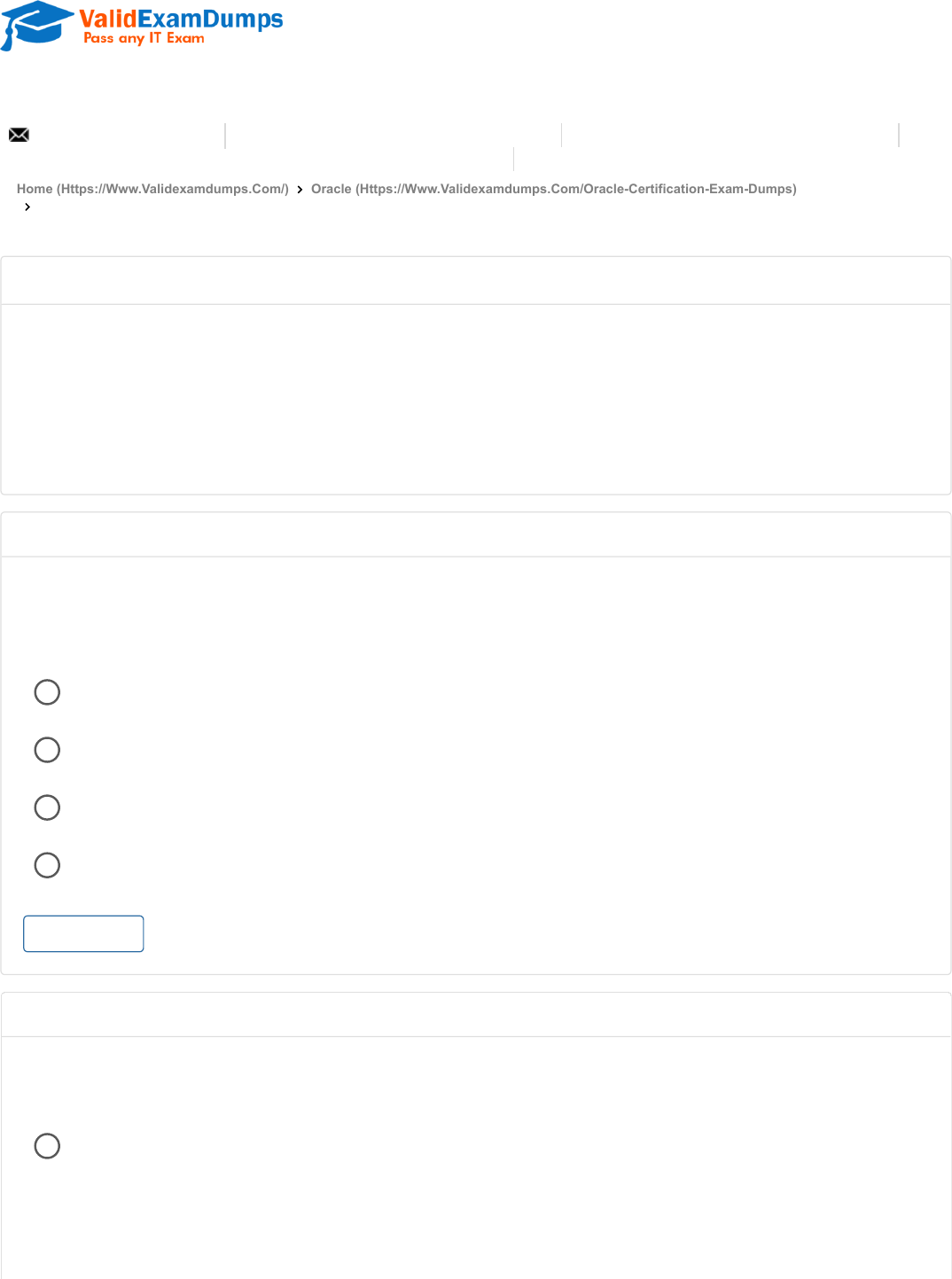 <p>9/30/24, 3:44 PM Free Oracle 1Z0-1084-24 Actual Exam Questions</p><p>https://www.validexamdumps.com/oracle/1z0-1084-24-exam-questions 1/4</p><p></p><p> 1Z0-1084-24 Exam Questions</p><p>(HTTPS://WWW.VALIDEXAMDUMPS.COM/)</p><p>support@validexamdumps.com About Us (https://www.validexamdumps.com/about-us) Contact Us (https://www.validexamdumps.com/contact)</p><p>FAQs (https://www.validexamdumps.com/faqs)</p><p>Home (Https://Www.Validexamdumps.Com/) Oracle (Https://Www.Validexamdumps.Com/Oracle-Certification-Exam-Dumps)</p><p>Free Oracle 1Z0-1084-24 Exam Actual Questions</p><p>The questions for 1Z0-1084-24 were last updated On Sep 28, 2024</p><p>GET ALL 100 QUESTIONS (HTTPS://WWW.VALIDEXAMDUMPS.COM/ORACLE/1Z0-1084-24-</p><p>DUMPS)</p><p></p><p>Question No. 1</p><p>You have two microservices, A and B, running in production. Service A relies on APIs from service B. You want to test</p><p>changes to service A without deploying all of its dependencies, which include service B. Which approach should you</p><p>take to test service A?</p><p>Show Answer</p><p>Test using API mocks.A</p><p>Test the APIs in private environments.B</p><p>Test against production APIs.C</p><p>There is no need to explicitly test APIs.D</p><p>Question No. 2</p><p>In the DevOps lifecycle, what is the difference between continuous delivery and continuous deployment? (Choose</p><p>two.)</p><p>Continuous delivery involves automation of developer tasks, while continuous deployment involves manual</p><p>operational tasks.</p><p>A</p><p>https://www.validexamdumps.com/</p><p>https://www.validexamdumps.com/about-us</p><p>https://www.validexamdumps.com/contact</p><p>https://www.validexamdumps.com/faqs</p><p>https://www.validexamdumps.com/</p><p>https://www.validexamdumps.com/oracle-certification-exam-dumps</p><p>https://www.validexamdumps.com/oracle/1z0-1084-24-dumps</p><p>javascript:void();</p><p>9/30/24, 3:44 PM Free Oracle 1Z0-1084-24 Actual Exam Questions</p><p>https://www.validexamdumps.com/oracle/1z0-1084-24-exam-questions 2/4</p><p>Show Answer</p><p>Continuous delivery utilizes automatic deployment to a development environment, while continuous</p><p>deployment involves automatic deployment to a production environment.</p><p>B</p><p>Continuous delivery requires more automatic linting, while continuous deployment testing must be run</p><p>manually.</p><p>C</p><p>Continuous delivery is a process that initiates deployment manually, while continuous deployment is based on</p><p>automating the deployment process.</p><p>D</p><p>Question No. 3</p><p>Which of these is a valid use case for OCI Queue?</p><p>Show Answer</p><p>Managing network traffic between servicesA</p><p>Storing and retrieving large filesB</p><p>Sending real-time streaming dataC</p><p>Building decoupled and scalable systemsD</p><p>Question No. 4</p><p>Which technique is used for testing the entire user flow as well as the moving parts of a cloud native app, ensuring</p><p>that there are no high-level discrepancies?</p><p>Show Answer</p><p>Contract TestingA</p><p>Integration TestingB</p><p>Unit TestingC</p><p>Component TestingD</p><p>End-to-end TestingE</p><p>javascript:void();</p><p>javascript:void();</p><p>javascript:void();</p><p>9/30/24, 3:44 PM Free Oracle 1Z0-1084-24 Actual Exam Questions</p><p>https://www.validexamdumps.com/oracle/1z0-1084-24-exam-questions 3/4</p><p>Question No. 5</p><p>In the shared responsibility model, who should perform patching, upgrading, and maintaining of the worker nodes in</p><p>provisioned Oracle Container Engine for Kubernetes (OKE) clusters?</p><p>Show Answer</p><p>Oracle Support does it.A</p><p>It is the responsibility of the customer.B</p><p>It is an automated process.C</p><p>GET ALL 100 QUESTIONS (HTTPS://WWW.VALIDEXAMDUMPS.COM/ORACLE/1Z0-1084-24-</p><p>DUMPS)</p><p>Explore Other Oracle Exams (https://www.validexamdumps.com/oracle-certification-exam-dumps)</p><p></p><p>HOT VENDORS</p><p>Microsoft (https://www.validexamdumps.com/microsoft-certification-exam-</p><p>dumps)</p><p>Oracle (https://www.validexamdumps.com/oracle-certification-exam-dumps)</p><p>Cisco (https://www.validexamdumps.com/cisco-certification-exam-dumps)</p><p>HP (https://www.validexamdumps.com/hp-certification-exam-dumps)</p><p>IBM (https://www.validexamdumps.com/ibm-certification-exam-dumps)</p><p>CUSTOMER SERVICES</p><p>Home (https://www.validexamdumps.com/)</p><p>FAQ (https://www.validexamdumps.com/faqs)</p><p>Contact Us (https://www.validexamdumps.com/contact)</p><p>ABOUT STORE</p><p>About Us (https://www.validexamdumps.com/about-us)</p><p>Disclaimer (https://www.validexamdumps.com/disclaimer)</p><p>TESTED 30th Sep</p><p>SECURITY & PRIVACY</p><p>Privacy Policy (https://www.validexamdumps.com/privacy-policy)</p><p>Terms & Conditions (https://www.validexamdumps.com/terms-and-</p><p>conditions)</p><p>SEARCH</p><p>javascript:void();</p><p>https://www.validexamdumps.com/oracle/1z0-1084-24-dumps</p><p>https://www.validexamdumps.com/oracle-certification-exam-dumps</p><p>https://www.validexamdumps.com/microsoft-certification-exam-dumps</p><p>https://www.validexamdumps.com/oracle-certification-exam-dumps</p><p>https://www.validexamdumps.com/cisco-certification-exam-dumps</p><p>https://www.validexamdumps.com/hp-certification-exam-dumps</p><p>https://www.validexamdumps.com/ibm-certification-exam-dumps</p><p>https://www.validexamdumps.com/</p><p>https://www.validexamdumps.com/faqs</p><p>https://www.validexamdumps.com/contact</p><p>https://www.validexamdumps.com/about-us</p><p>https://www.validexamdumps.com/disclaimer</p><p>https://www.validexamdumps.com/privacy-policy</p><p>https://www.validexamdumps.com/terms-and-conditions</p><p>9/30/24, 3:44 PM Free Oracle 1Z0-1084-24 Actual Exam Questions</p><p>https://www.validexamdumps.com/oracle/1z0-1084-24-exam-questions 4/4</p><p>Exams code , certifications, vendor or keywords</p><p>PAYMENT METHOD</p><p>search... SEARCH</p>