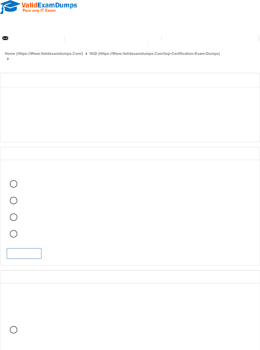 <p>10/2/24, 12:49 PM Free iSQI TMMi-P_Syll2.1 TMMi-P Actual Exam Questions</p><p>https://www.validexamdumps.com/isqi/tmmi-p-syll2.1-exam-questions 1/4</p><p></p><p> TMMi-P_Syll2.1 Exam Questions</p><p>(HTTPS://WWW.VALIDEXAMDUMPS.COM/)</p><p>support@validexamdumps.com About Us (https://www.validexamdumps.com/about-us) Contact Us (https://www.validexamdumps.com/contact)</p><p>FAQs (https://www.validexamdumps.com/faqs)</p><p>Home (Https://Www.Validexamdumps.Com/) ISQI (Https://Www.Validexamdumps.Com/Isqi-Certification-Exam-Dumps)</p><p>Free iSQI TMMi-P_Syll2.1 Exam Actual Questions</p><p>The questions for TMMi-P_Syll2.1 were last updated On Oct 1, 2024</p><p>GET ALL 111 QUESTIONS (HTTPS://WWW.VALIDEXAMDUMPS.COM/ISQI/TMMI-P-SYLL2.1-</p><p>DUMPS)</p><p></p><p>Question No. 1</p><p>Which type(s) of evidence collection is required with a formal TMMi assessment?</p><p>Show Answer</p><p>Staff interviewsA</p><p>Document studyB</p><p>Customer surveysC</p><p>Staff interviews and document studyD</p><p>Question No. 2</p><p>Consider the following characteristics of an assessment:</p><p>- the assessment is performed by an accredited TMMi assessor</p><p>- only interviews are used for collecting evidence.</p><p>To which type of assessment do these characteristics relate?</p><p>Informal TMMI assessmentA</p><p>https://www.validexamdumps.com/</p><p>https://www.validexamdumps.com/about-us</p><p>https://www.validexamdumps.com/contact</p><p>https://www.validexamdumps.com/faqs</p><p>https://www.validexamdumps.com/</p><p>https://www.validexamdumps.com/isqi-certification-exam-dumps</p><p>https://www.validexamdumps.com/isqi/tmmi-p-syll2.1-dumps</p><p>javascript:void();</p><p>10/2/24, 12:49 PM Free iSQI TMMi-P_Syll2.1 TMMi-P Actual Exam Questions</p><p>https://www.validexamdumps.com/isqi/tmmi-p-syll2.1-exam-questions 2/4</p><p>Show Answer</p><p>Formal TMMi assessmentB</p><p>Both formal and informal TMMi assessmentsC</p><p>Neither formal nor informal TMMi assessments based on TAMARD</p><p>Question No. 3</p><p>During a TMMi assessment the percentage of process achievement for the Test Policy and Strategy process</p><p>area has been</p><p>determined at 40%.</p><p>Which of the following compliance ratings would you assign to the Test Policy and Strategy process area?</p><p>Show Answer</p><p>Not achievedA</p><p>Partly achievedB</p><p>Largely achievedC</p><p>Fully AchievedD</p><p>Question No. 4</p><p>Which of the following activities are part of the Acting phase of a test improvement cycle?</p><p>i. Refine solutions</p><p>Ii. Develop Approach</p><p>iii. Implement Solution</p><p>iv. Develop Recommendations</p><p>v. Analyze and Validate</p><p>i, h and vA</p><p>i and iiiB</p><p>ii and ivC</p><p>ii, iv and vD</p><p>javascript:void();</p><p>javascript:void();</p><p>10/2/24, 12:49 PM Free iSQI TMMi-P_Syll2.1 TMMi-P Actual Exam Questions</p><p>https://www.validexamdumps.com/isqi/tmmi-p-syll2.1-exam-questions 3/4</p><p>Show Answer</p><p>Question No. 5</p><p>The Learning phase completes the improvement cycle. One of the goals of the IDEAL model is to continuously</p><p>improve the ability to implement change. Which of the following activities is part of the Learning phase?</p><p>Show Answer</p><p>Develop RecommendationsA</p><p>Refine SolutionB</p><p>Analyse and ValidateC</p><p>Propose Immediate ActionsD</p><p>GET ALL 111 QUESTIONS (HTTPS://WWW.VALIDEXAMDUMPS.COM/ISQI/TMMI-P-SYLL2.1-</p><p>DUMPS)</p><p>Explore Other iSQI Exams (https://www.validexamdumps.com/isqi-certification-exam-dumps)</p><p></p><p>HOT VENDORS</p><p>Microsoft (https://www.validexamdumps.com/microsoft-certification-</p><p>exam-dumps)</p><p>Oracle (https://www.validexamdumps.com/oracle-certification-exam-</p><p>dumps)</p><p>Cisco (https://www.validexamdumps.com/cisco-certification-exam-</p><p>dumps)</p><p>HP (https://www.validexamdumps.com/hp-certification-exam-dumps)</p><p>IBM (https://www.validexamdumps.com/ibm-certification-exam-dumps)</p><p>CUSTOMER SERVICES</p><p>Home (https://www.validexamdumps.com/)</p><p>FAQ (https://www.validexamdumps.com/faqs)</p><p>Contact Us (https://www.validexamdumps.com/contact)</p><p>ABOUT STORE</p><p>About Us (https://www.validexamdumps.com/about-us)</p><p>Disclaimer (https://www.validexamdumps.com/disclaimer)</p><p>SECURITY & PRIVACY</p><p>javascript:void();</p><p>javascript:void();</p><p>https://www.validexamdumps.com/isqi/tmmi-p-syll2.1-dumps</p><p>https://www.validexamdumps.com/isqi-certification-exam-dumps</p><p>https://www.validexamdumps.com/microsoft-certification-exam-dumps</p><p>https://www.validexamdumps.com/oracle-certification-exam-dumps</p><p>https://www.validexamdumps.com/cisco-certification-exam-dumps</p><p>https://www.validexamdumps.com/hp-certification-exam-dumps</p><p>https://www.validexamdumps.com/ibm-certification-exam-dumps</p><p>https://www.validexamdumps.com/</p><p>https://www.validexamdumps.com/faqs</p><p>https://www.validexamdumps.com/contact</p><p>https://www.validexamdumps.com/about-us</p><p>https://www.validexamdumps.com/disclaimer</p><p>10/2/24, 12:49 PM Free iSQI TMMi-P_Syll2.1 TMMi-P Actual Exam Questions</p><p>https://www.validexamdumps.com/isqi/tmmi-p-syll2.1-exam-questions 4/4</p><p>TESTED 2nd Oct</p><p>Privacy Policy (https://www.validexamdumps.com/privacy-policy)</p><p>Terms & Conditions (https://www.validexamdumps.com/terms-and-</p><p>conditions)</p><p>SEARCH</p><p>Exams code , certifications, vendor or keywords</p><p>PAYMENT METHOD</p><p>search... SEARCH</p><p>https://www.validexamdumps.com/privacy-policy</p><p>https://www.validexamdumps.com/terms-and-conditions</p>