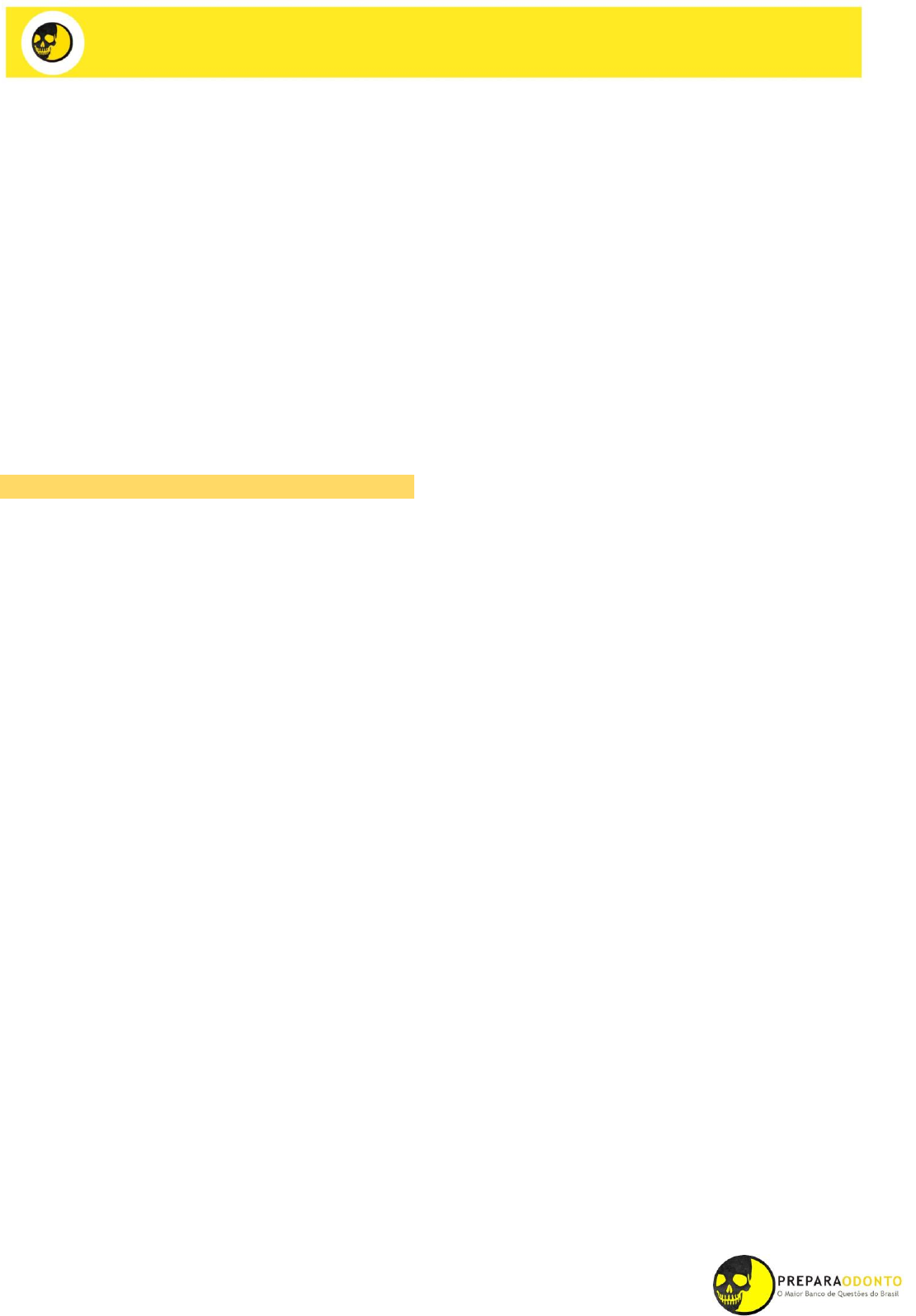 17 ODONTOLOGIA –CLÍNICO GERAL (2017) Questão 11 A constituição do Brasil de 1988 estabelece para o Sistema Único de Saúde as seguintes diretrizes, EXCETO A) participação da comunidade. B) atendimento integral. C) centralização. D) direção única em cada esfera de governo. Questão 12 Conforme determinado pela Constituição do Brasil de 1988, a assistência à saúde é A) proibida à iniciativa privada. B) livre à iniciativa privada. C) permitida à iniciativa privada apenas para transplantes. D) permitida à iniciativa privada apenas para atendimento a urgências. Questão 13 Considerando a Constituição do Brasil de 1988, podemos dizer que ao Sistema Único de Saúde A) compete ordenar a formação de recursos humanos apenas na medicina. B) não compete ordenar a formação de recursos humanos na área da saúde. C) compete ordenar a formação de recursos humanos na área da saúde. D) compete ordenar a formação de recursos humanos apenas na medicina e na enfermagem. Questão 14 Segundo a Lei n. 8.080/90, na esfera federal, os recursos financeiros originários do orçamento da Seguridade Social, de outros orçamentos da União, além de outras fontes serão administrados pelo Ministério da Saúde, por meio do A) Fundo do Tribunal de Contas da União. B) Fundo Municipal de Saúde. C) Fundo Estadual de Saúde. D) Fundo Nacional de Saúde. Questão 15 Considerando os princípios norteadores da Política Nacional de Humanização na rede SUS, assinale a alternativa INCORRETA. A) Valorização da dimensão objetiva em todas as práticas de atenção. B) Construção da autonomia dos sujeitos. C) Fortalecimento do trabalho em equipe D) Fortalecimento do controle social. Questão 16 A lista das doenças de notificação compulsória definida em portaria do Ministro da Saúde A) não pode ser modificada pelos gestores estaduais. B) pode ser modificada pelos gestores municipais e estaduais com a retirada de doenças em definição conjunta com o Ministério da Saúde. C) pode ser modificada pelos gestores estaduais e municipais com a inclusão de outras doenças em definição conjunta com o Ministério da Saúde. D) não pode ser modificada pelos municípios. Questão 17 A quebra do sigilo nos casos de doenças de notificação compulsória com divulgação fora do âmbito médico sanitário A) pode ser aceita em caso de risco para a comunidade, respeitando-se o direito ao anonimato. B) não pode ser aceita sob nenhum pretexto. C) é prática usual do sistema de saúde. D) será punida com a prisão dos profissionais envolvidos. QUESTAO 18 São dispositivos da Política Nacional de Humanização no SUS, EXCETO A) acolhimento com classificação de risco. B) acolhimento sem levar em conta o risco. C) sistemas de escuta qualificada para usuários da saúde. D) equipes de referência.