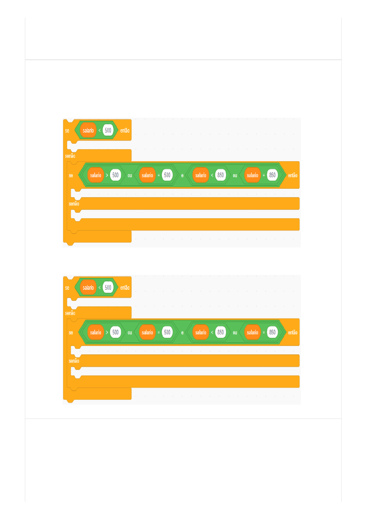 03/06/2019 Cruzeiro do Sul https://cruzeirodosul.provafacilnaweb.com.br/cruzeirodosul/schedule/resultcandidatedetail/717663/b756af79-6dc9-11e9-b616-000d3a0020a9/ 6/7 Alternativa marcada: d) Nenhuma mensagem será mostrada 18 Código: 7353 - Enunciado: Um programa calcula o valor de imposto a ser pago por um funcionário, considerando as seguintes regras: Assinale abaixo a alternativa que apresenta a estrutura(s) condicional(s) e expressão(ões) lógica(s) correta(s). Alternativa correta: a) Alternativa marcada: a) --/-- 19 Código: 16519 - Enunciado: Analise as alternativas abaixo e assinale a correta: Alternativa correta: d) com as anunciadas medidas de restrição de acesso ao mercado de trabalho no Reino Unido após o “Brexit”, no território daquele país não mais ocorrerá, de forma plena, o livre trânsito de cidadãos europeus. Alternativa marcada: --/--
