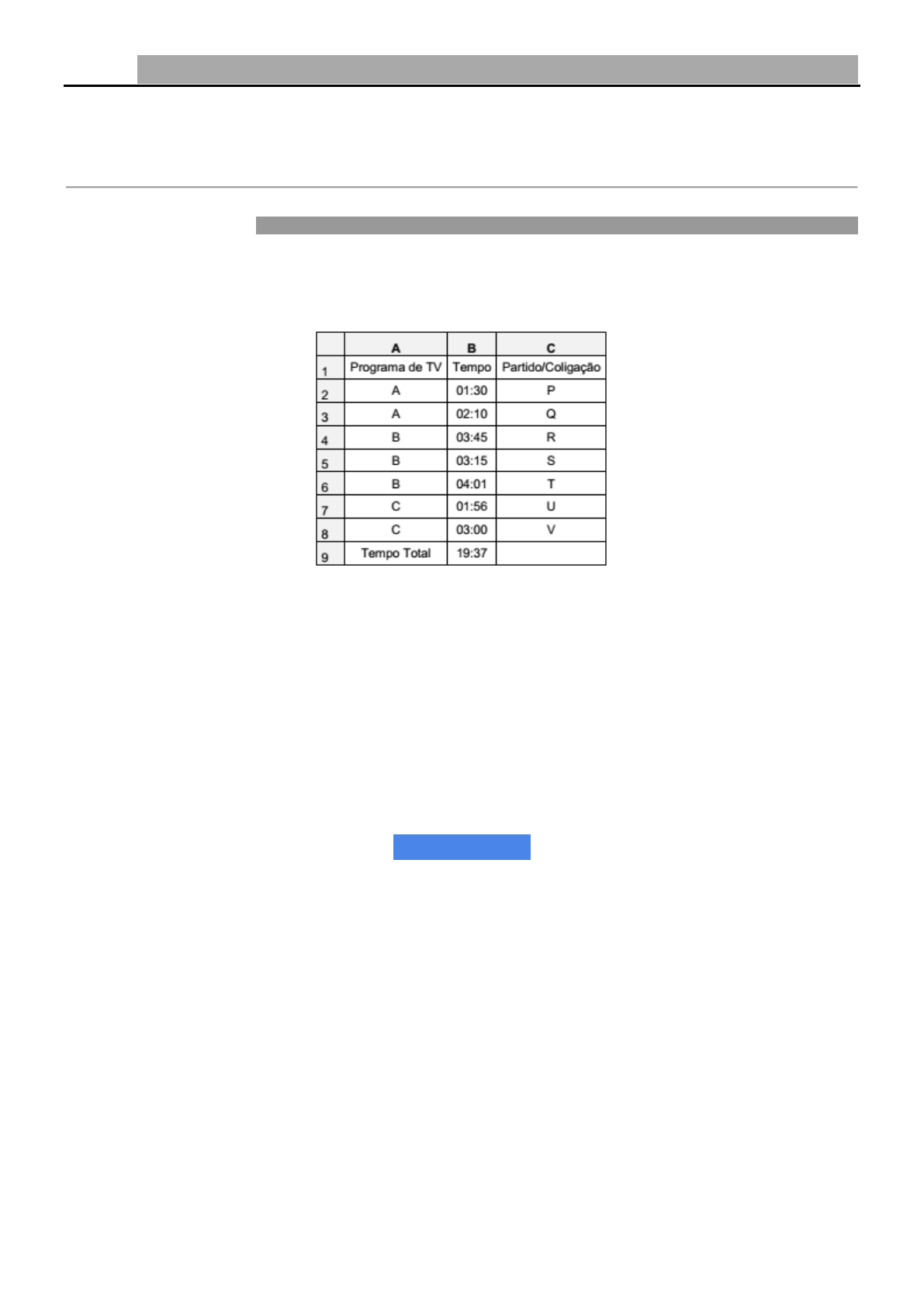 Dominando Informática Para Concursos: 300 Questões Comentadas dos Assuntos mais Cobrados em Provas Capítulo #03 – Microsoft Office: Word – Excel – PowerPoint 107 e) [ERRADO] =A1,A21 não é uma sintaxe permitida no Excel. Ano: 2017 Banca: FCC Órgão: TRE-SP Prova: Técnico Judiciário – Área Administrativa Questão 116. Considere, por hipótese, a planilha abaixo, digitada no Microsoft Excel 2013 em português. Na célula B9, para somar o intervalo de células de B2 até B8, foi utilizada a fórmula a) =SOMATEMPO(B2:B8) b) =SOMAT(B2;B8) c) =SOMATEMP(B2:B8) d) =SOMA(B2:B8) e) =SOMA(TEMPO(B2:B8)) * * * * * RESPOSTA * * * * * a) [ERRADO] a função SOMATEMPO não existe no Excel. b) [ERRADO] a função SOMAT não existe no Excel. c) [ERRADO] a função SOMATEMP não existe no Excel. d) [CERTO] a função SOMA também pode ser usada para somar tempo e seria a opção correta para essa questão.