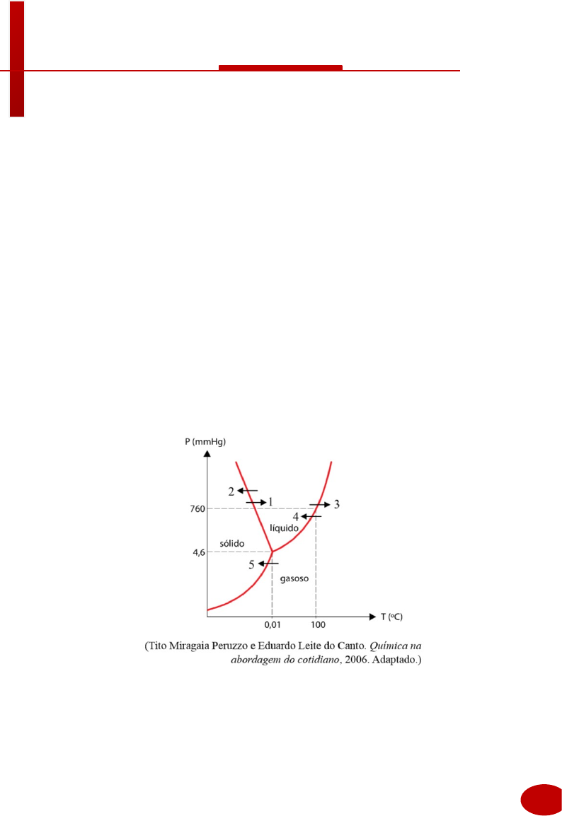 118 BANCO DE QUESTO ES Farlei Roberto Mazzarioli www.farlei.net A alternativa que melhor representa as etapas do processo de liofilização, na ordem descrita, é a) 4 e 1. b) 2 e 1. c) 2 e 3. d) 1 e 3. e) 5 e 3. Questão. (Unesp) Entre 6 e 23 de fevereiro aconteceram os Jogos Olímpicos de Inverno de 2014. Dentre as diversas modalidades esportivas, o curling é um jogo disputado entre duas equipes sobre uma pista de gelo, seu objetivo consiste em fazer com que uma pedra de granito em forma de disco fique o mais próximo de um alvo circular. Vassouras são utilizadas pelas equipes para varrer a superfície do gelo na frente da pedra, de modo a influenciar tanto sua direção como sua velocidade. A intensidade da fricção e a pressão aplicada pelos atletas durante o processo de varredura podem fazer com que a velocidade da pedra mude em até 20% devido à formação de uma película de água líquida entre a pedra e a pista. O gráfico apresenta o diagrama de fases. Com base nas informações constantes no texto e no gráfico, a seta que representa corretamente a transformação promovida pela varredura é a de número a) 3. b) 2. c) 4.