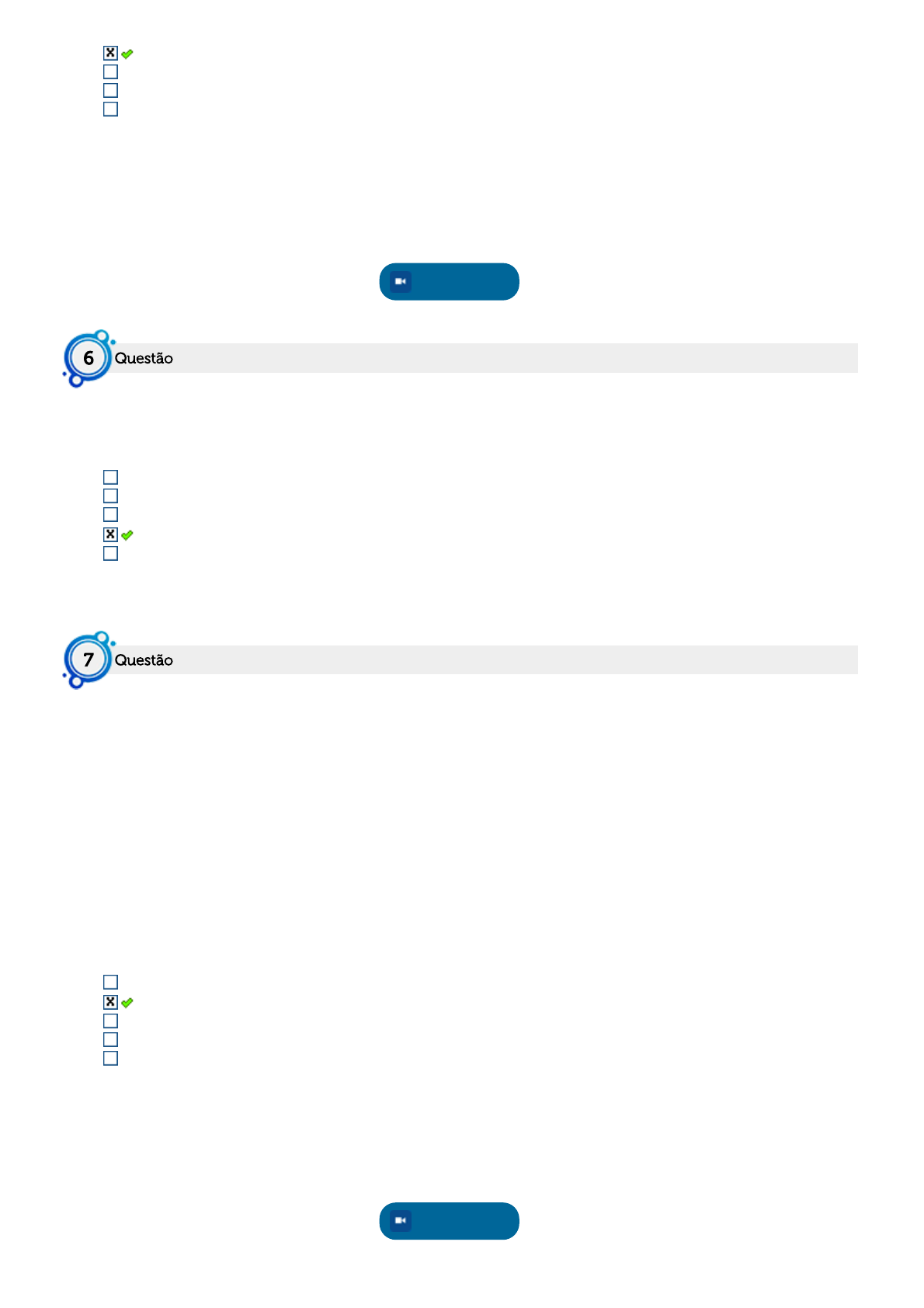 21/06/2021 EPS https://simulado.estacio.br/alunos/ 3/4 V, F, F, V F, V, F, V V, F, F, F F, V, V, F Respondido em 02/05/2021 02:30:51 Explicação: O segundo item é falso porque HTML é uma linguagem de formatação. O terceiro item é falso porque ao navegador a tarefa de trazer a imagem do servidor e exibi-la na página. Gabarito Comentado A Internet oferece um conjunto de tecnologias disponível universalmente para o comércio eletrônico. Esse conjunto pode ser usado para criar novos canais de marketing, vendas e suporte, proporcionados por algumas categorias, sendo uma delas a C2C, que significa: Comércio empresa- consumidor Comércio empresa-empresa Comércio móvel Comércio consumidor-consumidor Comércio fornecedor-consumidor Respondido em 02/05/2021 02:32:19 Java é uma linguagem de programação (desenvolvida por uma pequena equipe de pessoas na Sun Microsystems) que, inicialmente, foi criada com o objetivo de integrar equipamentos eletrodomésticos, mas que tornou-se popular por seu uso na internet. Hoje em dia, vemos aplicações escritas em Java rodando em navegadores Web, mainframe, celulares, palmtops e em sistemas operacionais. É uma referência em linguagem de programação no contexto de desenvolvimento de software. Analise cada item abaixo, classificando-os como V (verdadeiro) ou F (falso). I. Concebida para desenvolver software orientado ao objetivo. Desta forma, implementa todas as características e funcionalidades da orientação ao objeto, tais como: conceito de classe, herança e todos os tipos de polimorfismo. II. Portabilidade, ou seja, devido a sua concepção, Java permite que uma aplicação desenvolvida em ambiente Linux, por exemplo, possa ser executada em máquinas com ambiente Windows. III. Tal portabilidade pode ser não só no sistema operacional, mas também em diferentes plataformas de hardware. IV. Facilita o desenvolvimento de aplicações em rede, disponibilizando recursos que cooperem com protocolos TCP/IP, HTTP e FTP, por exemplo. Suporta aplicações concorrentes, como implementação de multithreads e monitores. Assinale a única opção correta que caracteriza a correta classificação em Verdadeiro ou Falso de cada questão. I-V; II-V; III-F; IV-V I-V; II-V; III-V; IV-V I-F; II-F; III-V; IV-F I-V; II-F; III-F; IV-V I-V; II-F; III-V; IV-F Respondido em 02/05/2021 02:33:16 Explicação: As quatro são verdadeiras porque são as principais características dessa linguagem. Orientada a objeto, portabilidade, aplicações em rede e aplicações concorrentes. Gabarito Comentado Questão6 Questão7