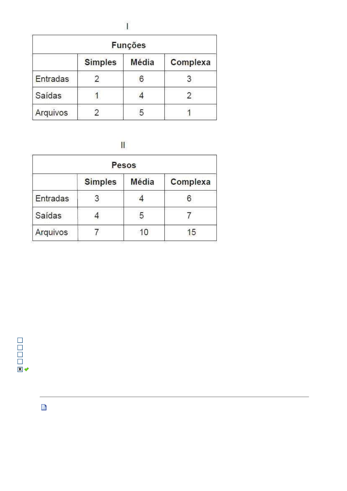 2/7/2014 BDQ Prova file:///G:/Acad%EAmico/Est%E1cio%20de%20S%E1/3o%20Semestre/Processo%20de%20Desenvolvimento%20de%20Software/Material%20Extra/Simula… 4/5 Assumindo-se que a produtividade média de uma equipe é de 8 horas por ponto de função (não ajustados), o valor mais próximo do esforço total estimado, em horas, para o desenvolvimento das funcionalidades do sistema é : 1624 1072 1456 1528 1320 7a Questão (Ref.: 201304159917) Pontos: 1,0 / 1,0 Como forma de análise/levantamento de requisitos podemos utilizar várias técnicas. Cada item representa a descrição de uma técnica: => O analista se insere no dia a dia da empresa, de forma a entender o funcionamento na prática; => O analista verifica relatórios e outros impressos da empresa; => É excelente para projetos que necessitam discussão de várias áreas da empresa. Assinale a resposta que apresenta respectivamente as técnicas descritas.