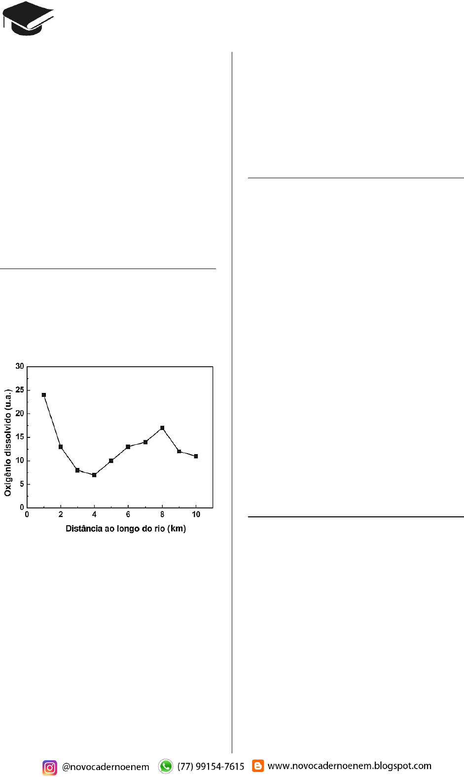 CADERNO BIOLOGIA ENEM 2009 a 2018 44 A) a proibição de se construir em áreas onde o solo e a água estão contaminados por agrotóxi- cos bastaria para impedir a contaminação das pessoas com metais pesados. B) o controle do consumo de peixes provenien- tes dos rios contaminados erradicaria a causa dos problemas de saúde. C) a população local deve consumir água filtra- da ou fervida, medidas importantes para a eli- minação de metais pesados. D) os estudos mais aprofundados de medidas que impeçam a descarga de agrotóxicos e as iniciativas relativas ao correto manejo do solo são indispensáveis ao caso. E) os processos naturais são suficientes para purificar o solo e a água contaminados por agro- tóxicos nessa região. Questão 136 (2011.2) O gráfico seguinte mostra os resultados obtidos para testes alternativos de DBO (Demanda Bio- química de Oxigênio), realizados por alunos de uma escola, com amostras de água coletadas em diferentes locais ao longo de um rio que corta a cidade habitada por eles. Uma justificativa aceitável para os baixos valo- res de oxigênio dissolvido encontrados em al- gumas amostras de água do rio é o fato de: A) a diminuição da demanda bioquímica de oxigênio decorrente da elevação do pH, como consequência do aporte de material de origem biológica, comprometer o uso do recurso hídrico nestas regiões. B) o rio poder apresentar variações naturais nas quantidades de sais inorgânicos dissolvidos que afetam a demanda bioquímica de oxigênio da água. C) as amostras terem sido coletadas em pontos onde há grande demanda de oxigênio, indican- do aporte de material orgânico no curso d’água, o que compromete a utilização do recurso hídri- co. D) a presença de áreas com baixas temperatu- ras no curso do rio poder ocasionar uma maior demanda de oxigênio, tornando o recurso hídri- co inapropriado para o uso nestes pontos. E) a presença de atividade humana nos arredo- res do rio, associada ao uso inadequado do recurso hídrico, ocasionar diminuição na de- manda bioquímica de oxigênio nas amostras analisadas. Questão 137 (2011.2) A recapitulação é uma ideia audaciosa e influen- te, associada especialmente a Ernst Haeckel. Segundo a teoria da recapitulação, as fases de desenvolvimento de um organismo (ontogenia) correspondem à história de sua espécie (filoge- nia). A aparência transitória de estruturas seme- lhantes a fendas branquiais no desenvolvimento de humanos e outros mamíferos é um exemplo notável. Os mamíferos evoluíram de um estágio ancestral de peixe e suas fendas branquiais embrionárias recapitulam tal ancestralidade. (RIDLEY, M. Evolução. Porto Alegre: Artmed, 2006 - adaptado) Com base nos pressupostos da teoria da recapi- tulação, a assertiva que melhor a resume é: A) “A vida recapitula a morte dos antepassa- dos”. B) “A teoria da vida recapitula a história da vi- da”. C) “A ontogenia consiste na formação das brân- quias dos peixes”. D) “A ontogenia recapitula a filogenia”. E) “A aparência transitória é um exemplo notá- vel”. Questão 138 (2011.2) Com a crescente demanda de energia elétrica, decorrente do modo de vida da sociedade mo- derna, tornou-se necessário que mais de uma fonte de energia seja estudada e aplicada, le- vando-se em conta os impactos ambientais e sociais a serem gerados em curto e longo pra- zo. Com isso, o uso da energia nuclear tem sido muito debatido no mundo. O questionamento principal é se valerá a pena construir centrais de produção nuclear ou é preferível investir em outros tipos de energias que sejam renováveis. (Disponível em: http://www.comciencia.br. Acesso em: 27 jan. 2009 - adaptado) Um argumento favorável ao uso da energia nuclear é o fato de: A) ser uma energia limpa embora não seja re- novável.