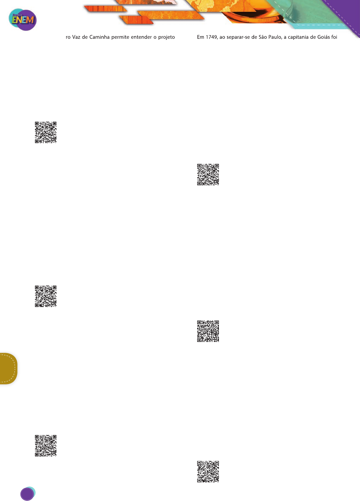 A carta de Pero Vaz de Caminha permite entender o projeto colonizador para a nova terra. Nesse trecho, o relato enfatiza o seguinte objetivo: A) valorizar a catequese a ser realizada sobre os povos nativos. B) descrever a cultura local para enaltecer a prosperidade portuguesa. C) transmitir o conhecimento dos indígenas sobre o potencial econômico existente. D) realçar a pobreza dos habitantes nativos para demarcar a superioridade europeia. E) criticar o modo de vida dos povos autóctones para eviden- ciar a ausência de trabalho. 31. (Enem-2012) Em um engenho sois imitadores de Cristo crucificado porque padeceis em um modo muito semelhante o que o mesmo Senhor padeceu na sua cruz e em toda a sua paixão. A sua cruz foi composta de dois madeiros, e a vossa em um engenho é de três. Também ali não faltaram as canas, porque duas vezes entraram na Paixão: uma vez servindo para o cetro de escárnio, e outra vez para a esponja em que lhe deram o fel. A Paixão de Cristo parte foi de noite sem dormir, parte foi de dia sem descansar, e tais são as vossas noites e os vossos dias. Cristo despido, e vós despidos; Cristo sem comer, e vós famintos; Cristo em tudo maltratado, e vós maltratados em tudo. Os ferros, as prisões, os açoites, as chagas, os nomes afrontosos, de tudo isto se compõe a vossa imitação, que, se for acompanhada de paciência, também terá merecimento de martírio. (VIEIRA, A. Sermões. Tomo XI. Porto: Lello & Irmão, 1951. Adaptado.) O trecho do sermão do Padre Antônio Vieira estabelece uma relação entre a Paixão de Cristo e A) a atividade dos comerciantes de açúcar nos portos brasileiros. B) a função dos mestres de açúcar durante a safra de cana. C) o sofrimento dos jesuítas na conversão dos ameríndios. D) o papel dos senhores na administração dos engenhos. E) o trabalho dos escravos na produção de açúcar. 32. (Enem-2012) Próximo da Igreja dedicada a São Gonçalo nos deparamos com uma impressionante multidão que dançava ao som de suas violas. Tão logo viram o Vice-Rei, cercaram-no e o obrigaram a dançar e pular, exercício violento e pouco apropriado tanto para sua idade quanto posição. Tivemos nós mesmos que entrar na dança, por bem ou por mal, e não deixou de ser interessante ver numa igreja padres, mulheres, frades, cavalheiros e escravos a dançar e pular misturados, e a gritar a plenos pulmões “Viva São Gonçalo do Amarante”. (Barbinais, Le Gentil. Noveau Voyage autour du monde. Apud: TINHORÃO, J. R. As festas no Brasil Colonial. São Paulo: Ed. 34, 2000. Adaptado.) O viajante francês, ao descrever suas impressões sobre uma festa ocorrida em Salvador, em 1717, demonstra dificuldade em entendê-la, porque, como outras manifestações religiosas do período colonial, ela A) seguia os preceitos advindos da hierarquia católica romana. B) demarcava a submissão do povo à autoridade constituída. C) definia o pertencimento dos padres às camadas populares. D) afirmava um sentido comunitário de partilha da devoção. E) harmonizava as relações sociais entre escravos. 33. (Enem-2012) A experiência que tenho de lidar com aldeias de diversas nações me tem feito ver, que nunca índio fez grande confiança de branco e, se isto sucede com os que estão já civilizados, como não sucederá o mesmo com esses que estão ainda brutos. (NORONHA, M. Carta a J. Caldeira Brant. 2 jan. 1751. Apud CHAIM, M. M. Aldeamentos indígenas (Goiás: 1749-1811). São Paulo: Nobel, Brasília: INL, 1983. Adaptado.) Em 1749, ao separar-se de São Paulo, a capitania de Goiás foi governada por D. Marcos de Noronha, que atendeu às diretrizes da política indigenista pombalina que incentivava a criação de aldeamentos em função A) das constantes rebeliões indígenas contra os brancos colo- nizadores, que ameaçavam a produção de ouro nas regiões mineradoras. B) da propagação de doenças originadas do contato com os colonizadores, que dizimaram boa parte da população indígena. C) do empenho das ordens religiosas em proteger o indígena da exploração, o que garantiu a sua supremacia na admi- nistração colonial. D) da política racista da Coroa Portuguesa, contrária à misci- genação, que organizava a sociedade em uma hierarquia dominada pelos brancos. E) da necessidade de controle dos brancos sobre a população indígena, objetivando sua adaptação às exigências do tra- balho regular. 34. (Enem-2011) Em geral, os nossos tupinambás ficam bem admirados ao ver os franceses e os outros dos países longínquos terem tanto trabalho para buscar o seu arabotã, isto é, pau-brasil. Houve uma vez um ancião da tribo que me fez esta pergunta: “Por que vindes vós outros, mairs e perós (franceses e portugueses), buscar lenha de tão longe para vos aquecer? Não tendes madeira em vossa terra?” (LÉRY, J. Viagem à Terra do Brasil. In: FERNANDES, F. Mudanças sociais no Brasil. São Paulo: Difel, 1974) O viajante francês Jean de Léry (1534-1611) reproduz um diálogo travado, em 1557, com um ancião tupinambá, o qual demons- tra uma diferença entre a sociedade europeia e a indígena no sentido A) do destino dado ao produto do trabalho nos seus sistemas culturais. B) da preocupação com a preservação dos recursos ambientais. C) do interesse de ambas em uma exploração comercial mais lucrativa do pau-brasil. D) da curiosidade, reverência e abertura cultural recíprocas. E) da preocupação com o armazenamento de madeira para os períodos de inverno. 35. (Enem-2011) O açúcar e suas técnicas de produção foram levados à Europa pelos árabes no século VIII, durante a Idade Média, mas foi principalmente a partir das Cruzadas (séculos XI e XIII) que a sua pro- cura foi aumentando. Nessa época passou a ser importado do Oriente Médio e produzido em pequena escala no sul da Itália, mas continuou a ser um produto de luxo, extremamente caro, chegando a figurar nos dotes de princesas casadoiras. (CAMPOS, R. Grandeza do Brasil n