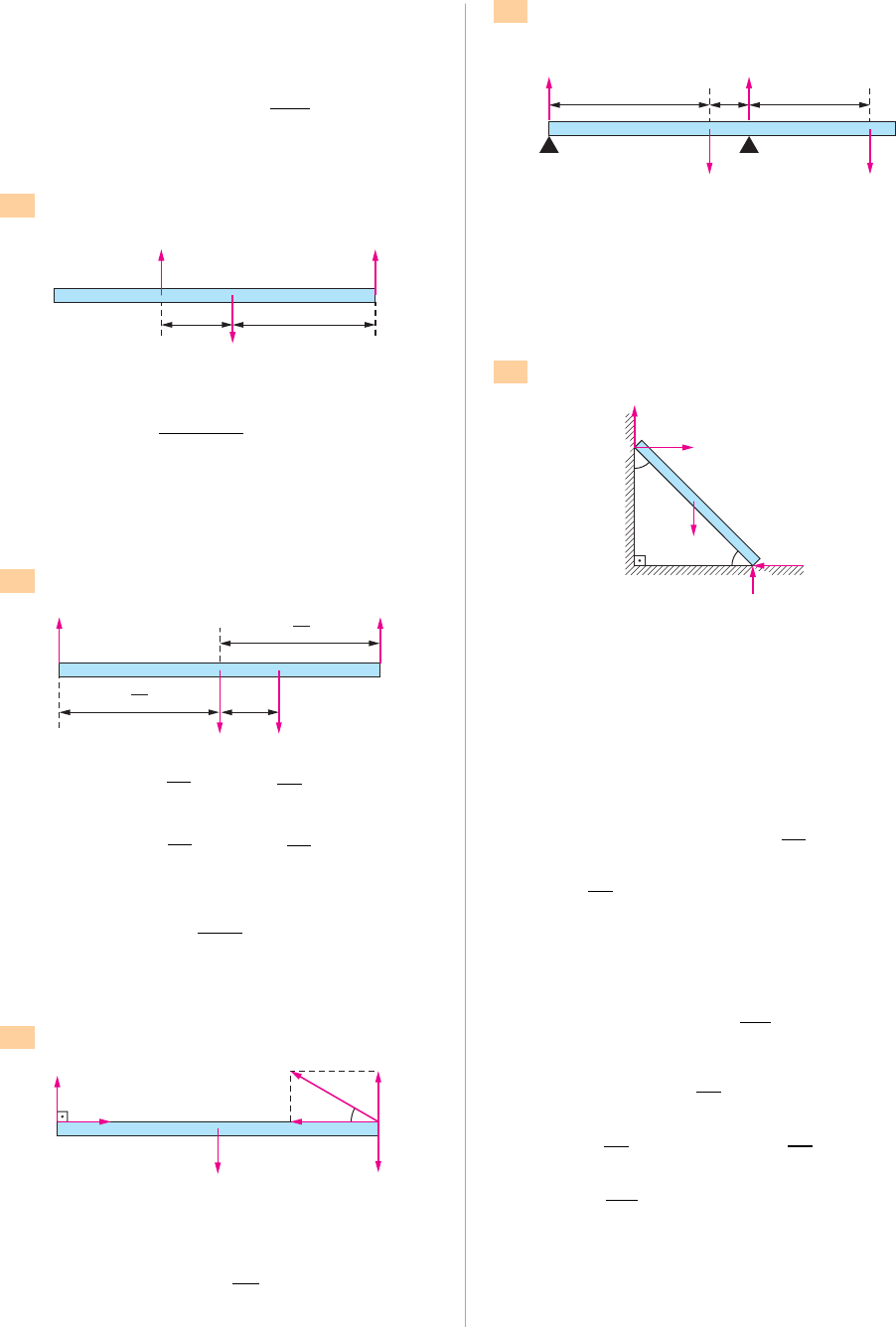 194 RESOLUÇÃO No valor máximo de Px, a barra começa a girar em tor- no da haste 1; logo, N2 � 0. (100 � Px) � 0,4 � 120 � 0,3 � 100 � 1 40 � 0,4 Px � 36 � 100 ⇒ Px � 96 0,4 Px � 240 N ⇒ mx � 24 kg 256 Alternativa d. 259 Alternativa e. O fato ocorre com o menino à direita de B. T1 ←� T2 ←� P ←� 0,25 m 0,50 m Pb � 2 � 2 x FN A P Pb Tx TyT P 30°F2 F1 GO Σ M1 → � 0 ⇒ T2 � 0,75 � P � 0,25 T2 � 30 5� 0,2 0,75 � 10 N Σ F → � 0 ⇒ T1 � P � T2 T1 � 30 � 10 � 20 N 257 Alternativa c. ΣMA � 0 ⇒ �Pb � � 2 � P x � � 2 ⎛ ⎝ ⎜ ⎞ ⎠ ⎟ � F � � � 0 �30 � � 2 � 20 x � � 2 ⎛ ⎝ ⎜ ⎞ ⎠ ⎟ � F � � � 0 �15 � � 20 x � 10 � � F � � � 0 F � 25 � 20x � Portanto, F � 25 N. 258 Alternativa e. ΣM0 � 0 ⇒ �Pb � 0,5 � P � 1 � Ty � 1 � 0 �1 � 102 � 0,5 � 2 � 102 � T � sen 30° � 0 �50 � 200 � T 2 � 0 T � 500 N A B NA ←� NB ←� Pv ←� PM ←� 4 m 1 m x Na iminência da rotação, NA � 0. Σ MB → � 0 ⇒ Pv � 1 � NB � 0 � NA � 5 � PM � x 600 � 1 � 200 � x x � 3 m 260 Alternativa b. N2 ←� N1 ←� fat ←� fat ←� 45° 45° B A Se a barra está na iminência de escorregar, as forças de atrito terão intensidades dadas por: Fat � � N1 (1) e fat � � N2 (2) Para que a resultante das forças seja nula, devem ter: N2 � Fat (3) e N1 � fat � P (4) Para que o momento resultante, em relação ao ponto B seja nulo devemos ter: fat � L � sen 45° � N2L cos 45° � P L 2 cos 45° fat � N2 � P 2 (5) De (1) e (3): �N1 � N2 De (2) e (4): N1 � �N2 � P N1 � �2 N1 � P ⇒ (1 � �2) � P N1 (I) De (2) e (5): �N2 � N2 � P 2 (� � 1) N2 � P 2 ⇒ (� � 1) � N1 � P 2 2(� � 1) � � P N1 (II) Comparando (I) e (II): 1 � �2 � 2(� � 1) � 1 � �2 � 2�2 � 2�