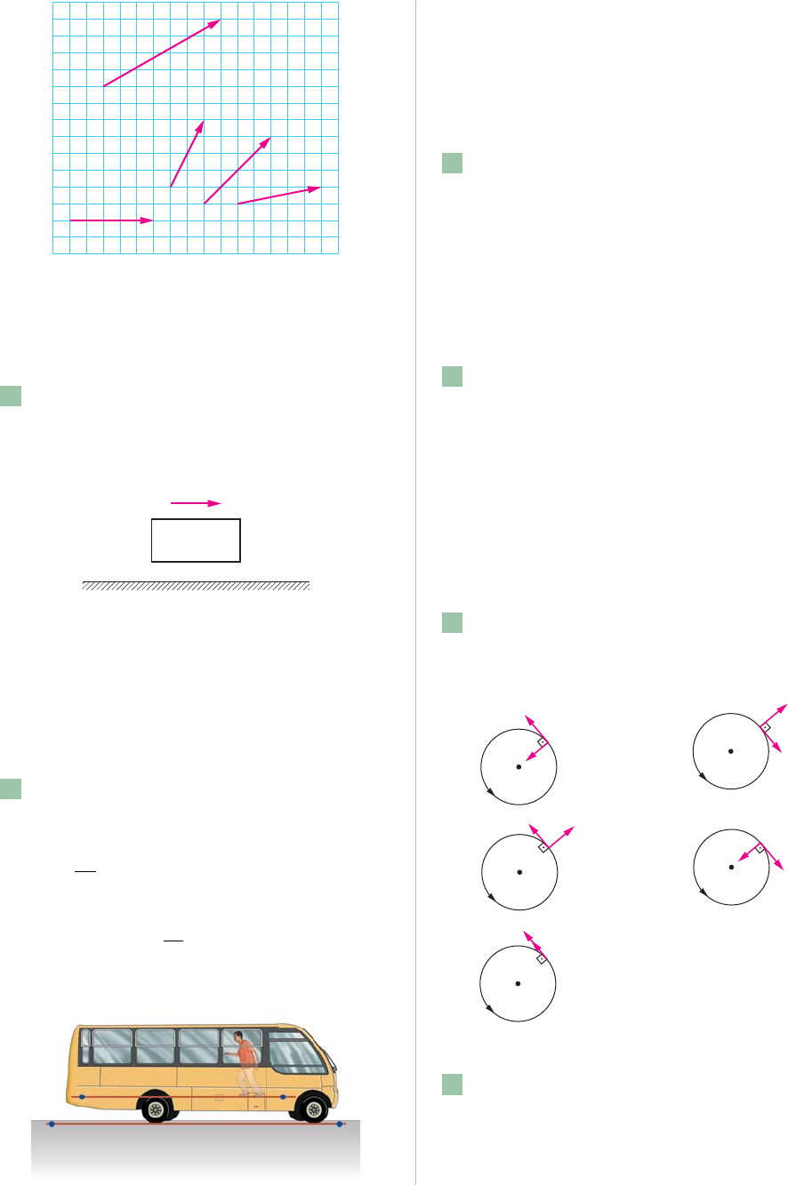 13 a) X a b → → → � � d) X b c → → → � � b) X a c → → → � � e) X b d → → → � � c) X a d → → → � � 62 Na figura, o retângulo representa a janela de um trem que se move com velocidade constante e não nula, enquanto a seta indica o sentido de movimen- to do trem em relação ao solo. Dentro do trem, um passageiro sentado nota que começa a chover. Vistas por um observador em re- pouso em relação ao solo terrestre, as gotas da chu- va caem verticalmente. Represente vetorialmente a velocidade das gotas de chuva para o passageiro que se encontra sentado. 63 (MACK-SP) Num mesmo plano vertical, perpen- dicular à rua, temos os segmentos de reta AB e PQ, paralelos entre si. Um ônibus se desloca com veloci- dade constante de módulo v1, em relação à rua, ao longo de AB, no sentido de A para B, enquanto um passageiro se desloca no interior do ônibus, com velocidade constante de módulo v2, em relação ao veículo, ao longo de PQ no sentido de P para Q. Sendo v1 � v2, o módulo da velocidade do passagei- ro em relação ao ponto B da rua é: a) v1 � v2 d) v1 b) v1 � v2 e) v2 c) v2 � v1 64 (FURRN) Um barco, em águas paradas, desen- volve uma velocidade de 7 m/s. Esse barco vai cru- zar um rio cuja correnteza tem velocidade 4 m/s, paralela às margens. Se o barco cruza o rio perpen- dicularmente à correnteza, sua velocidade em rela- ção às margens, em metros por segundo é, aproxi- madamente: a) 11 b) 8 c) 6 d) 5 e) 3 65 (FM-Itajubá-MG) Um barco atravessa um rio se- guindo a menor distância entre as margens, que são paralelas. Sabendo que a largura do rio é de 2,0 km, a travessia é feita em 15 min e a velocidade da cor- renteza é 6,0 km/h, podemos afirmar que o módulo da velocidade do barco em relação à água é: a) 2,0 km/h d) 10 km/h b) 6,0 km/h e) 14 km/h c) 8,0 km/h 66 (UFOP-MG) Os vetores velocidade ( v→ ) e acelera- ção ( a → ) de uma partícula em movimento circular uni- forme, no sentido indicado, estão melhor represen- tados na figura: a) d) b) e) c) 67 (Fiube-MG) Na figura está representada a traje- tória de um móvel que vai do ponto P ao ponto Q em 5 s. O módulo de sua velocidade vetorial média, em metros por segundo e nesse intervalo de tempo, é igual a: X ←� b ←� c ←� d ←� a ←� v ←� a ←� v ←� a ←� v ←� a ←� v ←� a ←� v ←� a ←� A B Q P