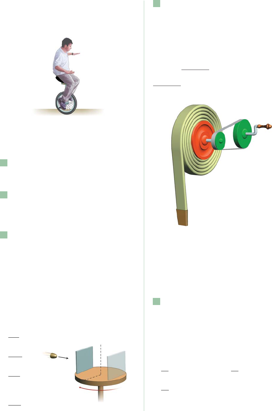17 89(Unirio-RJ) O mecanismo apresentado na figura é utilizado para enrolar mangueiras após terem sido usadas no combate a incêndios. A mangueira é enrolada sobre si mesma, camada sobre camada, formando um carretel cada vez mais espesso. Con- siderando ser o diâmetro da polia A maior que o diâmetro da polia B, quando giramos a manivela M com velocidade constante, verificamos que a po- lia B gira que a polia A, enquanto a extremidade P da mangueira sobe com movimento . Preenche corretamente as lacunas acima a opção: (UERJ) Utilize os dados a seguir para resolver as ques- tões de números 86 e 87. Uma das atrações típicas do circo é o equilibrista sobre monociclo. a) mais rapidamente – aceleração b) mais rapidamente – uniforme c) com a mesma velocidade – uniforme d) mais lentamente – uniforme e) mais lentamente – acelerado 90 (Fuvest-SP) Uma criança montada em um velocí- pede se desloca em trajetória retilínea, com veloci- dade constante em relação ao chão. A roda diantei- ra descreve uma volta completa em um segundo. O raio da roda dianteira vale 24 cm e o das traseiras 16 cm. Podemos afirmar que as rodas traseiras do velocípede completam uma volta em, aproximada- mente: a) 1 2 s d) 3 2 s b) 2 3 s e) 2 s c) 1 s O raio da roda do monociclo utilizado é igual a 20 cm, e o movimento do equilibrista é retilíneo. O equilibrista percorre, no início de sua apresentação, uma distância de 24 metros. 86 Determine o número de pedaladas, por segun- do, necessárias para que ele percorra essa distância em 30 s, considerando o movimento uniforme. 87 Em outro momento, o monociclo começa a se mover a partir do repouso com aceleração constan- te de 0,50 m/s2. Calcule a velocidade média do equilibrista no trajeto percorrido nos primeiros 6,0 s. 88 (Fuvest-SP) Um disco de raio r gira com velocida- de angular constante. Na borda do disco, está presa uma placa fina de material facilmente perfurável. Um projétil é disparado com velocidade v em direção ao eixo do disco, conforme mostra a figura, e fura a placa no ponto A. Enquanto o pro- jétil prossegue sua trajetória sobre o disco, a placa gira meia circunferência, de forma que o projétil atravessa mais uma vez o mesmo orifício que havia perfurado. Considere a velocidade do projétil cons- tante e sua trajetória retilínea. O módulo da veloci- dade v do projétil é: a) r b) 2 r c) r 2 d) r e) r v → w r P B M A