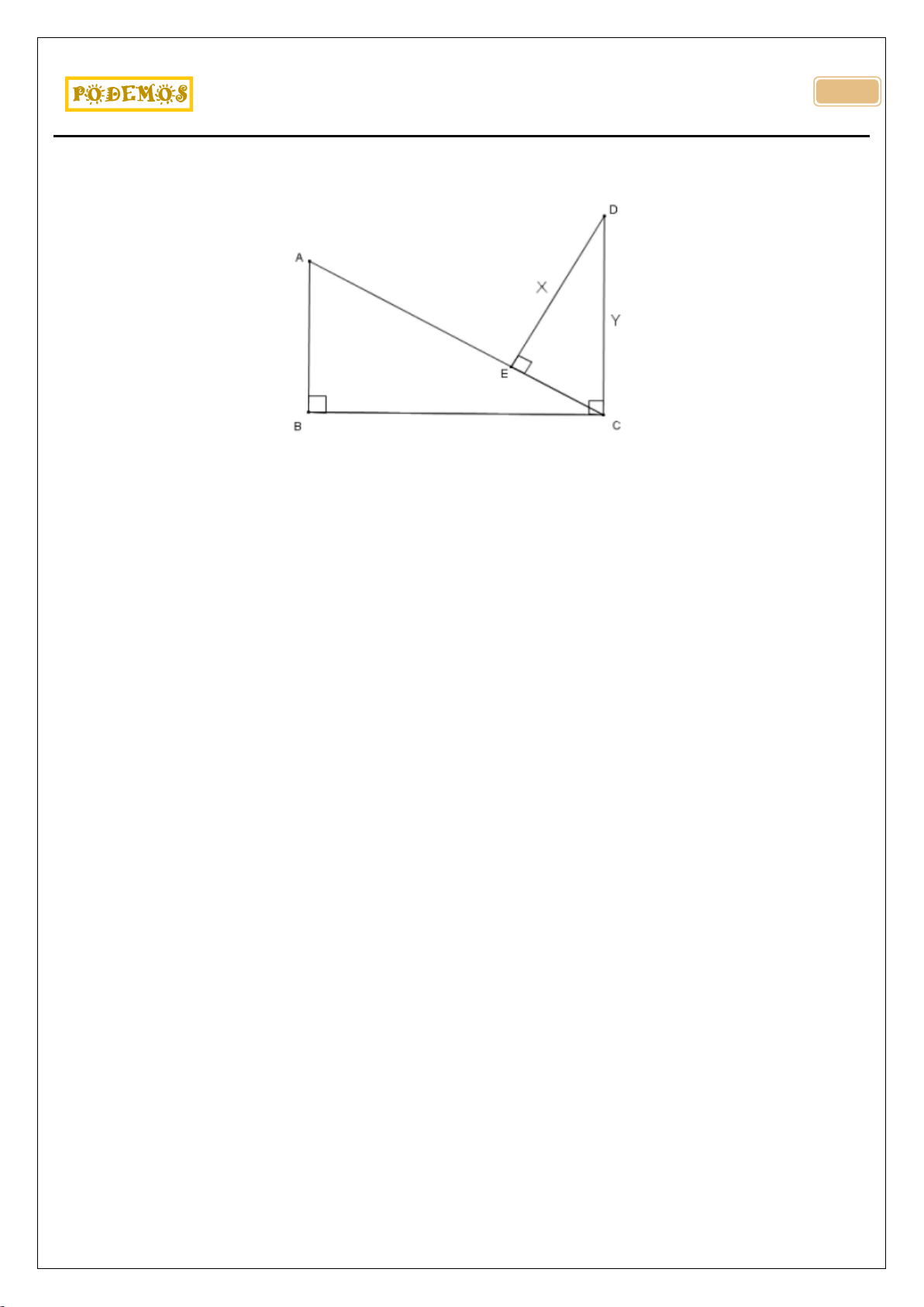 CONCURSO TAE – 2012 – ENSINO MÉDIO TÉCNICO Prof. Otávio Luciano Camargo Sales de Magalhães . 429 7)(Concurso Público da UFJF - MG - Técnico-Administrativo em Educação TAE Juiz de Fora / Ensino Médio Técnico - 2012 - Banca COPESE/FGV) Na figura, sabe-se que AB = 8 cm, BC = 15 cm, AC = 17 cm e EC = 4 cm, x = DE e y = CD. Então, o valor de x + y é: a) 13 cm. b) 14 cm. c) 15 cm. d) 16 cm. e) 17 cm. 8)(Concurso Público da UFJF - MG - Técnico-Administrativo em Educação TAE Juiz de Fora / Ensino Médio Técnico - 2012 - Banca COPESE/FGV) Uma quantia de R$ 6000,00, aplicada a uma taxa de juros simples de 4 % ao mês, e outra, de R$ 4000,00, aplicada a uma taxa de juros simples de 6 % ao mês, renderão, juntas, R$ 11520,00 de juros em: a) 2 anos e 4 meses. b) 36 meses. c) 2,4 anos. d) 22 meses. e) 2 anos 9)(Concurso Público da UFJF - MG - Técnico-Administrativo em Educação TAE Juiz de Fora / Ensino Médio Técnico - 2012 - Banca COPESE/FGV) A prova de rua de uma gincana de escola seguia a regra de que cada corredor, saindo de uma mesma linha de largada, deveria correr até o primeiro poste da rua, pegar uma bandeira e retornar à origem (linha de largada). Na sequência, correr até o segundo poste da rua para pegar a segunda bandeira e correr de volta até a origem. Deixando a segunda bandeira ele deveria voltar a correr em direção ao terceiro poste e retornar novamente à origem. O processo deveria ser repetido até o décimo poste. Ao final da prova cada corredor deveria pegar um total de dez bandeiras, em dez postes. Considerando que a distância entre os postes é de 5 m e que o primeiro poste está a 3 m da linha de largada, pergunta-se: quantos metros percorrerá cada corredor que cumprir a prova toda? a) 103 m b) 112 m c) 510 m d) 550 m e) 553 m