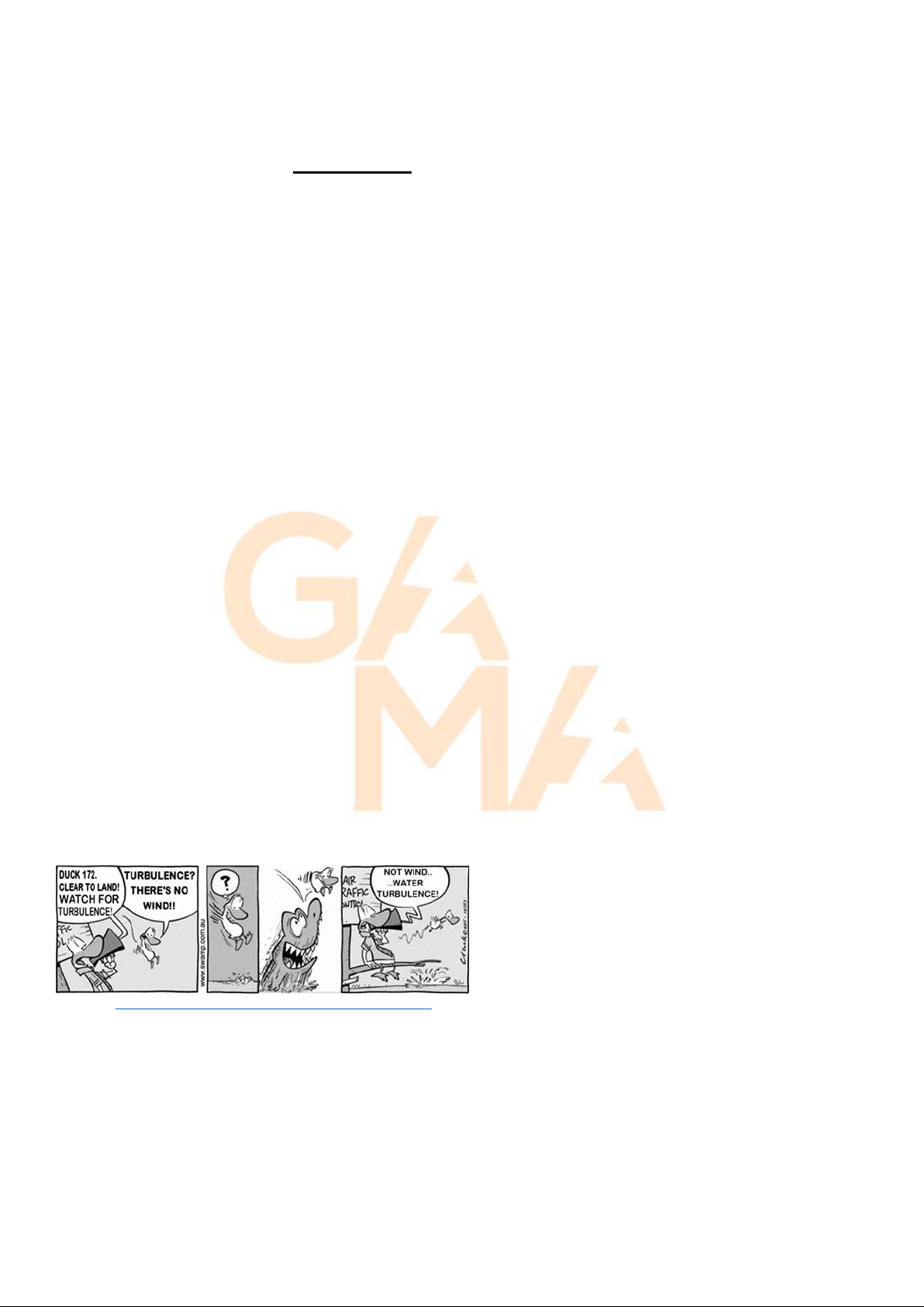 Commission recommended a third runway at Heathrow as 10 the preferred plan for London airport expansion. (Adapted from www.theguardian/ environment. Acessed on 01/12/2015) 38 – Heathrow airport already has . a) 1 runway b) 2 runways c) 3 runways d) 30 runways 39 – Choose the synonym in the context for the underlined word in the title, and its correct part of speech. a) easygoing – adverb b) tough – adjective c) fear – adjective d) severely – adverb. 40 – Write true (T) or false (F), according to the text: ( ) The expansion of Heathrow airport ought to be blocked until the busiest airport complies with key environmental conditions. ( ) The expansion of Heathrow should begin once Europe’s busiest airport may accept other conditions for weather. ( ) Europe’s busiest airport can accept this change under two conditions: better air quality and lower noise levels. ( ) Heathrow airport can choose the best alternative for environmental conditions. a) T – T – F – F b) F – F – T – F c) T – F – F – F d) F – F – T – T Read the cartoon and answer questions 41 and 42. Taken from http://www.swamp.com.au/archives. Accessed on 26/10/2015 41 – Choose the correct alternative, according to the cartoon. a) The flying duck understood there was turbulence, because the winds were strong. b) The air traffic controller duck didn’t have time to warn about turbulence. c) The water in movement caused the wind turbulence. d) The water turbulence was caused by the alligator. http://www.swamp.com.au/archives.%20Accessed%20on%2026/10/2015