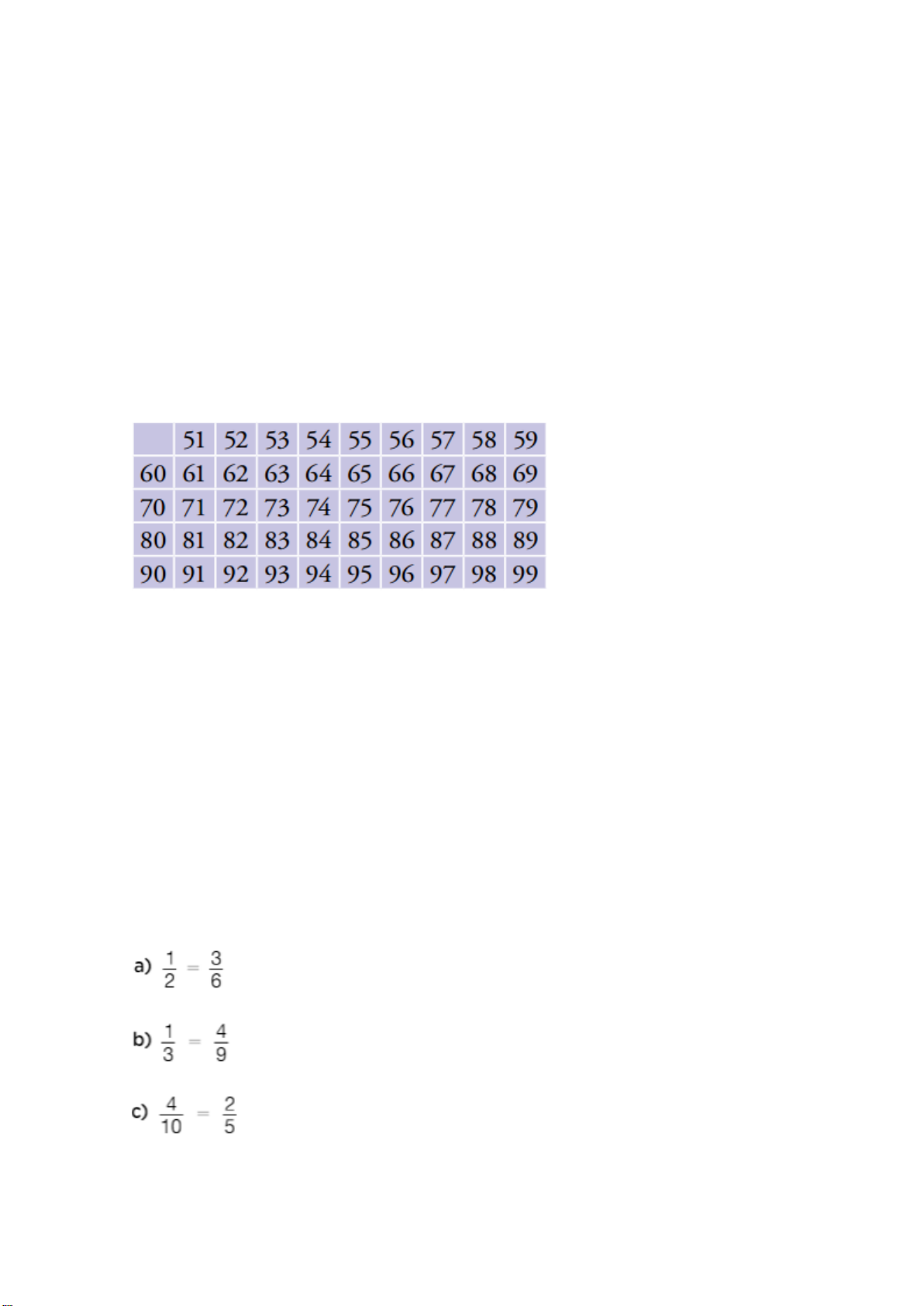 Matemática - Unidade 4 - Capítulo 10 - Decomposição em fatores primos - Exercícios (pg. 127 - 128) Questão 322 Você conheceu os números primos até 50. a) Quais são eles? b) Agora, copie em seu caderno o quadro com os números naturais maiores que 50 e menores que 100. c) Descubra os números primos existentes entre 50 e 100, procedendo da seguinte maneira: • Primeiro, elimine os números divisíveis por 2, 3, 5 e 7. • Depois, verifique se cada número que sobrou é primo ou não. Matemática - Unidade 4 - Capítulo 9 - Números primos - Exercícios Questão 323 Classifique como certo ou errado. Matemática - Unidade 5 - Capítulo 15 - Frações equivalentes - Exercícios Questão 324 Leia esta matéria, publicada na revista Superinteressante, e responda às perguntas a seguir. Quantas calorias equivalem a 1 quilo? Cerca de 8 mil. Essa é a quantidade extra de energia que você precisaria consumir para engordar 1 quilo. E não tem que ser de uma vez. Um homem adulto, que gasta cerca de 2 500 calorias por dia para manter o corpo funcionando, teria que comer o dobro do que precisa por cerca de 3 dias. Ou 1 000 calorias extras diárias por uma semana. Parece muito, mas alcançar essa marca é mais fácil que parece (veja a simulação abaixo). Difícil mesmo é perder esse mesmo 1 quilo. A lógica se mantém, só que, desta vez, você terá que economizar 8 mil calorias, descontadas da sua cota diária de comida. E, como não dá pra eliminar 1 000 calorias por dia da sua dieta, o caminho de volta vai ser bem mais demorado. Agora tudo faz sentido, não?