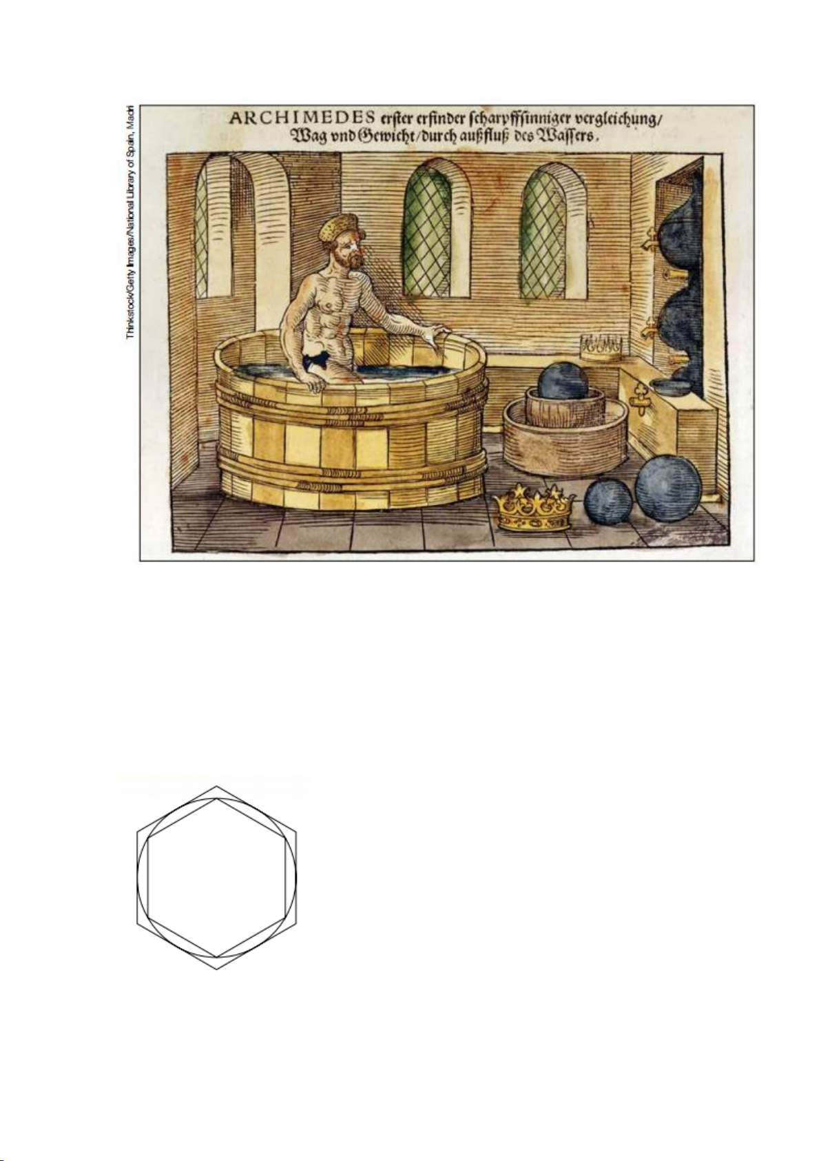 Foi em seus banhos que Arquimedes descobriu um princípio da hidrostática, o qual lhe permitiu desmascarar um ourives que fizera para o rei Hierão uma coroa jurando ser de ouro puro. Usando esse princípio – uma de suas muitas contribuições para o desenvolvimento das ciências –, Arquimedes provou que a coroa era feita de uma liga de ouro e prata. Para obter cientificamente uma aproximação de p, Arquimedes considerou, sucessivamente, os perímetros dos polígonos regulares de 6, 12, 24, 48 e 96 lados, inscritos em e circunscritos a uma circunferência. Os perímetros do hexágono inscrito e do circunscrito são fáceis de calcular em função do raio. A partir dos resultados obtidos, há fórmulas para obter o perímetro do dodecágono regular inscrito e do circunscrito. E assim por diante. Método de Arquimedes para o cálculo de p. O perímetro de um polígono regular inscrito é uma aproximação por falta do comprimento da circunferência, assim como o perímetro de cada polígono circunscrito é uma aproximação por excesso desse comprimento. Usando-se essas aproximações indefinidamente, de um lado por falta, e de outro por excesso, obtêm-se aproximações sucessivamente melhores do valor do comprimento da circunferência. E, dividindo-as pelo dobro do raio, encontram-se aproximações de p cada vez melhores. Foi assim que, depois de exaustivos cálculos, Arquimedes mostrou que p encontra-se entre 3,1408... e 3,1428... (em dígitos modernos). O método de Arquimedes foi explorado mais a fundo posteriormente por outros matemáticos. O holandês Ludolph von Ceulen (1540-1610) passou grande parte de sua vida calculando a aproximação de p até a 35ª casa decimal, e, para isso, teve de chegar até aos polígonos regulares de 262 lados. Em seu túmulo, sua esposa mandou gravar a aproximação obtida por ele: 3,14159265358979323846264338327950288 O símbolo p, para indicar a razão entre a circunferência e o diâmetro, foi usado pela primeira vez numa obra de 1706, do matemático inglês W. Jones (1675-1749), na qual ele deu, corretamente, as primeiras cem casas desse número. A notação p deriva, provavelmente, do fato de tratar-se da primeira letra da palavra “perímetro”, em grego. Sua adoção definitiva só se deu depois que o matemático suíço L. Euler (1707-1783) passou a usá-la com o sentido atual. Hoje, com métodos matemáticos mais sofisticados e com os modernos computadores, já se têm aproximações corretas de p com alguns bilhões de casas decimais. Certamente, as pesquisas atuais para obter aproximações cada vez melhores de p já não derivam de algum motivo prático, ligado diretamente ao uso desse número, mas sim da insaciável curiosidade do espírito humano. Sem falar na sua utilidade para a checagem de programas de computador. Que cidades-estado travaram as Guerras Púnicas? Em que época? Qual o envolvimento de Arquimedes com essa guerra? Matemática - Unidade 6 - Capítulo 23 - Área do círculo e de suas partes - Exercícios - Matemática no tempo: Explorando a leitura Questão 1952 Fatore completamente: a) 5a3 + 5 b) x5 + x2 c) m6 - 2m3 + 1 d) x6 - 1000000 e) x6 - 64