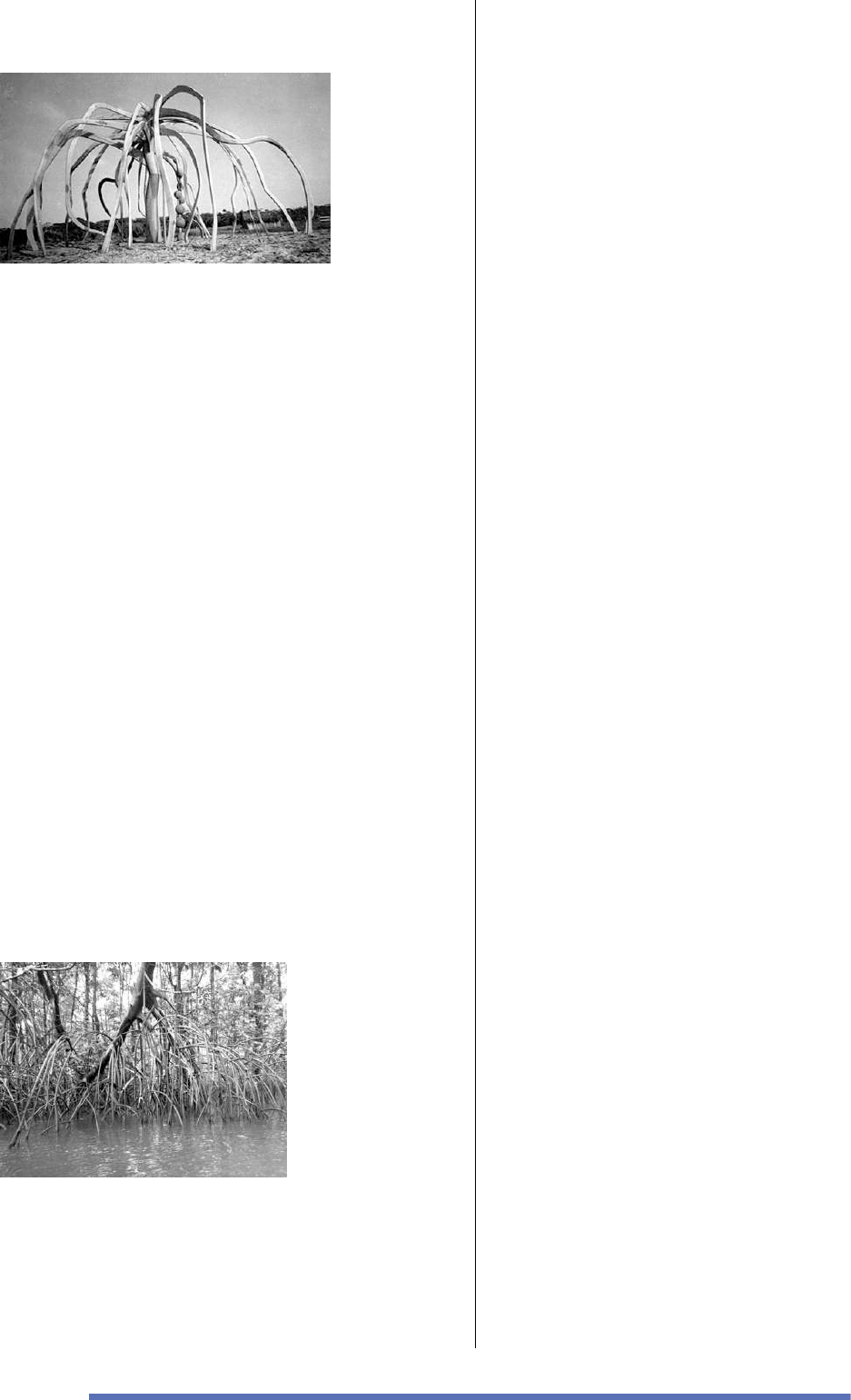 9 33 - (Uel) Analise a figura a seguir e responda à questão: Frans Krajcberg. A Flor do Mangue. Década de 1970. Madeira. 300 cm x 900 cm. Coleção do Artista. A obra A flor do mangue faz alusão às plantas de hábito arbóreo típicas do mangue. Com base nos conhecimentos sobre essas plantas, considere as afirmativas a seguir. I. Possuem raízes escoras como adaptação ao solo instável para a sustentação do vegetal. II. Suas raízes realizam trocas gasosas diretamente com o ambiente aéreo como adaptação a um solo pobre em oxigênio. III. Possuem raízes com baixo potencial osmótico de sucção celular, gastando energia para absorver água do solo salgado. IV. Suas raízes possuem orifícios, denominados pneumatódios para realizar a absorção e excreção de sais. Assinale a alternativa correta. a) Somente as afirmativas I e II são corretas. b) Somente as afirmativas I e III são corretas. c) Somente as afirmativas III e IV são corretas. d) Somente as afirmativas I, II e IV são corretas. e) Somente as afirmativas II, III e IV são corretas. 34 - (Uel) Analise a figura a seguir. Mangue no Rio Preguiças-Barreirinhas-MA. Com base na figura e nos conhecimentos sobre os manguezais, considere as afirmativas a seguir. I. São formados em ambientes de transição das águas fluviais para as águas oceânicas, nas zonas de contato entre terra e mar. II. Trata-se de um domínio morfoclimático que se desenvolve graças à biodiversidade ambiental que caracteriza as suas florestas. III. Sua fauna representa importante fonte de alimentos para o habitante, que depende deste ecossistema para extrair seu meio de subsistência. IV. A ausência de legislação de proteção aos manguezais resultou no seu desaparecimento em escala global. Assinale a alternativa correta. a) Somente as afirmativas I e II são corretas. b) Somente as afirmativas I e III são corretas. c) Somente as afirmativas III e IV são corretas. d) Somente as afirmativas I, II e IV são corretas. e) Somente as afirmativas II, III e IV são corretas. 35 - (Uece) Os manguezais são considerados ecossistemas extremamente produtivos e de grande importância, pois contribuem para a biodiversidade do planeta e asseguram a integridade ambiental da faixa costeira, além de serem responsáveis pelo fornecimento dos recursos e serviços ambientais relacionados a diversas atividades econômicas. Sobre os manguezais, analise as seguintes afirmações: I. Esse tipo de ecossistema se desenvolve onde há água salobra, e toda sua dinâmica está relacionada às gamboas que permitem a troca entre água doce e salgada. II. Seu solo é bastante pobre, de aspecto lodoso, sendo habitado por plantas que desenvolvem estruturas denominadas pneumatóforos, para possibilitar as trocas gasosas. III. Os manguezais são grandes berçários de animais marinhos, fundamentais para diversas espécies que se reproduzem, crescem e se alimentam entre as raízes das plantas. IV. Dentre as estratégias reprodutivas para sobreviver nos manguezais, muitas plantas produzem sementes compridas e pontudas, que caem como lanças apontadas para baixo, vindo a enterrar-se na lama na baixa mar. Está correto o que se afirma em a) I, II, III e IV. b) I, II e III apenas. c) I, III e IV apenas. d) II e IV apenas. 36 - (Famene) Sobre o ecossistema aquático brasileiro evidenciado no quadrinho abaixo, é correto afirmar que:
