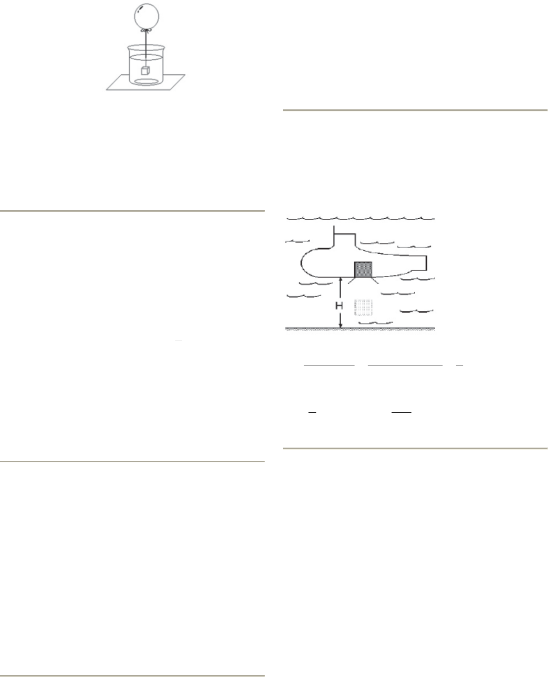 (NI: 0917) 18/4/2007 10:51 Caderno 04 Física 01 Tópico 02 Vestibulares Questão: 07 Observe a figura: As forças que agem no bloco de ferro são: o peso, o em- puxo e a tração no fio, então: NNT T gVdgVdT EPTTEP AAFeFe 2 6363 103333,0 100,51010100,510106,7 − −− ⋅== ⋅⋅⋅−⋅⋅⋅⋅= ⇒−= ⇒−=⇒+= Resposta: 33 (NI: 0918) 18/4/2007 10:57 Caderno 04 Física 01 Tópico 02 Vestibulares Questão: 08 01. Verdadeiro. A pressão é diretamente proporcional à coluna de água. 02. Verdadeiro. AAAOO VVgVdgVd =⇒= 03 1 04. Verdadeiro. Porém devemos ter cuidado com a asser- tiva, esta afirma que o objeto está em repouso no fundo do reservatório, porém não afirma que existe força nor- mal agindo sobre este. 08. Falso. Se as duas possuem a mesma massa, a de menor área de contato exercerá uma pressão maior. 16. Falso. O princípio em questão é de Pascal Resposta: 07 (NI: 0919) 18/4/2007 11:07 Caderno 04 Física 01 Tópico 02 Vestibulares Questão: 09 O empuxo nos dois casos deve ser igual, portanto: 12221121 5,1 ddgVdgVdEE =⇒=⇒= Então devemos aumentar a densidade do cubo pelo fator de 1,5, então: gmmm VdVdmVdm 2 12 3 11122 3 111 100,4 102,15,1108,0 ⋅=−=Δ ⋅=⇒=⇒⋅== Resposta letra (d) (NI: 0920) 18/4/2007 11:16 Caderno 04 Física 01 Tópico 02 Vestibulares Questão: 10 O empuxo da prancha totalmente submersa deve ser igual à soma do peso do rapaz mais o peso da prancha, então: kgVdm mVV VV gVdggVdPPE PPP PP PP PPPAPR 4010100,4 1060100,6 100,46010 60 12 312 23 =⋅⋅== ⇒=⇒=⋅ ⇒⋅⋅+=⋅ ⇒+=⇒+= − − Resposta letra (d) (NI: 0921) 18/4/2007 11:30 Caderno 04 Física 01 Tópico 02 Vestibulares Questão: 11 Observe a figura: A aceleração da caixa é dada por: ( ) ( ) 2/ 3 5 2,1 2,110 sm d dga F FFF = − = − = μ μμμ Utilizando os conhecimentos de cinemática temos: stttaH 3 32 55,7 2 1 22 =⇒⋅ ⋅ =⇒⋅⋅= Resposta: 3s Prof. Sérgio Torres Apostila-04 Física 15/05/2010 22/52