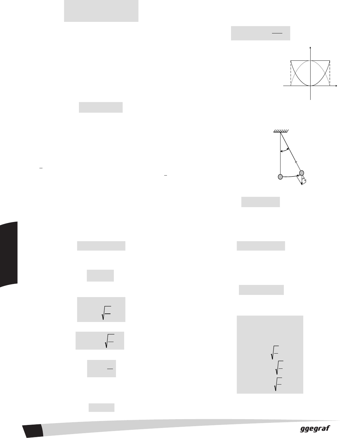 +A-A EMT Ec Ep x 0 E θ py m (massa da esfera). p (força peso da esfera). x L L θ T (força de tração do fio). px 16 FÍ SI CA II I Px = mg sen θ Py = mg cos θ Assim, podemos concluir que a freqüência ƒ de um MHS é dada por ƒ = ω/2π, o que nos dá a relação: ω = 2πƒ. Através de derivações, podemos obter as demais equações que des- crevem um MHS: v = ω A cos (ωt + φ0) e a = - ω2 A sen (ωt + φ0) = - ω2 x A última equação nos mostra que, num MHS, a aceleração é sempre proporcional e de sentido oposto ao deslocamento. A partir das equações acima, podemos fazer: cos (ωt + φ0) = v / ω A e sen (ωt + φ0) = x / A Elevando ao quadrado: Cos2 (ωt + φ0) = [v / ω A]2 e sen2 (ωt + φ0) = [x / A]2 Somando as equações acima, obtemos: v2 = ω2 (A2 – x2) De posse desses resultados, podemos fazer algumas observações sobre um oscilador massa-mola que realiza um movimento harmônico (um oscilador harmônico): I. A velocidade do bloco nos pontos extremos é dada por v2 = ω2 (A2 – A2) � v = 0. II. A velocidade do bloco no ponto central é dada por v2 = ω2 (A2 – 02) � v = + ωA. Tal velocidade é máxima. III. A aceleração do bloco nos pontos extremos é dada por a = + ω2A. Nesses pontos ela tem módulo máximo. IV. A aceleração do bloco no ponto central é dada por a = 0. Período de Osciladores Harmônicos Num oscilador harmônico, a força resultante sobre o bloco é a força F que a mola exerce sobre ele. De acordo com a Segunda Lei de Newton, e usando o valor da aceleração num MHS, podemos escrever que: F = ma = - m ω2 x No entanto, pela lei de Hooke, a força que uma mola exerce é dada por: F = - kx Igualando as expressões acima, temos que: - kx = - m ω2 x ω = m k Como ω = 2π/ T: 2π/T = m k Nos dando, finalmente: T = 2π k m Como ƒ = 1/T, facilmente obtemos a expressão para a freqüência do oscilador harmônico: ƒ = (1/2π) Energia Mecânica em Osciladores Harmônicos Tomemos um oscilador harmônico com a massa na posição x = +A. Nessa posição, a energia mecânica armazenada pela mola vale Ep = (1/2)(K A2). Ainda nessa posição, a energia cinética Ec vale zero, pois a velocidade da massa é nula. Assim, a energia mecânica total do sistema pode ser expressa por: E = Ec + Ep = 2 ²KA Como não há dissipação de Energia, o valor da energia mecânica total no sistema é cons- tante. O que acontece é uma troca contínua de energia potencial e cinética. Quando a massa se afasta da posição de equilíbrio ela troca energia cinética por energia potencial. Quando ela se aproxima da posição de equilíbrio o inverso acontece. A figura ilustra essa afirmação. Pêndulo Simples Um pêndulo simples é um sistema constituído por uma massa pontual m suspensa por um fio inextensível de massa desprezível e comprimento L, conforme a figura. Decompondo as forças que atuam sobre a massa, a componente tangencial da força peso pode ser expressa por: Px = - mg senθ O valor é negativo porque a força atua no sentido oposto do desloca- mento da massa. O ângulo θ pode ser expresso, em radianos, por θ = x / L. Assim: Px = - mg sen (x/L) Note que a força não é proporcional ao deslocamento x. No entanto, para ângulos muito pequenos (até 10º), podemos aproximar sen (x/L) para (x/L). Assim, temos: Px = - (m g x) / L Igualando à Segunda Lei de Newton, já com a aceleração expressa para o MHS, e desenvolvendo: Px = - (m g x) / L = - m ω2 x ω 2 = g / L ω = L g 2π / T = L g T = 2π g L A expressão acima determina o período de um pêndulo simples para ângulos menores que 10º. O período independe da massa do pêndulo. Prof. Sérgio Torres Apostila 02 Física Pura 15/05/2010 143/181 Sergio Torres fisica