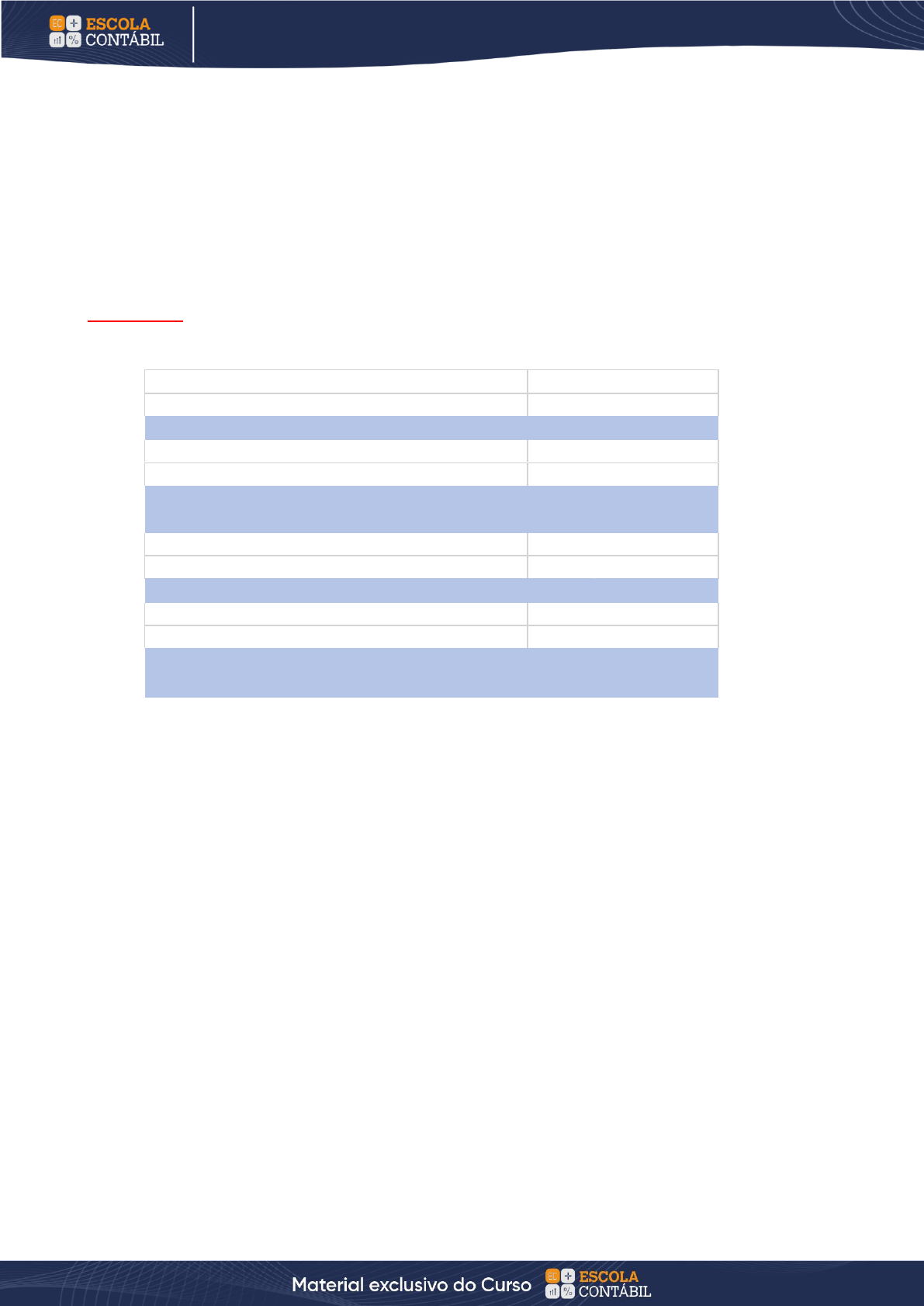 114 CADERNO 300 QUESTÕES COMENTADAS COMENTADAS CADERNO 300 QUESTÕES COMENTADAS COMENTADAS CADERNO 300 QUESTÕES EXAME DE SUFICIÊNCIA De acordo com a NBC TG 09 – Demonstração do Valor Adicionado e considerando exclusivamente essas informações, indique, respectivamente: o Valor Adicionado Bruto; O valor Adicionado Líquido produzido pela entidade; e, o Valor Adicionado total a distribuir. A) R$ 258.200,00; R$ 246.200,00; e, R$ 260.900,00 B) R$ 258.200,00; R$ 246.200,00; e, R$ 282.900,00 C) R$ 262.000,00; R$ 246.200,00; e, R$ 282.900,00 D) R$ 262.200,00; R$ 258.200,00; e, R$ 294.900,00 Comentários: Vamos elaborar a DVA. Receitas R$ 453.800,00 Perdas Estimadas -R$ 3.800,00 Receitas R$ 450.000,00 Energia elétrica -R$ 6.300,00 CMV (165.500 + 20.000) -R$ 185.500,00 Insumos Adquiridos de Terceiros -R$ 191.800,00 Valor Adicionado Bruto R$ 258.200,00 Depreciação e Amortização -R$ 12.000,00 Retenções -R$ 12.000,00 Valor Adicionado Líquido R$ 246.200,00 Resultado de equivalência patrimonial R$ 22.000,00 Receita financeira R$ 14.700,00 Valor Adicionado Recebido em Transferência R$ 36.700,00 Valor Adicionado Total a Distribuir R$ 282.900,00 Gabarito → B. 85. (Consulplan/Exame CFC/2021.2) O contador de uma Sociedade Empresarial deverá elaborar a Demonstração do Valor Adicionado para o exercício de X1, com base nas seguintes informações: • Aquisição à vista de mercadoria no valor de R$ 2.000,00 com incidência de ICMS calculado à alíquota de 18%; • Receita de vendas de mercadorias por R$ 6.000,00, destacando-se o ICMS (alíquota de 18%); • Despesas com pessoal no valor de R$ 200,00, sendo R$ 20,00 de contribuições devidas ao INSS; • Despesas administrativas que correspondem ao consumo de energia elétrica no valor de R$ 150,00; • Venda de um veículo por R$ 600,00, cujo custo de aquisição foi de R$ 500,00 e já estava depreciado em R$ 150,00; • O Imposto de Renda e a Contribuição Social sobre o Lucro Líquido são calculados à alíquota de 10% sobre o Lucro Líquido; e, • O lucro foi distribuído da seguinte forma: 50% com lucros retidos e 50% com juros sobre o capital próprio e dividendos.
