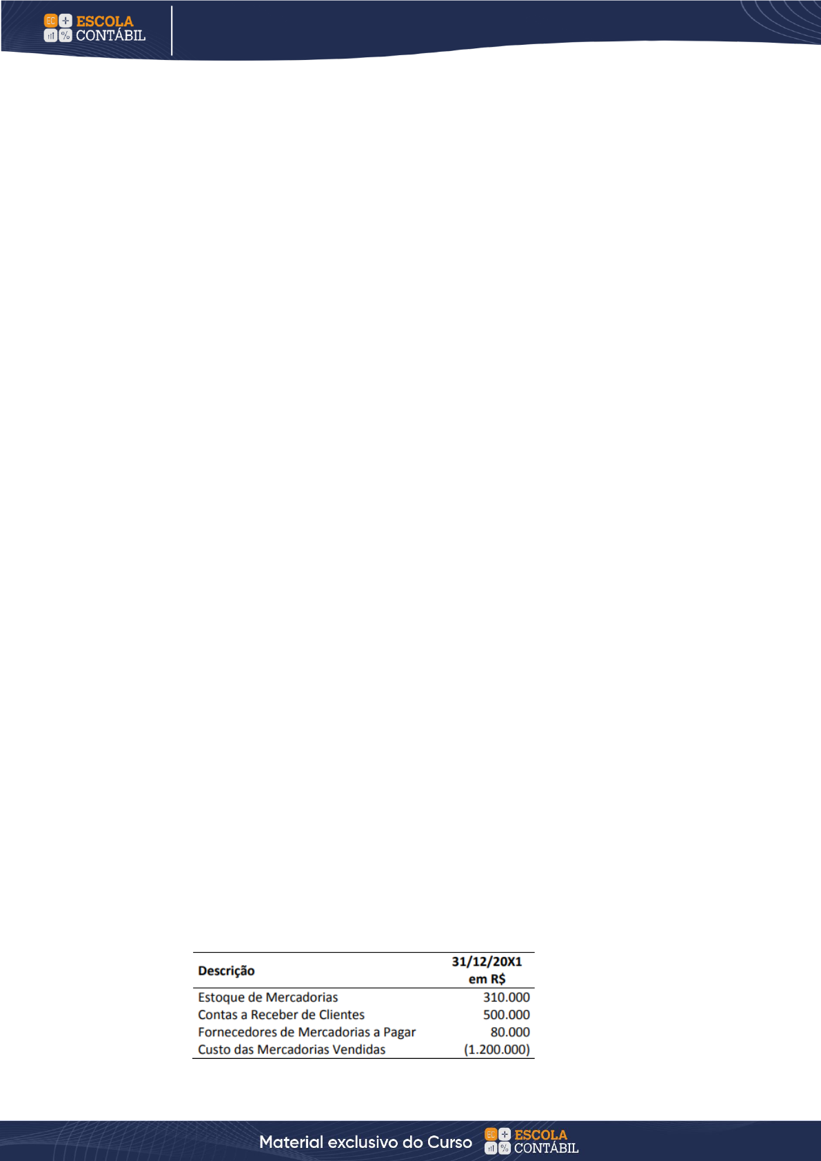 164 CADERNO 300 QUESTÕES COMENTADAS COMENTADAS CADERNO 300 QUESTÕES COMENTADAS COMENTADAS CADERNO 300 QUESTÕES EXAME DE SUFICIÊNCIA Agora vamos para a questão. De acordo com Eliseu Martins, na produção por ordem, os custos são acumulados em contas específicas de cada ordem ou encomenda, sendo que tal conta só para de receber custos quanto a encomenda for encerrada. Esse autor apresenta a produção por ordem em contraposição à produção contínua. I.Sua escolha para uso em uma empresa está atrelada à forma de a mesma trabalhar e à conveniência contábil administrativa. Correto. Segundo Eliseu Martins, a forma de a empresa trabalhar e a conveniência contábil- administrativa são dois fatores que devem ser considerados na avaliação da empresa em usar o sistema de acumulação de custos por ordem de produção. Se uma empresa é fabricante de navios, ela não irá gastar anos para fazer um navio sem que haja demanda para tanto. Diferentemente, por exemplo, de uma indústria de refrigerantes. II.Os custos são acumulados em contas representativas das diferentes linhas de produção. Errado. Segundo Eliseu Martins, tal característica se relaciona à produção contínua. Conforme esse autor, na produção contínua, “os custos são acumulados em contas representativas das diversas linhas de produção; são encerradas essas contas no fim de cada período” (Eliseu Martins, 2019, p. 132). Tal forma de acumulação de custos é distinta daquela usada na produção por ordem, na qual, de acordo com aquele autor, “os custos são acumulados numa conta específica para cada ordem ou encomenda. Essa conta só para de receber custos quando a ordem for encerrada” O detalhe sutil aqui é que, na produção por ordem, não há linha de produção. Assim, os custos são armazenados em cada ordem de produção. III.O conceito de equivalência de produção é muito importante para a sua correta aplicação. Errado. O conceito de equivalente de produção é muito relevante na produção contínua, ao se empregar o custeio por processo. Na produção por ordem, não há necessidade de se utilizar a equivalência de produção. Você sabe exatamente o custo daquele produto. IV.Não pode ser empregado com o custeio por absorção. Errado. Não há inviabilidade do emprego o sistema de acumulação de custos por ordem de produção (custeio de ordens e de encomendas) juntamente com o custeio por absorção. Gabarito →A. Análise das demonstrações contábeis 121. (Consulplan/Exame CFC/2019.2) Os seguintes valores foram divulgados por uma empresa comercial em alguns de seus relatórios contábil- financeiros encerrada em 31/12/20X1: