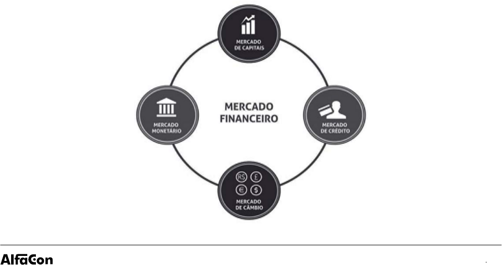 Conhecimentos Bancários 81 A L F A C O N No contexto da notícia em pauta, para minorar os impactos previstos pela Standard & Poor’s sobre a rentabilidade de determinado banco com atuação em escala nacional, a recomendação adequada da diretoria aos gerentes das agências é a) renunciar ao uso do chamado cadastro positivo. b) concentrar toda a carteira de crédito na modalidade de crédito consignado. c) conferir maior rigor na seleção da carteira de clientes. d) vetar a renegociação de dívidas com clientes inadimplentes. e) abrir mão de garantias sobre créditos concedidos. 28� Semana passada, através da Resolução n° 4.410, de 28.05.2015, o Governo Federal, por meio do Banco Central, deu os primeiros passos para modificar [...] dois dos melhores investimentos em renda fixa atualmente: as Letras de Crédito do Agronegócio (LCAs) e as Letras de Crédito Imobiliário (LCIs). Disponível em:. Acesso em: 17 ago. 2015. Adaptado. A Letra de Crédito Imobiliário (LCI), por possuir lastros em créditos imobiliários, representa uma importante fonte de financiamento e recursos ao setor. É, ainda, um título muito demandado por pessoas físicas por contar com a isenção do Imposto de Renda. Recentemente, foram alteradas as regras para aquisição desse produto, dentre as quais a(o) a) redução do depósito compulsório no Bacen sobre depósitos de poupança. b) lastro desse ativo não incluir financiamentos habitacionais garantidos por hipoteca. c) possibilidade de efetuar pagamentos relativos à atualização por índice de preços. d) proibição de atualização por índice de preços. e) prazo mínimo para recompra e resgate. 29� De acordo com a Figura abaixo, observa-se que o mercado financeiro está basicamente segmentado em quatro grandes mercados: mercado monetário, mercado de crédito, mercado de câmbio e mercado de capitais.
