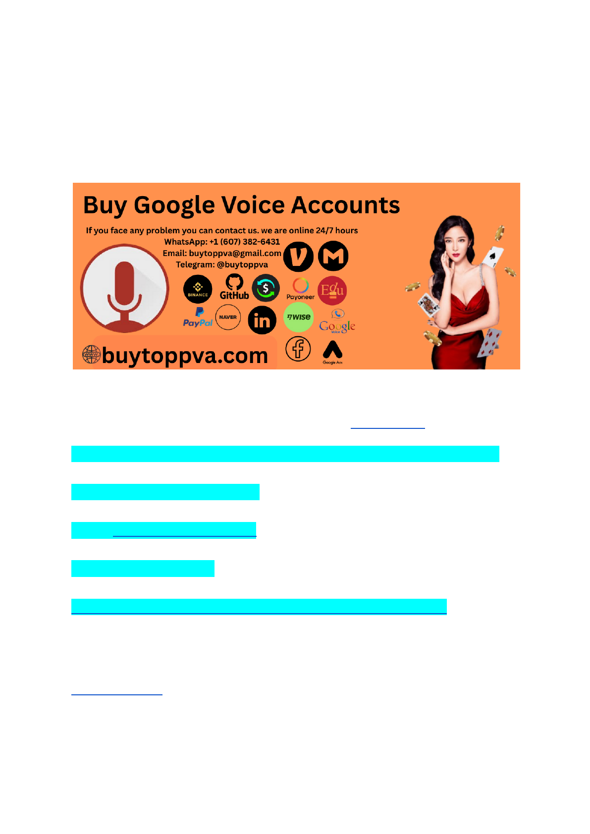 Google Fi Wireless for Phone Plans & Mobile Phone Deals.buytoppva In today’s fast-paced digital world, communication is everything. Whether you’re running a small business, managing a marketing campaign, or simply expanding your online presence, having access to a reliable and versatile communication platform is essential. That’s where Google Voice comes into play. With its ability to make calls, send texts, and manage voicemail seamlessly — all while being linked to your Google account — it’s no surprise that more individuals and businesses are looking to buy Google Voice accounts to streamline operations. So Buy Google Voice Accounts for buytoppva.com If you face any problem you can contact us. we are online 24/7 hours WhatsApp: +1 (607) 382-6431 Email: buytoppva@gmail.com Telegram: @buytoppva https://buytoppva.com/product/buy-google-voice-accounts/ What is a Google Voice Account? Google Voice is a powerful VoIP (Voice over Internet Protocol) service provided by Google that allows users to communicate via calls, text messages, and voicemail through a single number. It is ideal for personal use as well as professional applications, providing flexibility and reliability that traditional phone services often lack. http://buytoppva.com mailto:buytoppva@gmail.com https://buytoppva.com/product/buy-google-voice-accounts/ https://buytoppva.com/product/buy-google-voice-accounts/ Whether you’re managing remote teams, running customer service campaigns, or engaging in international business, a Google Voice account gives you access to: A dedicated U.S. phone number. Free calls within the U.S. and Canada. Affordable international calling rates. Voicemail transcription. Why Buy Google Voice Accounts? Instead of creating accounts manually — a process that often requires a valid U.S. phone number, identity verification, and other hurdles — many users opt to buy verified Google Voice accounts that are ready to use right away. Here are some of the top reasons: Save Time and Hassle Creating multiple Google Voice accounts can be time-consuming and difficult, especially if you’re located outside the U.S. or don’t have access to verified phone numbers. Buying pre-made and verified accounts eliminates the hassle, letting you focus on what truly matters — running your business or marketing strategy. So Buy Google Voice Accounts for buytoppva.com Boost Business Operations Businesses benefit greatly from Google Voice’s features, especially when managing customer support, telemarketing, or sales outreach. You can assign different accounts to different teams, use them for call tracking, or manage regional marketing efforts with local U.S. numbers. https://buytoppva.com/product/buy-google-voice-accounts/ Enhance Privacy and Anonymity Need a second number for classified ads, client interactions, or personal privacy? Google Voice allows you to maintain anonymity without revealing your real number. When you buy multiple accounts, you have the flexibility to separate personal and professional communications easily. If you face any problem you can contact us. we are online 24/7 hours WhatsApp: +1 (607) 382-6431 Email: buytoppva@gmail.com Telegram: @buytoppva https://buytoppva.com/product/buy-google-voice-accounts/ Expand Your Marketing Reach For digital marketers, growth hackers, and social media managers, having multiple verified Google Voice accounts can be a game-changer. These accounts can be used to verify online platforms, run SMS marketing campaigns, or register profiles across various services. Features of Our Verified Google Voice Accounts When you buy Google Voice accounts from us, you’re not just getting any account — you’re getting a fully verified, clean, and ready-to-use communication solution tailored to your needs. Here’s what makes our accounts stand out: Fully verified with active U.S. phone numbers Linked with real Gmail accounts (optional bundle) No previous usage — fresh and unused Can be used on mobile, desktop, or through the Google Voice app Instant delivery after purchase 24/7 customer support for post-sale assistance We understand the importance of quality and reliability. That’s why each account we provide goes through a manual review process to ensure authenticity and proper verification. Who Should Buy Google Voice Accounts? Our service is ideal for: mailto:buytoppva@gmail.com https://buytoppva.com/product/buy-google-voice-accounts/ https://buytoppva.com/product/buy-google-voice-accounts/ Entrepreneurs & Freelancers :- Whether you’re managing remote gigs or dealing with clients worldwide, Google Voice allows you to centralize communications easily. Digital Marketing Agencies :- Running multiple ad campaigns or setting up landing page support lines? Verified Google Voice accounts make this a breeze. Customer Support Teams :- With each agent assigned a different account, it becomes easier to manage inbound and outbound calls professionally. ECommerce Businesses :- Use Google Voice numbers for order confirmations, follow-ups, and SMS notifications without mixing them with your personal phone. Crypto Traders & Tech Enthusiasts :- Need anonymous and secure numbers for platform verification or trading apps? Google Voice fits the bill perfectly. How to Use Your Google Voice Account After Purchase Once you buy your account(s), setup is quick and easy: Login Credentials Delivered – You’ll receive the Google account email and password. Access Google Voice – Sign in at () to access your new number. Customize Settings – Set voicemail greetings, call forwarding, and linked devices. Start Communicating – Begin making calls, sending texts, or receiving voicemails instantly. Whether on desktop or the Google Voice mobile app, your account will be functional and ready to meet your needs. Why Choose Us? We pride ourselves on being a trusted source for buying digital communication tools. Here’s why hundreds of customers rely on our services: Safe & Secure Tra