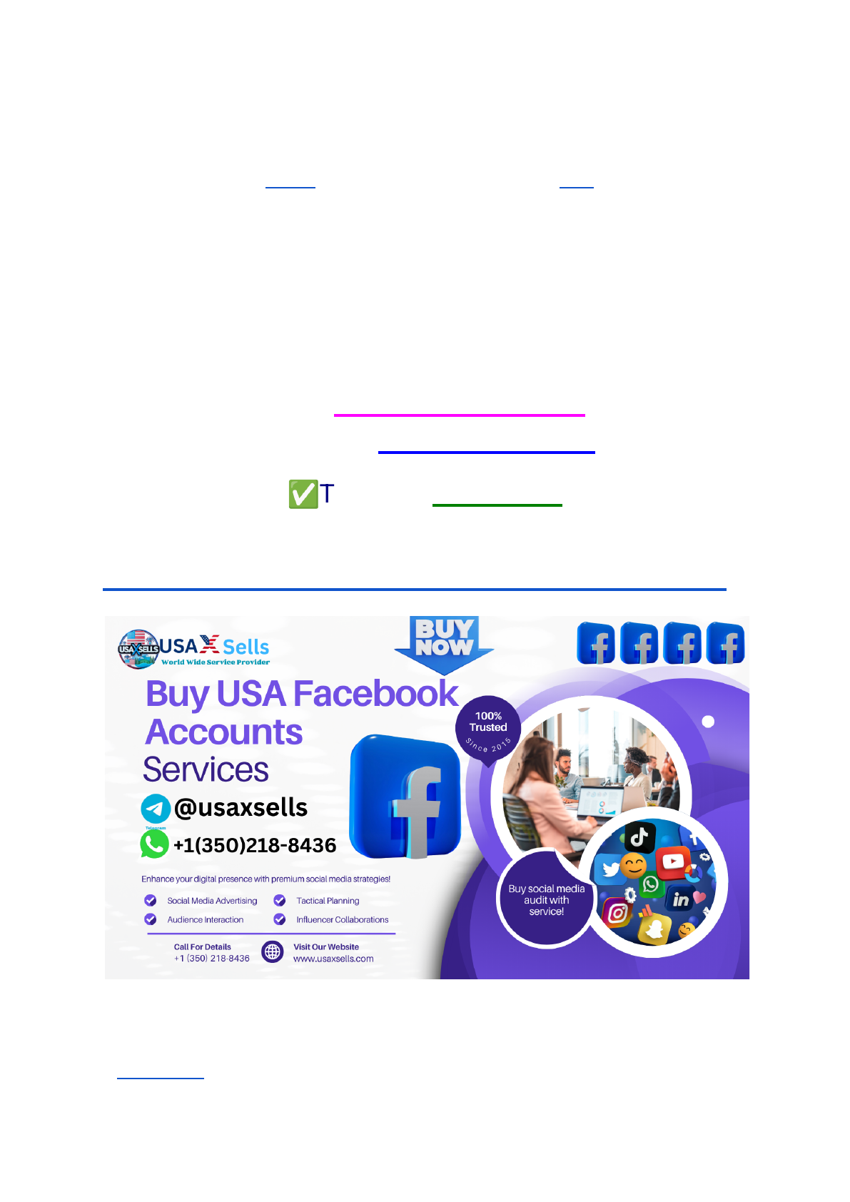How To Buy Usa Facebook Accounts I This week? In today’s digital age, social media has become an essential tool for businesses and individuals to connect with their audience, promote their products or services, and build brand awareness. Facebook, as one of the leading social media platforms, offers a wide range of opportunities for businesses to reach their target demographic. That’s where buying Facebook accounts can come in handy. If you want more information just contact me now. 24-hour Reply/Contact Email:usaxsells@gmail.com WhatsApp: +1 (350) 218-8436 ✅Telegram:@usaxsells Our Website: https://usaxsells.com/product/buy-usa-facebook-accounts/ Whether you’re looking to expand your reach, run multiple ad campaigns, or simply streamline your social media marketing efforts, buying Facebook accounts can offer a convenient solution. In this article, we will explore the benefits of buying Facebook https://usaxsells.com/product/buy-usa-facebook-accounts/ https://usaxsells.com/product/buy-usa-facebook-accounts/ https://api.whatsapp.com/send?phone=13502188436 http://t.me/usaxsells https://usaxsells.com/product/buy-usa-facebook-accounts/ https://usaxsells.com/product/buy-usa-facebook-accounts/ accounts, how to choose the right ones for your needs, and some important considerations to keep in mind when purchasing accounts for your business. Benefits of buying Facebook accounts With over 2.8 billion monthly active users, Facebook offers a vast audience for connecting with potential customers, promoting products or services, and building brand awareness. However, growing a Facebook account organically can be a time-consuming and challenging process. This is where buying Facebook accounts can offer many benefits. One of the primary advantages of purchasing established Facebook accounts is that it provides a shortcut to building a credible and active following. Instead of starting from scratch and trying to accumulate followers one by one, buying an existing account with a large number of followers already in place allows you to . Furthermore, buying Facebook accounts can also save you time and effort in creating and managing multiple accounts for different purposes. Whether you are a social media manager looking to expand your client’s online presence or a business owner wanting to promote multiple products or services, purchasing pre-established accounts can streamline your marketing efforts and maximize your outreach on the platform. If you want more information just contact me now. 24-hour Reply/Contact Email:usaxsells@gmail.com WhatsApp: +1 (350) 218-8436 ✅Telegram:@usaxsells Our Website: https://usaxsells.com/product/buy-usa-facebook-accounts/ Additionally, buying Facebook accounts can provide access to valuable demographic data and insights. Established accounts often come with a wealth of information about the audience, including their interests, demographics, and online behavior. By analyzing this data, you can tailor your content and ad campaigns to better target and engage your audience, ultimately driving more traffic and conversions for your business. https://en.wikipedia.org/wiki/Facebook https://www.quora.com/unanswered/How-do-you-buy-Facebook-accounts-from-us?top_ans=1477743830811181 https://usaxsells.com/product/buy-usa-facebook-accounts/ https://www.quora.com/unanswered/How-do-you-buy-Facebook-accounts-from-us?top_ans=1477743830811181 https://api.whatsapp.com/send?phone=13502188436 http://t.me/usaxsells https://usaxsells.com/product/buy-usa-facebook-accounts/ https://en.wikipedia.org/wiki/Facebook Moreover, purchasing Facebook accounts can also help you stay ahead of the competition. In today’s competitive digital landscape, having a strong social media presence is crucial for staying relevant and maintaining a competitive edge. By acquiring established accounts with a large following and high engagement rates, you can position yourself as a leader in your industry and attract more followers, customers, and opportunities for growth. Where to buy Facebook accounts? The internet is filled with numerous websites and platforms claiming to offer Facebook accounts for sale, but it’s important to be cautious and do your due diligence before making a purchase. One of the most common places to buy Facebook accounts is through online marketplaces such as eBay or Craigslist. These platforms allow individuals to create listings for various goods and services, including social media accounts. While you may be able to find some legitimate sellers on these sites, there is also a high risk of encountering scammers who may try to sell you fake accounts or steal your money. There are also websites and companies that specialize in selling social media accounts, including Facebook. These platforms often offer a wide selection of accounts at varying prices, depending on factors such as the age of the account, the number of friends or followers, and any additional features included. While buying from these websites may offer more security and transparency than other options, it’s important to carefully read the terms and conditions and ensure that the accounts being offered are legitimate. If you want more information just contact me now. 24-hour Reply/Contact Email:usaxsells@gmail.com WhatsApp: +1 (350) 218-8436 ✅Telegram:@usaxsells Our Website: https://usaxsells.com/product/buy-usa-facebook-accounts/ Regardless of where you choose to buy Facebook accounts, it’s important to exercise caution and take steps to protect yourself from scams or fraudulent sellers. https://usaxsells.com/product/buy-usa-facebook-accounts/ https://en.wikipedia.org/wiki/Facebook https://api.whatsapp.com/send?phone=13502188436 http://t.me/usaxsells https://usaxsells.com/product/buy-usa-facebook-accounts/ Before making a purchase, always verify the authenticity of the accounts being offered, check the reputation of the seller, and read reviews or feedback from previous buyers. Additionally, be wary of any se