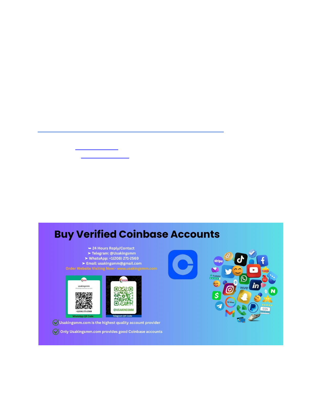 Guide to Buying a Verified Coinbase Account in USA In the fast-paced world of cryptocurrency, having a reliable platform can make all the difference. Coinbase stands out as one of the leading exchanges, offering users a secure and user-friendly experience for buying, selling, and trading digital assets. However, only some have the luxury of waiting weeks for account verification or dealing with potential roadblocks along the way. Website Visit Now:-Click the link:- https://usakingsmm.com/product/buy-verified-coinbase-account/ ➥ 24 Hours Reply/Contact ➤ Telegram: @Usakingsmm ➤ WhatsApp: +1(208) 271-2569 ➤ Email: usakingsmm@gmail.com This is where verified Coinbase accounts come into play. With these accounts in hand, you unlock immediate access to advanced features and capabilities that can elevate your trading game. Whether you’re an experienced trader or just starting your journey in crypto investing, owning a verified account opens doors to endless possibilities. Are you curious about why so many people are seeking out verified Coinbase accounts? Let’s explore what they are and how you can get yours today. https://usakingsmm.com/product/buy-verified-coinbase-account/ https://t.me/Usakingsmm https://wa.me/message/LTVXHCQXS7XGI1?src=qr What Are Verified Coinbase Accounts? Verified Coinbase accounts are user profiles on the Coinbase platform that have undergone thorough identity verification. This process typically involves submitting personal information and documents, such as government-issued IDs or utility bills. Once verified, users gain access to a range of features not available to unverified accounts. These include higher withdrawal limits, increased trading capabilities, and participation in various cryptocurrency offerings. The verification process ensures both security and compliance with regulatory standards. By confirming your identity, you help create a safer trading environment for everyone involved. For traders looking to engage seriously in the crypto market, having a verified account is essential. It lays the foundation for building trust within the community while also enhancing overall trading experiences. Website Visit Now:-Click the link:- https://usakingsmm.com/product/buy-verified-coinbase-account/ ➥ 24 Hours Reply/Contact ➤ Telegram: @Usakingsmm ➤ WhatsApp: +1(208) 271-2569 ➤ Email: usakingsmm@gmail.com Why People Buy Verified Coinbase Accounts? People seek verified Coinbase accounts for various reasons. One primary motivation is the need for security and trustworthiness. A verified account provides users with peace of mind, knowing that their transactions are authenticated and secure. Another reason is access to higher transaction limits. With a fully verified account, individuals can engage in larger trades without restrictions. This advantage attracts serious investors looking to capitalize on market opportunities. Additionally, buying a verified Coinbase account allows newcomers to bypass lengthy verification processes. Many need help with these procedures, so purchasing an already-verified account streamlines entry into the cryptocurrency world. Moreover, established traders often want multiple accounts for diversification or specific trading strategies. Having additional verified accounts can facilitate this approach while maintaining compliance with regulations. Some buyers aim to maintain privacy while engaging in crypto trading, making verified accounts appealing as they offer an added layer of anonymity within certain bounds. Buy Verified Coinbase Accounts. https://usakingsmm.com/product/buy-verified-coinbase-account/ https://t.me/Usakingsmm https://wa.me/message/LTVXHCQXS7XGI1?src=qr The Importance Of Verified Coinbase Accounts When it comes to engaging in secure crypto trading, having a verified Coinbase account is crucial. Verification plays a significant role in ensuring the safety and legitimacy of your transactions. Let’s delve deeper into why verified accounts are essential for a seamless crypto trading experience. The Role Of Verification In Secure Crypto Trading Buy Verified Coinbase Accounts;Verification on Coinbase is a fundamental step to establish your identity and comply with regulatory requirements. By verifying your account, you enhance security and build trust within the crypto community. Risks Of Unverified Accounts Unverified accounts pose risks such as limited functionality, higher transaction fees, and potential security vulnerabilities. Without verification, you may encounter obstacles when withdrawing funds or engaging in certain transactions. Ensuring yourCoinbase account is verified is vital to safeguarding your assets and enjoying a smooth trading experience. Don’t compromise on security – verify your account today. Getting Verified On Coinbase When it comes to trading cryptocurrencies, having a verified account on Coinbase is crucial. It not only allows you to access a wide range of features but also ensures compliance with regulatory requirements. Buy Verified Coinbase Accounts.Here’s a breakdown of the step-by-step verification process and common issues along with their solutions. How Do I Buy a Verified Coinbase Account? Purchasing a verified Coinbase account is straightforward but requires careful steps. Begin by identifying reputable platforms that offer such accounts. Look for services with positive reviews and proven track records. Once you’ve found a reliable source, review the available options. Prices may vary based on verification levels or additional features offered. Next, create an account on the chosen platform if required. This often involves providing your email address and setting up a password. Website Visit Now:-Click the link:- https://usakingsmm.com/product/buy-verified-coinbase-account/ ➥ 24 Hours Reply/Contact ➤ Telegram: @Usakingsmm ➤ WhatsApp: +1(208) 271-2569 ➤ Email: usakingsmm@gmail.com After signing up, browse through their listings to select the specific type 