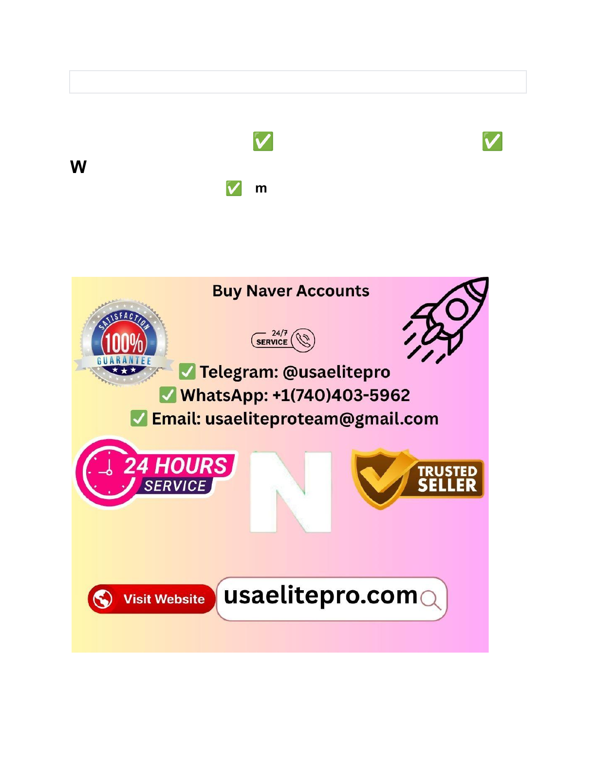 Buy Naver Accounts: Unlock Your Online Success Today If you want to more information just contact now- ✅ Telegram: @usaelitepro ✅ WhatsApp: +1(740)403-5962 ✅ Email: usaeliteproteam@gmail.com Are you looking to expand your online presence and tap into the thriving Korean market? If so, buying Naver accounts could be your secret weapon. Naver isn’t just another search engine; it’s the heart of Korea’s digital landscape, connecting millions of users daily. Whether you're an entrepreneur, marketer, or content creator, having access to Naver can unlock endless opportunities for growth. But finding the right Naver accounts can feel overwhelming. If you want to more information just contact now- ✅ Telegram: @usaelitepro ✅ WhatsApp: +1(740)403-5962 ✅ Email: usaeliteproteam@gmail.com How do you ensure quality, reliability, and security? Don’t worry—we’ve got you covered. Keep reading, and you’ll discover why Naver accounts are essential, how to choose the best ones, and how they can elevate your business or personal brand to the next level. Why Naver Matters Naver isn’t just another search engine. It’s South Korea’s most popular platform for searching, blogging, and connecting with communities. If you’re targeting the South Korean market, understanding Naver is non-negotiable. Unlike Google, Naver offers a unique mix of features that cater specifically to local needs. From blogs to shopping platforms, it’s a one-stop hub for millions of users. This is why having Naver accounts can transform your online presence in this region. Naver’s Dominance In South Korea Google might be the global giant, but Naver rules in South Korea. Over 70% of the population uses it for everything—searching, shopping, and entertainment. If your business isn’t on Naver, you’re missing out on a massive audience. What makes Naver unique is its localized approach. It prioritizes Korean content, making it easier for businesses to connect with their target market. Do you want to reach South Korean consumers effectively? Then Naver is your go-to platform. Beyond A Search Engine Naver isn’t just about search results. It’s a comprehensive ecosystem that includes blogs, cafes (communities), and even shopping tools. This all-in-one functionality helps users stay engaged for longer periods. Think about this: if your content appears on a Naver blog or cafe, you’re not just getting visibility—you’re building trust. People see you as part of their daily lives, not just another ad. Can Google offer you that in South Korea? Seo Opportunities With Naver Ranking on Naver is different from Google SEO. Naver values fresh, high-quality content over backlinks and technical optimization. This levels the playing field for businesses that focus on user experience. If you want to more information just contact now- ✅ Telegram: @usaelitepro ✅ WhatsApp: +1(740)403-5962 ✅ Email: usaeliteproteam@gmail.com One way to stand out is by creating engaging blogs directly on Naver. These blogs often rank higher than external websites. Why not use this to your advantage and start building credibility today? Building Trust In Local Communities South Koreans trust Naver more than global platforms. They rely on it for authentic reviews, discussions, and recommendations. This trust can work in your favor if you’re active on Naver’s blogs and cafes. Imagine being part of a thriving online community where people discuss your products. That’s the kind of exposure you get with Naver accounts. Are you ready to build these meaningful connections? Naver isn’t just important; it’s essential for success in South Korea. Owning Naver accounts can open doors that other platforms simply can’t. Don’t wait to tap into this opportunity—start today and make your mark in one of the most digitally connected markets in the world. Benefits Of Owning Naver Accounts Naver is one of South Korea’s largest and most popular search engines. Owning Naver accounts can help individuals and businesses reach a wider audience. These accounts are essential for building credibility and accessing exclusive features. They are especially useful for those aiming to enter the Korean market. Let’s explore the key advantages of owning Naver accounts. Improved Visibility On Naver Naver accounts increase your visibility on the platform. Search results favor users with accounts, boosting your chances of being seen. For businesses, this means attracting more potential customers. If you want to more information just contact now- ✅ Telegram: @usaelitepro ✅ WhatsApp: +1(740)403-5962 ✅ Email: usaeliteproteam@gmail.com Whether you are posting blogs or promoting products, your content stands out. This makes Naver accounts valuable for growing your presence online. Access To Naver Tools Owning Naver accounts gives you access to exclusive tools. Features like Naver Blog and Naver Café help you engage with audiences. These tools are designed to improve communication and interaction. Users can also utilize analytics tools to track performance. This allows you to refine your strategies and improve results. Enhanced Credibility Verified Naver accounts build trust among users. People tend to trust businesses with active accounts on popular platforms. This trust can lead to higher engagement and customer loyalty. For individuals, owning a Naver account adds professionalism. It shows your commitment to connecting with others through reliable platforms. Easy Content Sharing With Naver accounts, sharing content is simple and efficient. You can post articles, videos, or images seamlessly. These posts are easily searchable, making them accessible to more users. Frequent sharing helps you stay active and relevant. This is a key factor in maintaining your online presence. Gateway To Korean Market Naver accounts are essential for entering the Korean market. South Korea has a unique online ecosystem centered around Naver. Owning accounts allows bus