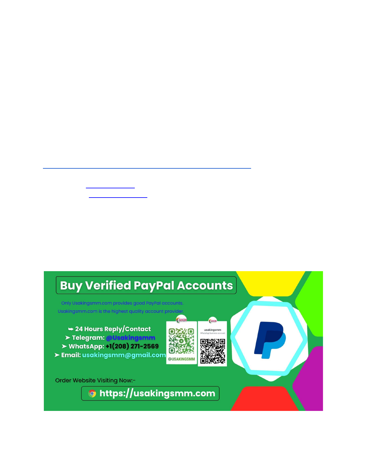 Top Sites to Buy Verified PayPal Accounts Safely in 2025 Usakingsmm provides a variety of verified PayPal accounts which you can feel free to check out. For a concurring instance, one could take the home pages of Apple and Amazon—you have two completely different experiences on either site which are designed for different things that people want to do. Give you an option of personal, corporate and Premier accounts based on what you need. These accounts are meticulously vetted to ensure they are as safe and secure as possible, surpassing all the strictest industry standards. Order Website Visiting Now:-Click the link:- https://usakingsmm.com/product/buy-verified-paypal-accounts/ ➥ 24 Hours Reply/Contact ➤ Telegram: @Usakingsmm ➤ WhatsApp: +1(208) 271-2569 ➤ Email: usakingsmm@gmail.com Purchase PayPal balances. We know how bad it is to get a PayPal account. Paypal is very user friendly but you know the drill — it’s a long tedious process! And you will be harder to use if you have no idea because you have a way to get an account, make yourself familiar with the research and not know whether blogs Even more than this is why we try to simplify your life. We check your balances in www.paypal. Needless to say, our PayPal accounts cost very cheap with the minimum order value. PayPal — Any few real PayPal accounts at selling. https://usakingsmm.com/product/buy-verified-paypal-accounts/ https://t.me/Usakingsmm https://wa.me/message/LTVXHCQXS7XGI1?src=qr Top 5 Sites To Buy Verified PayPal Accounts personal and Business verified PayPal accounts are essential for individuals and businesses alike. Whether you’re managing international transactions or setting up a payment gateway for your online business, having a trusted and verified PayPal account is a must. However, getting your own verified account can be time-consuming and difficult, especially with PayPal’s stringent verification process. To save you time and hassle, we’ve compiled a list of the top 5 trusted websites to buy verified PayPal accounts, both personal and business accounts. These platforms are known for their reliability, customer service, and verified account quality. Buy a Varified PayPal account at Usakingsmm.com. Today, in the digital world which is undergoing constant rapid changes one thing that has come within reach like never before are financial transactions. PayPal is an international online payment system and one of the fastest ways to pay money in a matter of seconds from any region Whereas, cross-border financial transactions made easy. This is because PayPal verification might be tough at times. At this moment Usakingsmm. com becomes relevant. This article is going to be very detailed guide on paypal account and verify it here. And why using Usakingsmm. Com varification Earlier getting a verified PayPal account Want to know buy Varified PayPal account at Usakingsmm. com. Cheap PayPal accounts For Sale Order Website Visiting Now:-Click the link:- https://usakingsmm.com/product/buy-verified-paypal-accounts/ ➥ 24 Hours Reply/Contact ➤ Telegram: @Usakingsmm ➤ WhatsApp: +1(208) 271-2569 ➤ Email: usakingsmm@gmail.com Why PayPal is Important In today’s digital age, PayPal is more than just a payment platform; it’s a financial powerhouse that connects millions of buyers and sellers globally. Whether you’re paying for services, receiving payments from clients, or simply buying products online, PayPal’s ease of use and widespread acceptance make it indispensable big purchase. What is a Verified PayPal Account? A verified PayPal account is one where the account holder has confirmed their identity by linking a bank account or credit card. This verification process not only increases trust but also unlocks higher transaction limits, making it essential for serious users. Why Do People Buy Verified PayPal Accounts? Convenience and Accessibility: Creating and verifying a PayPal account can sometimes be a hassle, especially in countries with strict banking regulations. Some users may opt to buy a verified account to bypass these hurdles quickly. https://usakingsmm.com/product/buy-verified-paypal-accounts/ https://t.me/Usakingsmm https://wa.me/message/LTVXHCQXS7XGI1?src=qr Bypassing Restrictions: Certain regions have restrictions on creating PayPal accounts, leading users to buy pre-verified accounts to avoid these barriers. Is It Legal to Buy a Verified PayPal Account? Understanding PayPal’s Terms of Service : Buying or selling PayPal accounts is against PayPal’s terms of service. If caught, PayPal can limit, suspend, or even permanently ban the account. This could lead to significant financial loss. Potential Legal Risks : Buying an account might expose you to legal risks, in addition to violating PayPal’s terms, especially if the account was involved in fraudulent activities before you purchased it. The Risks of Buying a Verified PayPal Account Account Security Concerns: When you buy a verified PayPal account, you’re putting your financial security in someone else’s hands. The previous owner could recover the account, leading to a loss of funds. Fraudulent Sellers: The internet is rife with scammers who sell fake or compromised PayPal accounts. These accounts might seem legitimate at first but could be linked to fraudulent activities, putting you at risk. Freelancers How to Buy a Verified PayPal Account Safely Researching Sellers: Before making a purchase, thoroughly research the seller. Look for reputable sellers with positive reviews and verified feedback from previous buyers. Checking Reviews and Feedback Always check reviews and feedback from other buyers. This can give you insight into the seller’s reliability and the quality of the accounts they offer. Understanding the Verification Process Ensure that the account is genuinely verified. Ask for details on how the account was verified and double-check the information before making a purchase. potential Alternatives to Buying a Ve