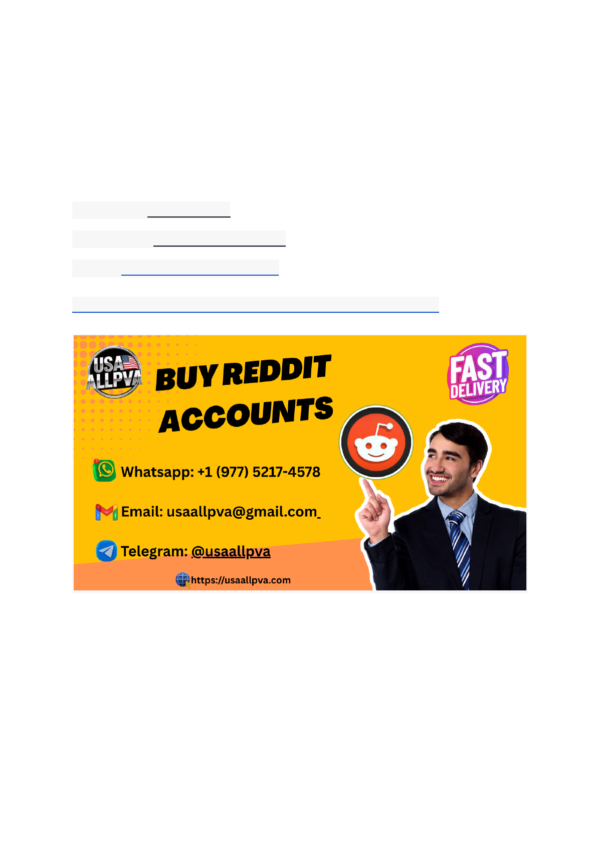 99 Buy Reddit accounts High karma and upvotes - Karmawhores uytrb Knock us Now , We Are online Here Telegram: @usaallpva Whatsapp: +1 (977) 5217-4578 Email: usaallpva@gmail.com https://usaallpva.com/product/buy-reddit-accounts/ https://t.me/usaallpva https://api.whatsapp.com/send?phone=17752174578 https://usaallpva.com/product/buy-reddit-accounts/ Buy Reddit Account Buy Reddit accounts from SocialManiaShop to create a dignified profile on one of the most important online forums in the world. Commonly called “the front page of the internet,” usually referred to as hosting a diverse set of smaller communities, or subreddits, based on content including news, images, videos, and discussions, users publish, remark on, and vote on. Be it that your business wants to promote products, you want to build an influence, or you’re a marketer who aims to reach niche communities, Buy Reddit accounts gives instant access to audiences of relevance. Reddit is an effective method by which marketing, brand awareness, and community building can be effectuated, but most certainly it does take a lot of time and effort to build your reputation right from scratch. You have one great advantage in store for yourself by buy Reddit accounts: access to accounts that have earned the trust of other Reddit users. You can leap right into discussions, content sharing, and decision-making across various subreddits. As a platform, with over 50 million daily active users, Reddit is one of the best places to grow your online presence. Of course, in order to grow your brand on it, you will need verified accounts if you want your contributions to be taken seriously. Buy reddit accounts Why Buy Reddit Accounts? ● 1. Instant Credibility: Gaining trust is rather difficult on Reddit, especially for new accounts. Usually, low-karma, new accounts raise suspicions among community members and moderators. When you buy Reddit account, you will have an aged, already-verified account complete with some existing karma and post history. This kind of credibility will make it possible for you to engage with Redditors more effectively and avoid account restrictions for seamless participation in conversations. ● 2. Visibility and Engagement: This is because Reddit’s unique algorithm grants more visibility to accounts that have earned positive karma and proven themselves to be authentically active. This means that buy verified Reddit account, every time you post something or comment on a topic, it’s more likely to be in one of the top spots. That guarantees more visibility and, consequently, more engagement. More often than not, Reddit users would open up more to verified accounts with good reputation records, so it would be easier to win upvotes, comments, and shares. This, once more, will just help build your account’s credibility and increase its influence among the target communities. ● 3. Promote Your Business or Personal Brand: Businesses can use it to directly and conversationally connect with customers in a much more organic way. The verified Reddit accounts let you promote your products and services through the subreddits relevant to your offer without looking spammy or disingenuous. You show up to answer questions, deliver value, and drive discussions about your brand or industry while building trust with your audience. Apart from this, one can situate the Reddit accounts in an AMA session for a direct line of communication with potential customers. ● 4. Topic-Specific Communities: Thousands of sub-communities denote that topics on Reddit will range from tech, fashion, and gaming to finance, health, and marketing. When you buy Reddit accounts, you reach out to them strategically by taking part in those discussions related to your brand or interests. A typical case might be that of an eco-friendly product business participating in discussions around various sustainability-focused subreddits, or an influencer in the gaming niche would join specific gaming communities. A verified account ensures your contributions become trustworthy and welcome in those subreddits. ● 5. Drive Organic Traffic to Your Website: A high-end Reddit account will empower you to share high-quality content or links that route traffic to your website, blog, or even your eCommerce store. The users of this platform really appreciate high-quality content. This means your contribution can generate organic traffic and increase brand exposure. Verified accounts also reduce the chances of getting flagged or downvoted for promotional activity, hence making your content visible for more time. Types of Reddit Accounts We Offer: ● 1. Verified Reddit Accounts: Completely verified, the accounts are guaranteed to fit /r/reddit’s guidelines on all points and to have a verifiable history that has no trouble of any kind. If you want to establish credibility fast and avoid the many pitfalls a new account may run into, then a verified Reddit account is precisely what you need. ● 2. Aged Reddit Accounts: Older accounts with established karma and post history form the basis for engaging in a seamless way within the community on Reddit. These aged accounts work well for business enterprises or persons looking forward to making an impact on Reddit without hustle in building the karma from scratch. ● 3. Bulk Reddit Accounts: We offer bulk Reddit accounts for agencies, marketers, or businesses dealing with several campaigns. This allows flexibility in the variety of subreddits one can engage in and targeting different niche communities simultaneously. How Buy Reddit Accounts Can Benefit Your Social Media Strategy: ● 1. Increase Influence Across Communities: The influence of Reddit cuts across many industries, interests, and global communities. Buy verified Reddit account lets you be a trusted voice in these communities and opens you to networking opportunities, promotion, and deep engagement. ● 2. Build Trust Quickly: The power of the Reddit user base is in 
