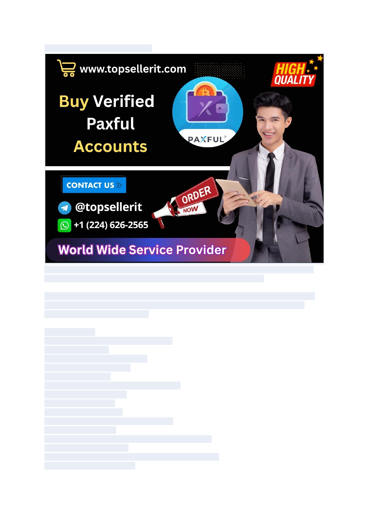 Buy Verified Paxful Account With BTC Paxful is the best payment method to enhance your cryptocurrency trading experience. So, get ready to discover how a Paxful account can take your trading to new heights. TopSellerit offers competitively low prices for our verified Paxful accounts. We can provide you with Paxful account email ID, picture, ID card and 100% guarantee. So don’t delay and buy a verified Paxful account from us now. Our service gives- ✔ 100% Satisfaction & Recovery Guaranteed ✔ Email Login Access ✔ Random country-based accounts ✔ Verified with a trusted bank ✔ Verified with ID Card ✔ Verified with real phone number and address ✔ Verified with Prepaid Card ✔ Full Verified Accounts ✔ No limit on Transactions ✔ Real IP verified, not an auto-generated one ✔ No limit to transaction ✔ Fully functional account verified with unique credentials ✔ 50+ previous trade history. ✔ USA, UK, CAN, AUS, KHM, COL, DEU other countries Paxful ✔ 100% money-back guarantee ✔ 30 Days Replacement If you want to know more information, contact us – 24 Hours Reply/Contact ➤Email: topsellerit0@gmail.com ➤Telegram: @topsellerit ➤WhatsApp: +1 (224) 626-2565 Buy Verified Paxful Accounts With BTC In the fast-paced world of cryptocurrency trading, having a verified account on platforms like Paxful can make all the difference. Whether you’re a seasoned trader or just starting, navigating this bustling marketplace requires not only savvy but also reliability. A verified Paxful account offers you enhanced security and trustworthiness that can significantly benefit your business transactions. But how do you get one? The answer lies in buying a verified Paxful account with BTC. This option opens up new avenues for smoother trades and improved credibility among peers. With so many choices available, it’s crucial to understand why investing in such an account is worthwhile and where to find reputable sources. Let’s dive into the benefits and essentials of acquiring a verified Paxful account tailored for your needs! Why Should You Buy Verified Paxful Accounts For Your Business? A verified Paxful account can be a game-changer for your business. It adds credibility, which is essential in the cryptocurrency market. Buyers and sellers gravitate towards accounts that showcase a proven track record of successful transactions. With increased trust comes smoother transactions. You’ll find that potential partners are more willing to engage with you when they see that verification badge next to your name. This builds confidence and fosters long-term relationships. Additionally, having a verified account often means access to exclusive features and benefits on the platform. These can include lower fees or higher trading limits, giving you an edge over competitors who operate without verification. https://topsellerit.com/product/buy-old-gmail-accounts/ https://topsellerit.com/product/buy-google-ads-accounts/ Security is another critical factor. A verified account offers enhanced protection against fraud, making it safer for both you and your clients during trades. Investing in this assurance can save time, money, and stress down the line. Benefits Of Buying Verified Paxful Accounts When you choose to buy a verified Paxful account, you’re unlocking a wealth of opportunities. A verified account enhances your credibility in the crypto space. This trust can lead to more favorable trading terms and higher transaction limits. Security is another significant advantage. With verification, you gain access to enhanced features that protect your assets against fraud and unauthorized activities. Your peace of mind while trading becomes invaluable. Additionally, having a verified Paxful account opens doors to premium customer support options. Quick resolutions for any issues or inquiries make your trading experience smoother and more efficient. You’ll enjoy faster transactions. Verified accounts typically have reduced waiting times for withdrawals and deposits, allowing you to capitalize on market fluctuations without delay. Where To Buy Verified Paxful Accounts? Finding a reliable source to buy a verified Paxful account can be challenging. It’s essential to seek platforms that specialize in cryptocurrency transactions and have a solid reputation. One of the safest options is online marketplaces dedicated to crypto trading accounts. These platforms often provide user reviews, ensuring you can gauge their credibility before making any purchases. Another avenue is forums and community groups focused on cryptocurrency. Engaging with experienced members can lead you to trustworthy sellers who offer verified accounts at reasonable prices. Consider checking out sites like Topsellerit.com. They are known for their transparent processes and customer satisfaction guarantees, which make them an https://topsellerit.com/product/buy-hotmail-accounts/ ideal choice for purchasing verified Paxful accounts with BTC. Always remember to do your due diligence before committing to any purchase. How can I buy a real Verified Paxful Account? To buy a real Verified Paxful Account, start by researching reputable sellers. Look for platforms that specialize in cryptocurrency accounts and have positive reviews from previous buyers. Check if the seller provides comprehensive information about the account’s verification status. Authentic listings will often include screenshots or documentation to prove the account is verified. Engage with potential sellers through direct messaging. Ask questions regarding their selling process and any guarantees they offer on the transaction. Once you find a trustworthy source, proceed with caution during payment. Use secure methods like BTC transactions to ensure your financial safety while completing the purchase. After acquiring your Paxful Account, test its features immediately to confirm everything functions as expected. This step helps verify that you’ve made a genuine pur