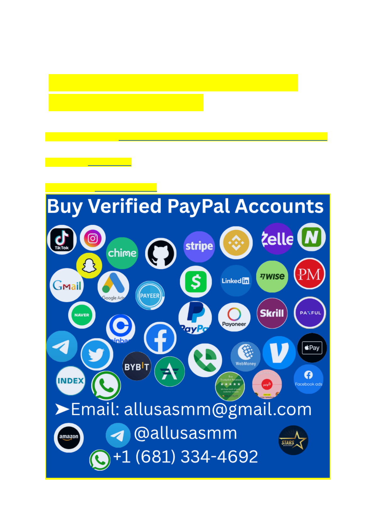 What is a step-by-step guide to buying verified PayPal Account Visit My Website Link:https://allusasmm.com/product/buy-verified-paypal-accounts/ ➤Telegram: @allusasmm ➤ WhatsApp: +1 (681) 334-4692 https://allusasmm.com/product/buy-verified-paypal-accounts/ https://allusasmm.com/ https://api.whatsapp.com/send?phone=https://wa.me/16813344692 Where To Buy Verified Paypal Accounts PayPal is one of the most trusted online payment systems globally. Verified PayPal accounts offer additional security and reliability. Many people seek such accounts to ensure smooth transactions. Knowing where to buy verified PayPal accounts is essential for avoiding scams and fraud. Trusted Online Platforms Some online platforms specialize in selling verified PayPal accounts. Look for websites with positive reviews and strong customer feedback. Ensure the platform has clear terms of service and transparent pricing. Reputable sellers often provide customer support and guarantee account authenticity. Always prioritize platforms that value user data privacy and security. Red Flags To Watch For Watch out for websites that lack detailed information about their services. Avoid sellers who ask for upfront payments without providing proof of account verification. Poor grammar and vague descriptions on the website may indicate a scam. Be cautious of deals that seem too good to be true. Unverified sellers often have hidden fees or unreliable accounts. Steps To Securely Purchase Verified Accounts Purchasing verified PayPal accounts requires caution and careful decision-making. Not all sellers are trustworthy, and ensuring your safety is crucial. Following specific steps can help you minimize risks and make a secure purchase. Below are essential steps to follow when buying verified PayPal accounts. Research The Seller Start by identifying a reliable and reputable seller. Look for reviews and testimonials from previous buyers. Verify their credibility through trusted platforms or online communities. Avoid sellers who lack transparency about their services or accounts. Check their online presence to ensure they are established. Scrutinize their terms and conditions before proceeding. A genuine seller will provide clear details about the accounts they offer. Payment Methods To Use Always use secure and traceable payment methods. Platforms like PayPal or credit cards offer buyer protection. Avoid sending money through untraceable methods like wire transfers or gift cards. Confirm payment details with the seller before making any transactions. Ensure the payment process is documented for future reference. This adds an extra layer of protection in case of disputes. Post-purchase Precautions After purchasing, change the account's login credentials immediately. This includes updating the email address and password. Secure the account by activating two-factor authentication. Monitor the account activity for any suspicious transactions. Inform PayPal support if you notice unusual behavior. Keeping the account secure should be your top priority. Legal And Ethical Considerations Buying verified PayPal accounts raises important legal and ethical questions. Understanding these considerations helps you avoid risks and comply with regulations. Ignoring these aspects can lead to financial loss or account suspension. Being informed ensures safe and legitimate transactions. Compliance With Paypal Policies PayPal has strict rules for account creation and usage. Violating these policies can result in account bans or legal action. Verified accounts must be created with accurate and authentic information. Buying accounts from unverified sources may breach these rules. Always check if the seller follows PayPal’s terms of service. This includes using real identification and proper verification processes. Avoid shortcuts that may compromise account legitimacy. Research PayPal’s guidelines to stay compliant and protect your investment. Avoiding Scams The market for verified PayPal accounts attracts many fraudulent sellers. Scammers often promise cheap accounts but deliver fake or compromised ones. These accounts can be flagged or suspended by PayPal. Verify the reputation of the seller before making a purchase. Look for reviews and testimonials from previous buyers. Avoid deals that seem too good to be true. Always prioritize safety over cost when dealing with financial accounts. Using secure payment methods reduces the risk of being scammed. If the seller refuses to provide proof of authenticity, walk away. Being cautious protects your funds and ensures peace of mind. Alternatives To Buying Verified Accounts Buying verified PayPal accounts may seem convenient. But there are safer and legal alternatives. These options help you avoid risks and ensure long-term account stability. Whether you're starting fresh or exploring other payment tools, these methods work well. Let's discuss two effective alternatives to buying verified PayPal accounts. Creating Your Own Verified Account Setting up your own verified PayPal account is straightforward. You need a valid email, a bank account, and a credit card. These details help PayPal confirm your identity. Begin by signing up for a PayPal account. During registration, provide accurate and truthful information. Incorrect details can lead to account restrictions. Link your bank account or credit card to your PayPal profile. This step verifies your account and removes limits. It also allows smooth transactions and builds trust with PayPal. Verify your email address after signing up. PayPal sends a confirmation email to complete the process. Once done, your account is ready for personal or business use. Using Third-party Payment Services Third-party payment platforms are reliable alternatives to PayPal. Many services offer similar features for sending and receiving money. Some popular options include Stripe, Skrill, and Payoneer. Stripe is ideal for businesses handling online transactions. It supports multiple