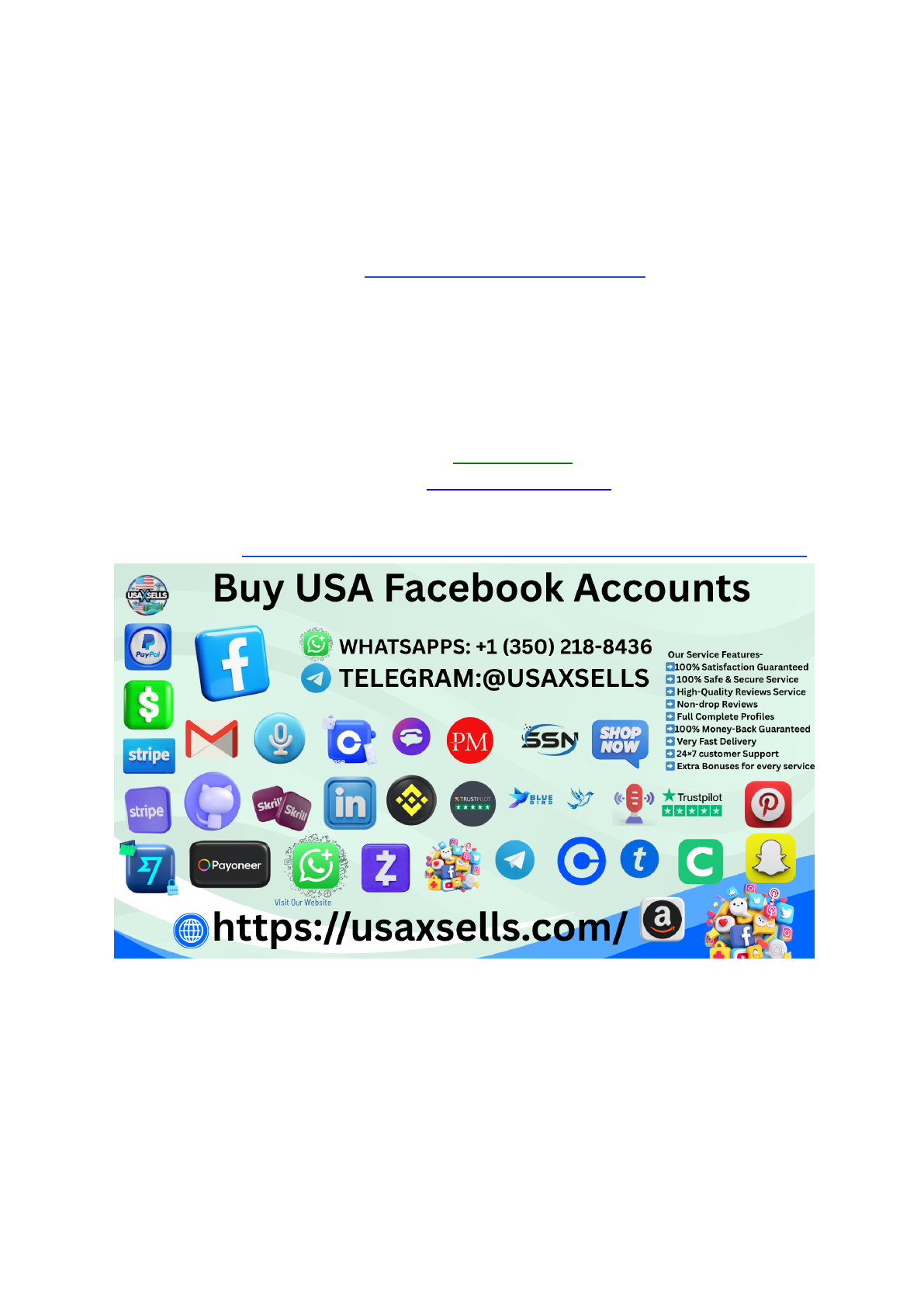 19 Buying USA Facebook Accounts Can Boost Your Social .. In the fast-paced world of social media, having a strong online presence is crucial for individuals and businesses alike. Facebook remains one of the most influential platforms, offering unparalleled opportunities for networking, marketing, and community building. But what happens when you need to hit the ground running? This is where buying USA Facebook accounts comes into play. Imagine gaining immediate access to an engaged audience without enduring the lengthy process of organic growth. If you want more information just contact me now. 24-hour Reply/Contact Telegram:@usaxsells WhatsApp: +1 (350) 218-8436 Email:usaxsells@gmail.com Our Website :https://usaxsells.com/product/buy-usa-facebook-accounts/ Whether you’re looking to promote your brand or connect with like-minded individuals, purchasing verified USA Facebook accounts can provide that much-needed head start in an increasingly competitive landscape. Let’s dive deeper into why this option could be a game changer for you! Why is it important? https://usaxsells.com/product/buy-usa-facebook-accounts/ http://t.me/usaxsells https://api.whatsapp.com/send?phone=13502188436 https://usaxsells.com/product/buy-usa-facebook-accounts/ Establishing a genuine online presence is more important than ever. As social media continues to dominate communication and marketing, having a credible account can set you apart. When starting out, authenticity matters. Facebook users are more likely to engage with accounts that appear trustworthy and active. Buying USA Facebook accounts gives you an instant foothold in this vast digital landscape. If you want more information just contact me now. 24-hour Reply/Contact Telegram:@usaxsells WhatsApp: +1 (350) 218-8436 Email:usaxsells@gmail.com Our Website :https://usaxsells.com/product/buy-usa-facebook-accounts/ Furthermore, for businesses, reaching local audiences becomes essential. A verified USA-based account allows targeted advertising and engagement with potential customers who resonate with your content. In addition, the competition on social media platforms is fierce. Gaining traction organically takes time—time that many simply don’t have when trying to make their mark quickly. Investing in these accounts not only saves time but also amplifies your brand’s visibility right from the start, opening doors to opportunities that would otherwise take years to achieve naturally. Where to start out USA Facebook accounts? http://t.me/usaxsells https://api.whatsapp.com/send?phone=13502188436 https://usaxsells.com/product/buy-usa-facebook-accounts/ To begin your journey with USA Facebook accounts, identify credible platforms specializing in account sales. Research is crucial here. Look for reviews and testimonials to gauge reliability. Once you find a trustworthy source, check their offerings meticulously. Ensure that the accounts are verified and come with genuine profiles. Next, consider the purpose of your account. Are you looking to promote a business or connect with friends? This will influence which type of account suits your needs best. Don’t overlook customer support options as well. A reliable seller should provide assistance during onboarding and be available for any issues that may arise. After selecting an appropriate provider, follow their guidelines for purchasing smoothly. Each step matters when starting out on this social media platform effectively. If you want more information just contact me now. 24-hour Reply/Contact Telegram:@usaxsells WhatsApp: +1 (350) 218-8436 Email:usaxsells@gmail.com Our Website :https://usaxsells.com/product/buy-usa-facebook-accounts/ Why Buy USA Facebook Account? Buying USA Facebook accounts can give you a significant edge in marketing and outreach. These accounts often come with established connections, increasing your visibility instantly. http://t.me/usaxsells https://api.whatsapp.com/send?phone=13502188436 https://usaxsells.com/product/buy-usa-facebook-accounts/ A verified USA account adds authenticity to your brand. It helps build trust among potential customers who may be skeptical of foreign profiles. Localized engagement is crucial for targeted advertising, and having an American account enhances this capability. Additionally, these accounts provide access to specific demographics that are essential for businesses aiming at the U. S. market. You can tap into trends, preferences, and cultural nuances more effectively. Whether you’re looking to promote products or services, using a USA-based profile ensures you’re reaching the right audience without unnecessary barriers. This strategic move could elevate your online presence significantly while saving time on organic growth efforts. Are you ready to buy USA Facebook account? Are you at a crossroads, considering the benefits of purchasing a USA Facebook account? This decision can open doors to new opportunities. Imagine connecting with a wider audience. With a verified account, your credibility increases. You can engage more effectively with potential customers or followers. Think about your goals. Are you looking to enhance your brand’s visibility? A USA Facebook account can provide that edge in reaching diverse demographics. Before diving in, assess your needs carefully. Understand the features and advantages that come with owning such an account. Take time to research reliable sources for purchase options. Trustworthy sellers will offer transparent information and support during the buying process. The right choice could significantly impact your online presence and interactions within social media landscapes. Are you prepared to take this step forward? Where to start USA Facebook account? Starting a USA Facebook account is straightforward, but it requires attention to detail. First, visit the Facebook website or download the app. Next, you’ll need to provide your name, email address, and a password. Choose a strong password that combines l