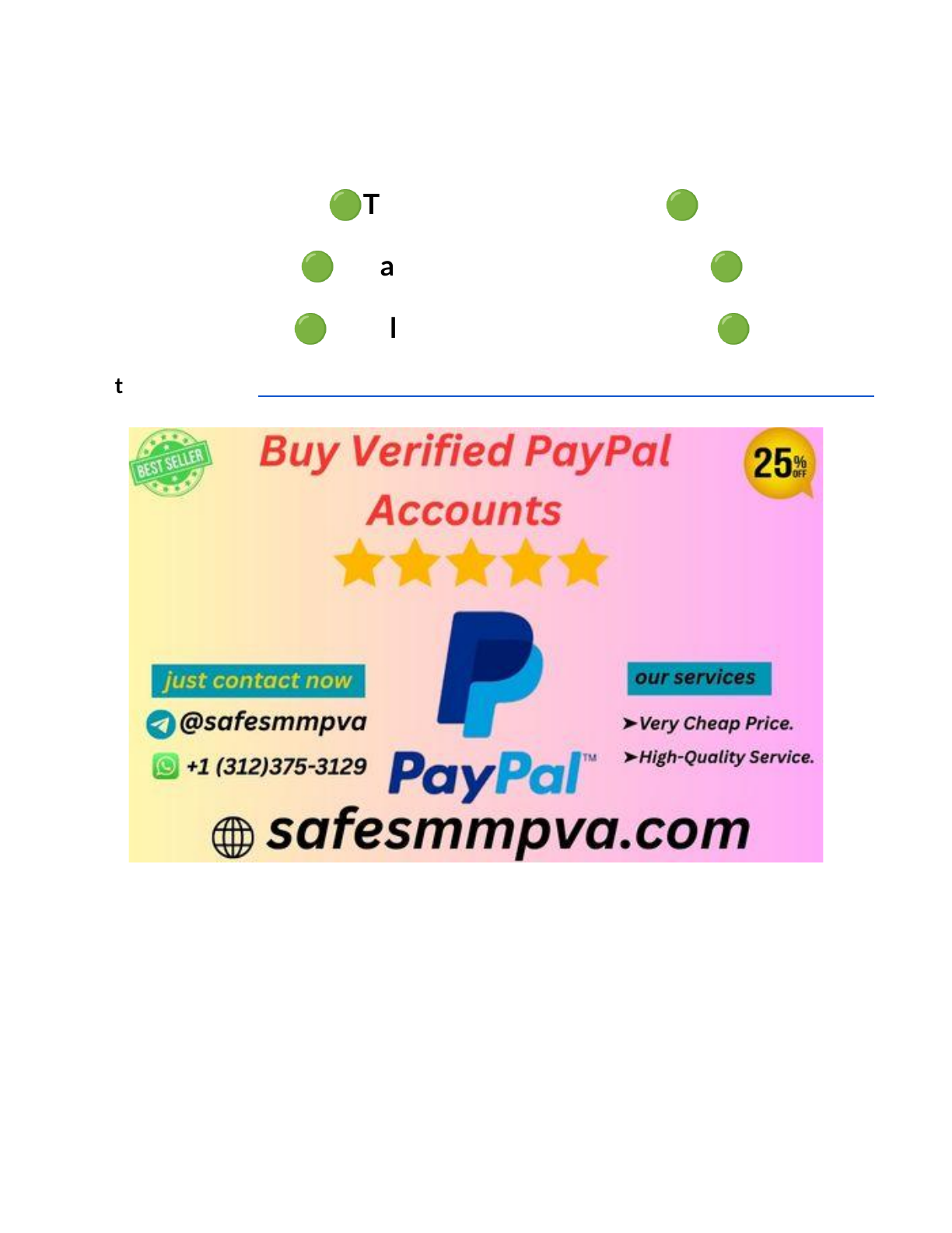 Premium Buy Verified PayPal Accounts for Secure Access k25-k26 If you want to more information just contact now 🟢Telegram:@safesmmpva🟢 🟢WhatsApp: +1 (312)375-3129🟢 🟢Email: safesmmpva@gmail.com🟢 Visit Our Website:https://safesmmpva.com/product/buy-verified-paypal-account/ If you want to buy verified PayPal accounts, there are platforms available that offer this service. These platforms provide verified PayPal accounts that can be used for various purposes, such as online transactions, business transactions, and more. In the digital era, ease of transactions is crucial for personal and business success. Buy verified PayPal account opens doors to seamless, secure online payments, but acquiring one can be a https://safesmmpva.com/product/buy-verified-paypal-account/ hurdle for many. This post will explore the importance of Buy verified PayPal account and how purchasing one could be the key to unhindered online transactions. Many people face challenges with PayPal’s verification process due to various reasons such as lack of proper documentation or regional restrictions. This often leads to a search for alternatives to access the full benefits of PayPal services. Buy verified PayPal account seems like a straightforward solution, but it’s not without its risks and considerations. This article aims to guide you through the process, ensuring you can make informed decisions and understand the potential implications of such a purchase. As we delve into this topic, remember that trust and security are the pillars of online payments, and any steps taken should reinforce these principles. The Importance Of Verified Paypal Accounts Buy Verified Paypal Accounts is crucial for online transactions. It gives users a sense of security and trust. Verified accounts show that Paypal has confirmed the user’s identity. This step helps prevent fraud and keeps transactions safe. Enhanced Security Measures Buy Verified Paypal Accounts come with extra security. Paypal checks personal information to confirm identity. This process includes bank details and address verification. Users get a secure Premium Telegram Accounts for Secure Access k25 If you want to more information just contact now 🟢Telegram:@safesmmpva🟢 🟢WhatsApp: +1 (312)375-3129🟢 🟢Email: safesmmpva@gmail.com🟢 Visit Our Website:https://safesmmpva.com/product/buy-verified-paypal-account/ environment to send and receive money. Stronger security means fewer risks for both buyers and sellers. Building Trust With Transactions https://safesmmpva.com/product/buy-verified-paypal-account/ Transactions through verified accounts build trust. Sellers and buyers prefer verified users. It shows commitment to a trustworthy trading experience. This trust can lead to more business and smoother operations. What Does Verification Mean For Paypal Users? What does verification mean for PayPal users? It’s a key step. Users prove who they are. This keeps accounts safe. Let’s dive deeper into this process. Identity Confirmation Process PayPal asks for documents. These can be a driver’s license or a passport. Sometimes, a utility bill is needed too. This proves your address. The goal? To match your details with your account. ● Upload ID photo. ● Provide address proof. ● Wait for PayPal’s review. Once done, PayPal confirms your identity. This can take a few days. Benefits Of Account Verification Verified accounts get more perks. Users trust these accounts more. Sending and receiving money becomes easier. Limits on transactions go up. 1. Increased Trust: Others see your account as safe. 2. Higher Limits: Send and receive more money. 3. Lesser Restrictions: Fewer holds on your funds. Verification means better PayPal use. It’s worth the effort. How To Buy Verified Paypal Accounts Secure, verified Paypal accounts are vital for smooth online transactions. This guide shows you how to buy them with confidence. Selecting A Reputable Service Trust is key in choosing a provider for verified Paypal accounts. Look for services with positive reviews and good track records. ● Check testimonials on their website. ● Search for feedback on forums and social media. Understanding The Purchase Process Know what to expect when buying a Paypal account. The steps are simple. 1. Select the account type you need. 2. Fill in required details accurately. 3. Make payment through a secure channel. 4. Receive account details via email. Remember to change passwords and update security questions after purchase. Risks Associated With Unverified Accounts Risks associated with unverified PayPal accounts lead to significant concerns. Users often overlook these risks. Understanding them is crucial. Let’s explore the dangers and limitations. Limitations On Unverified Users Unverified PayPal accounts come with restrictions. Users face withdrawal caps and transaction limits. These limitations can disrupt financial activities. Businesses and individuals need full access. Verification lifts these barriers. ● Withdrawal Caps: Set limits on the amount you can withdraw. ● Transaction Limits: Restrictions on how much you can send or receive. ● Account Holds: Possible holds on funds, affecting cash flow. Potential For Fraud And Scams Unverified accounts are targets for fraudulent activity. Scammers may exploit these accounts. Users must stay vigilant. Verified accounts offer additional security measures. Issue Risk Impact Account Hacking High Loss of funds and personal data Phishing Attempts Medium Unauthorized transactions Identity Theft High Damage to reputation and credit score Setting Up Your Verified Paypal Account Setting up your verified PayPal account is easy. This guide helps you start. Follow simple steps to get your account ready. Use PayPal for safe online payments. Let’s begin the journey. Step-by-step Account Activation First, visit the PayPal website. Click “Sign Up” for a new account. Choose “Personal” or “Business” account. Fil