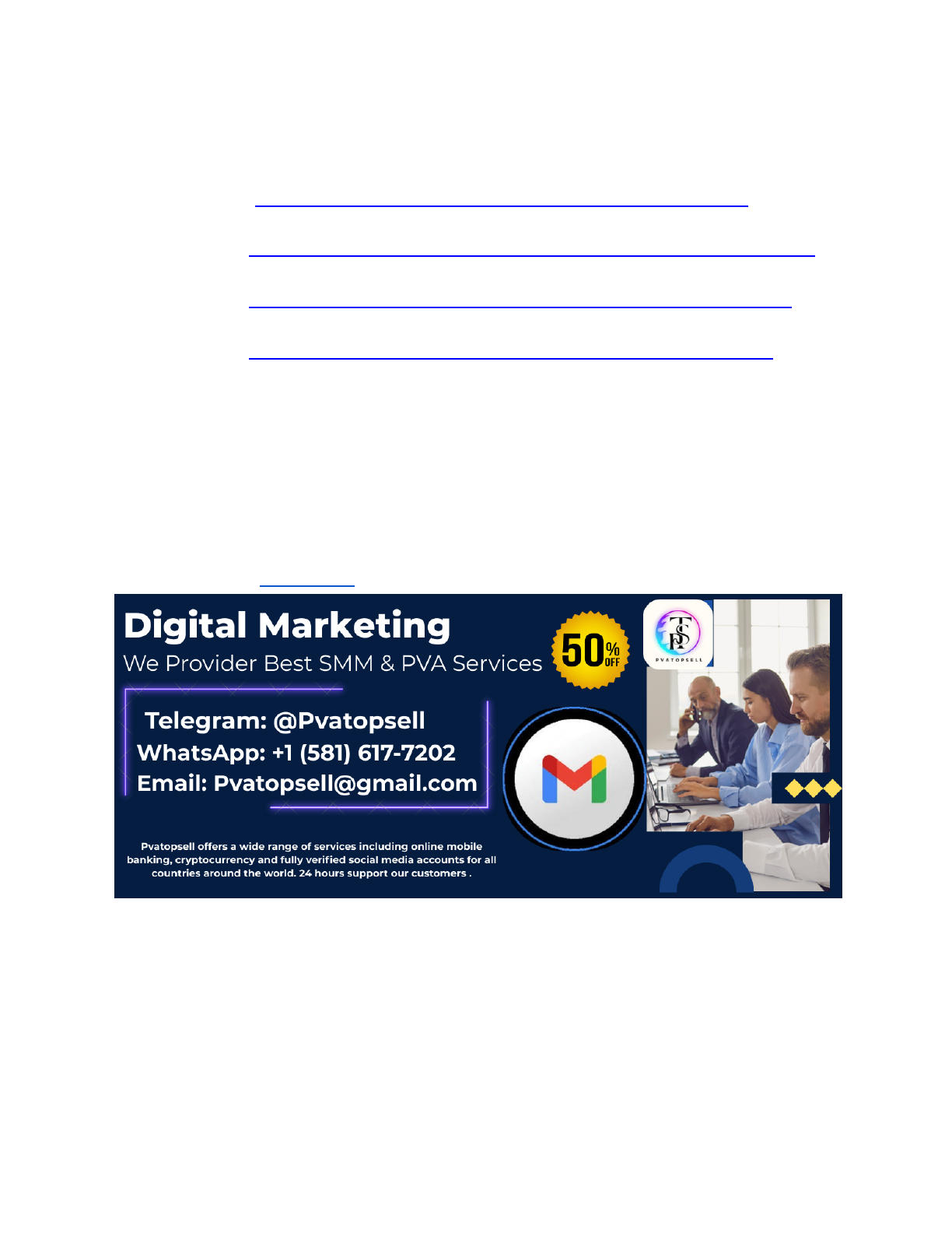 Buy Old Gmail Accounts: A COMPLETE Guide ➥⇒If you face any problem you can contact us. we are online 24/7 hours ➥⇒Visit site :-- https://pvatopsell.com/product/buy-old-gmail-accounts/ ➥⇒Visit site :--https://pvatopsell.com/product/buy-verified-snapchat-accounts/ ➥⇒Visit site :--https://pvatopsell.com/product/buy-verified-paypal-accounts/ ➥⇒Visit site :--https://pvatopsell.com/product/buy-verified-wise-accounts/ ➥⇒WhatsApp: +1 (581) 617-7202 ➥⇒Email: Pvatopsell@gmail.com ➥⇒Skype: PVATOPSELL ➥⇒Telegram: @Pvatopsell Gmail, a free email service developed by Google that was frankly aeons ahead of all the other email offerings when it launched in October 2004, has changed the way people use email. – Boasting more than 1.5 billion active users, it’s now one of the most widely-used email services in the world. Gmail gives users 15 GB of free storage and advanced spam filtering. It is highly secure because Gmail recently adopted the desktop notifications feature of Google’s other products, such as Google Drive, Google Calendar, Google Photos, etc. Buy Old Gmail Account https://pvatopsell.com/product/buy-old-gmail-accounts/ https://pvatopsell.com/product/buy-verified-snapchat-accounts/ https://pvatopsell.com/product/buy-verified-paypal-accounts/ https://pvatopsell.com/product/buy-verified-wise-accounts/ https://pvatopsell.com/product/buy-old-gmail-accounts/ Buy Old Gmail Account Benefits Of Buying Gmail Accounts In Bulk Sometimes, if you’re looking to buy Gmail accounts, especially aged ones, here are the benefits that come with these aged accounts. In this guide, we’ll cover why old Gmail accounts are so valuable, how and where to buy them, and how to recognize a scam when you see one. Why Buy Old Gmail Accounts? Though new Gmail accounts are available, most people prefer to purchase old Gmail accounts because of the multiple advantages they offer. Establishing accounts can be beneficial for credibility and security and can make things easy and effective for digital marketing. Improved Deliverability: Email servers and those who receive the mail trust the old Gmail accounts more. That can lead to higher deliverability rates, especially in marketing campaigns. The spam filters might get tripped more frequently by new accounts, but older accounts—especially ones used regularly—have a higher chance of the contents appearing in the recipient’s inboxes. Increased Storage Capacity: Older Gmail accounts sometimes have larger storage limits or access to Google features essential for document storage and sharing, like Google Drive. This extra storage can be particularly useful for individuals who need to manage a larger volume of email messages and digital marketing assets. Enhanced Security: Because of their longevity, older Gmail accounts have more security features in place. These accounts could have stronger recovery options and more trusted security settings, making it harder for bad actors to get in. Access to More Features: You may also have access to features and toolsets not available to new account holders. Some become stacking and dynamic based on the level, such as Google Ads and Google Analytics. You will need these tools to track your marketing campaigns and the performance of your emails. 3 Ways To Utilize Gmail For Digital Marketing Email is not just a repository for email; it’s also quite a powerful tool for digital marketing. The big draw to Gmail is that it is part of Google’s array of applications -6 ways these Gmail lab features supercharge email marketing, monitor how your marketing email performs, create dynamic email content and track customer relationships. Compatible with Google Ads and Google Analytics Through your Gmail integration with Google Ads and Google Analytics, you can also get more information on your email campaigns. You can track open rates, click-through rates, conversion rates, and so on. This data is priceless — you can use it to craft your digital marketing strategies. Personalized Email Campaigns There are six key sets of features in Gmail that you can use to craft more personalized, relevant and engaging emails. From templates and variable content to even auto-response features, which we’ll get into later, there are ways to improve the prospects’ experience, making it easy to nurture leads and make sales. Use Your Email Professionally in Gmail Moving beyond a Gmail Account, a Gmail Account with a professional touch can increase your ability to communicate with your customers or clients. If you have older Gmail accounts , it can be beneficial for your brand or business. Pros And Cons Of Gmail Accounts Gmail is like any other platform—it has its plusses and minuses. Here are some of the pros and cons of Gmail, with a stronger consideration for businesses and marketers. Pros Of Using Gmail Free Email Service: The best part is that it is free, so both public and business users don’t have to go elsewhere. Plenty of Room: Gmail provides 15 GB of free storage, which is plenty for personal and business email use. Integration with Google Tools: Gmail integrates well with other Google tools, such as Google Drive, Google Calendar, and Docs. Excellent Spam Filtering: Gmail automatically recognizes spam emails and filters them out of your inbox, so you can avoid spending time deleting them. Customization: Users have many themes/configurations and labels that make the mailbox easier to use and more person-specific. Cons Of Using Gmail Security concerns: If not secured, emails can be intercepted or hacked. Data theft and phishing attempts are also a factor. Not Enough Data Security: Sure, Gmail has protective tools in place, but it isn’t nearly enough to prevent sensitive information from being accessed by others, which can be a dealbreaker for business owners. Spam Concerns: While Gmail provides a robust spam filter, you may still receive occasional spammy emails. Storage Constraints: Gmail inboxes have 15 G